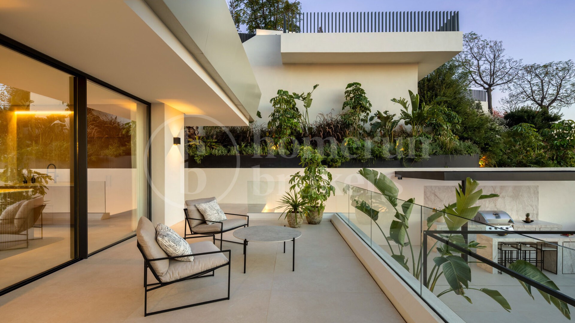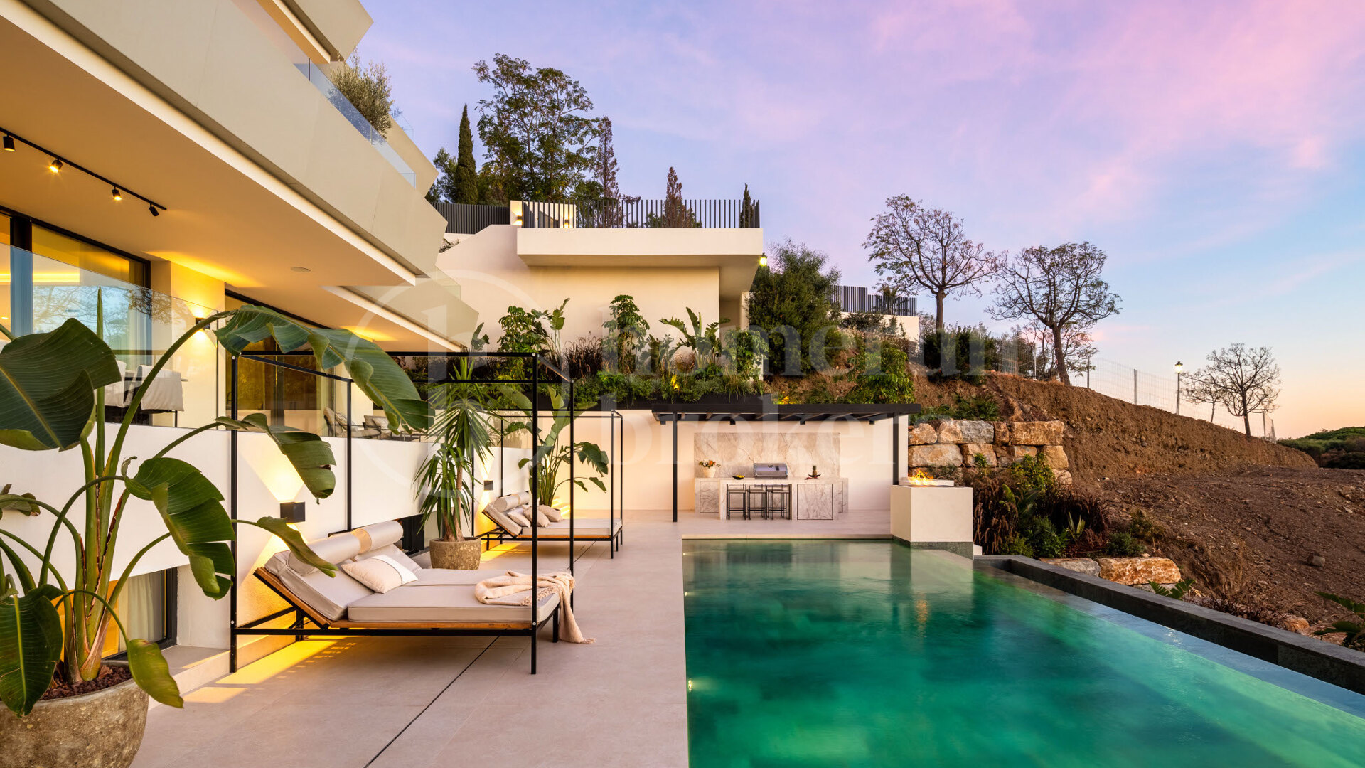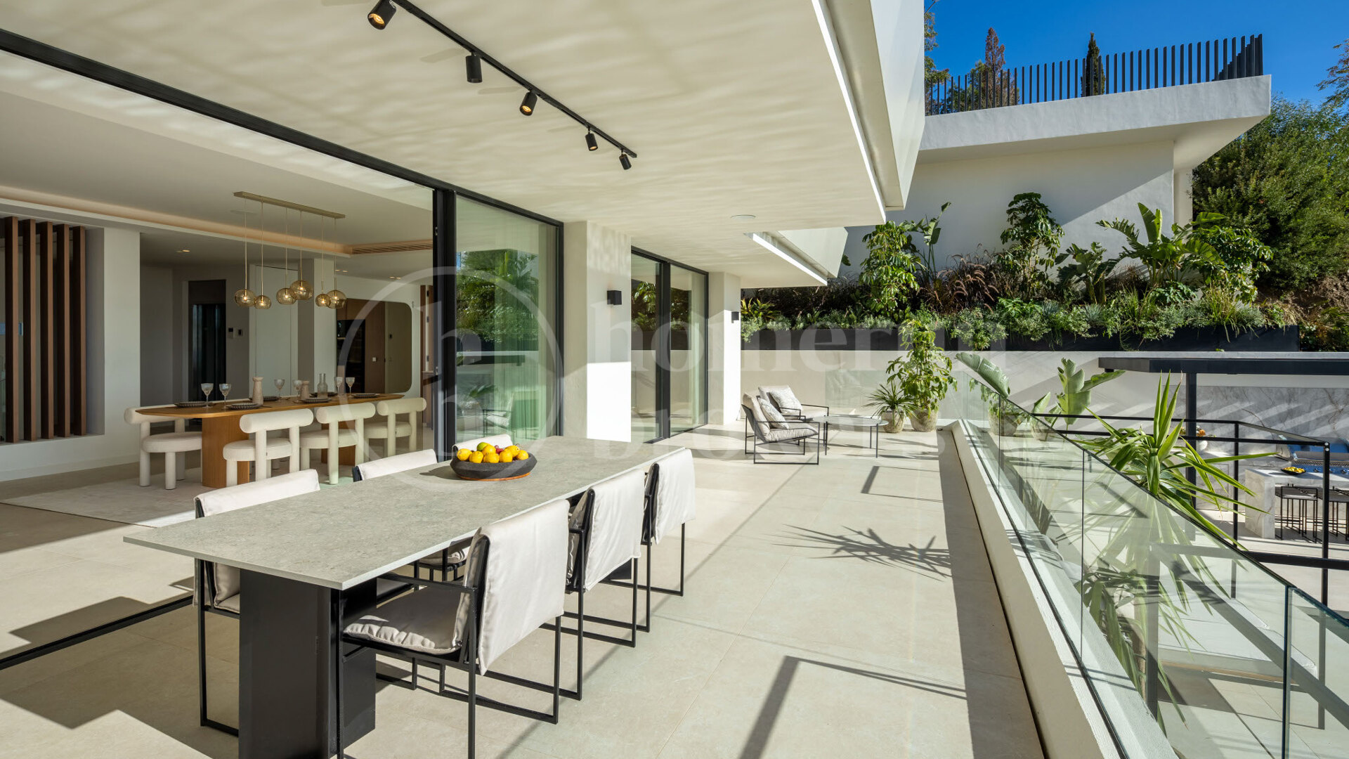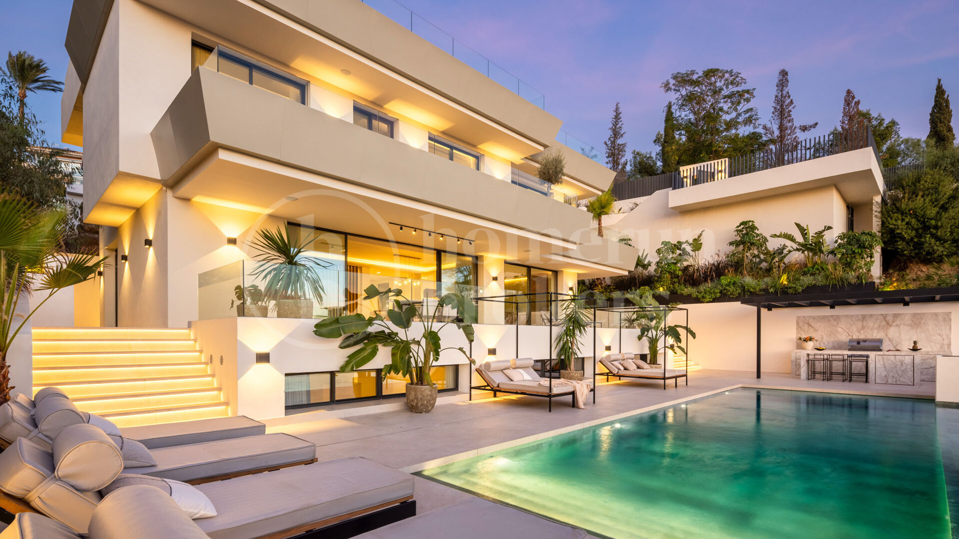Varje aspekt av Villa Ember, från dess genomtänkta planlösning till de högkvalitativa materialen, fångar essensen av modern och exklusiv livsstil. I den förtrollande omgivningen av Marbella Öst erbjuder denna villa sina lyckliga ägare ett liv av distinktion och njutning.