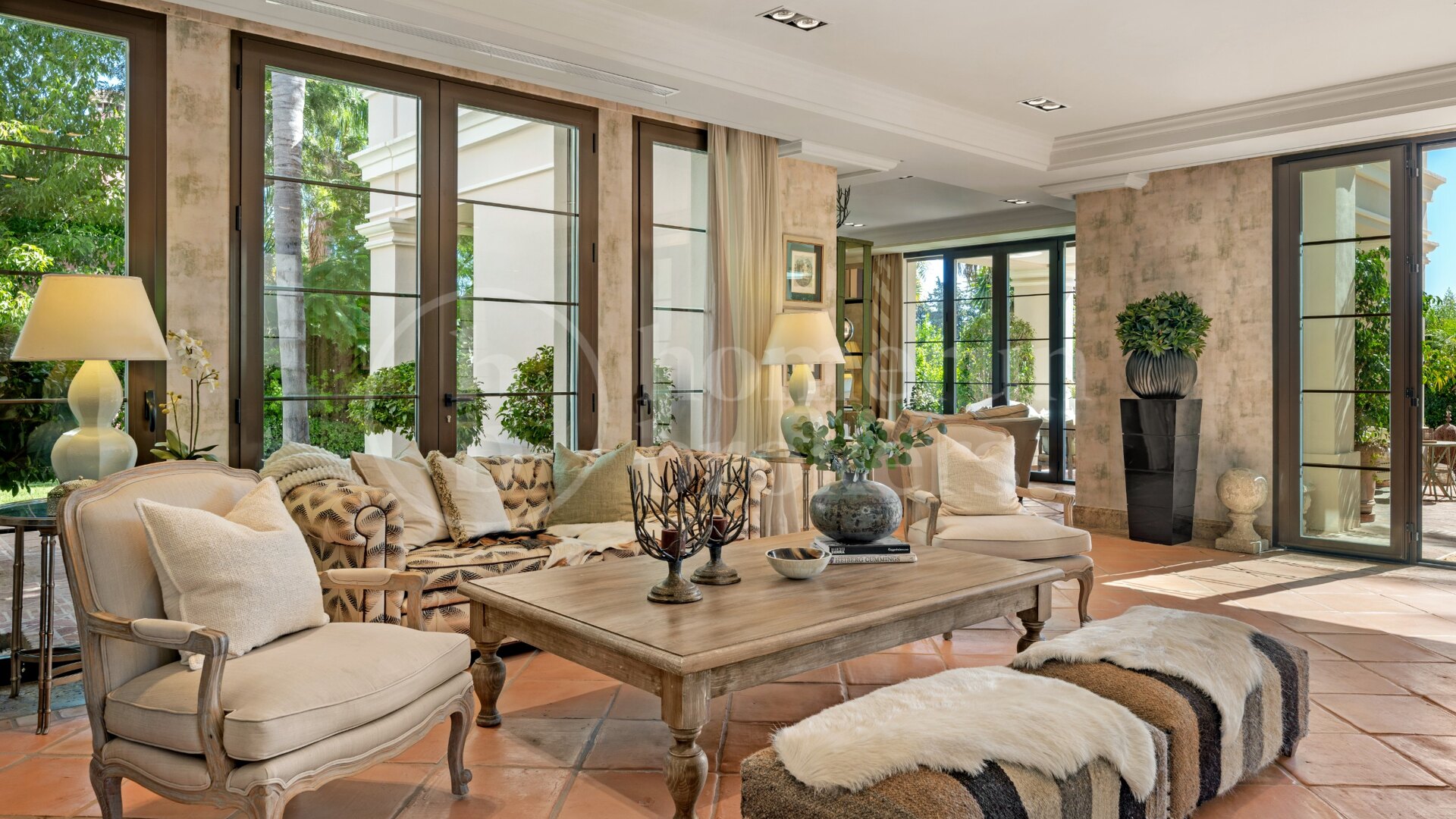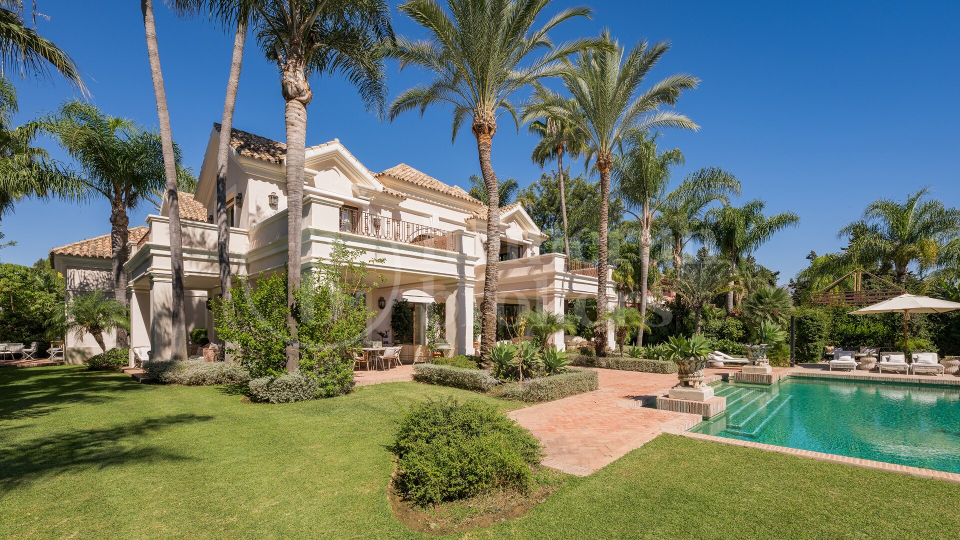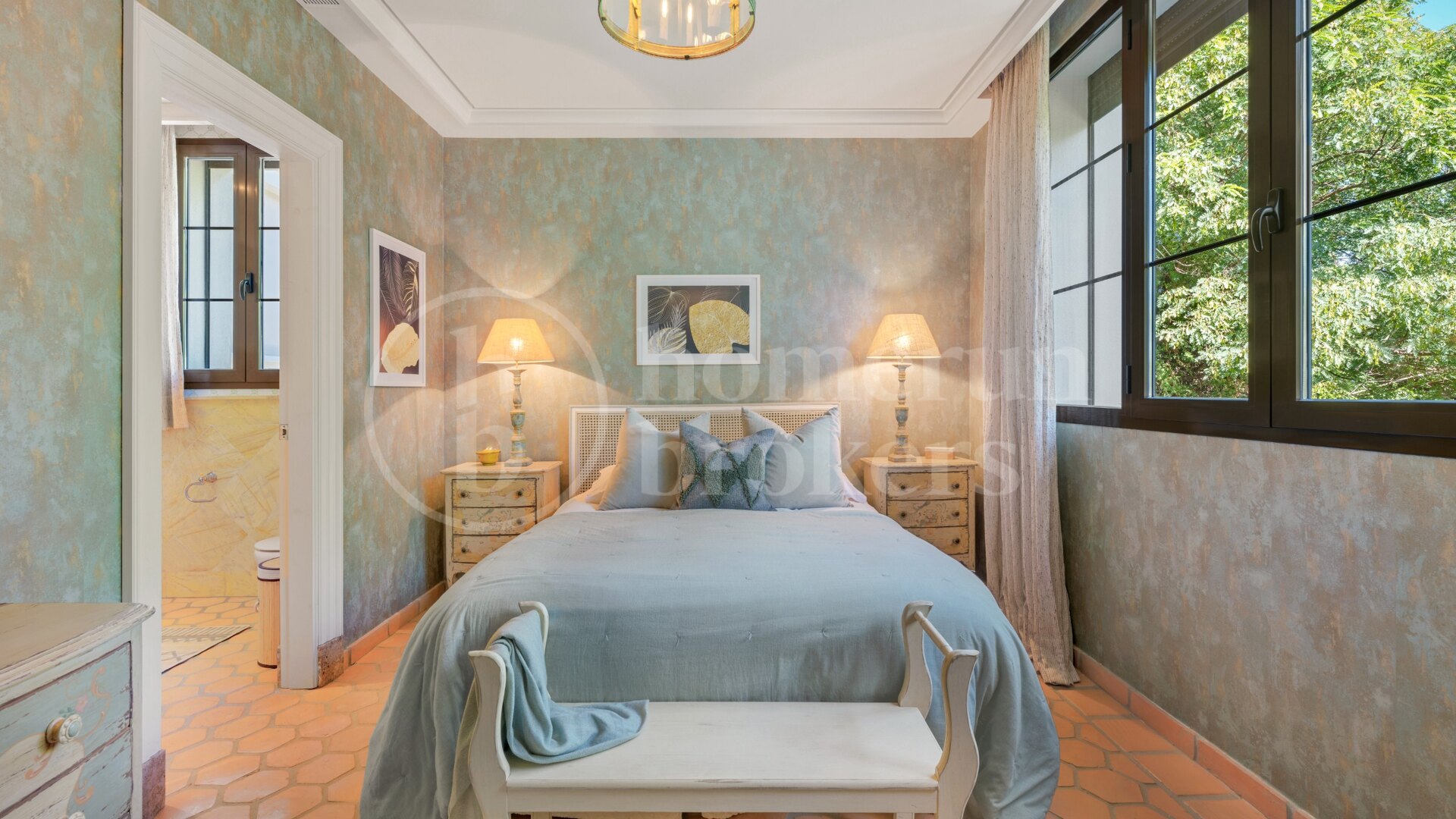 Upplev en livsstil av raffinerad sofistikering i denna exceptionella åtta sovrum villa till salu i Guadalmina Baja, en av de mest prestigefyllda och lugna bostadsområden på Costa del Sol. Genom att kombinera tidlös amerikansk-inspirerad arkitektur med modern funktionalitet levererar denna bostad elegans, komfort och kvalitet i perfekt harmoni. Dess rymliga design, frodiga trädgårdar och avancerade funktioner gör det till ett extraordinärt hem för familjer som söker integritet och stil inom en exklusiv, 24-timmars säkrad stadsdel.