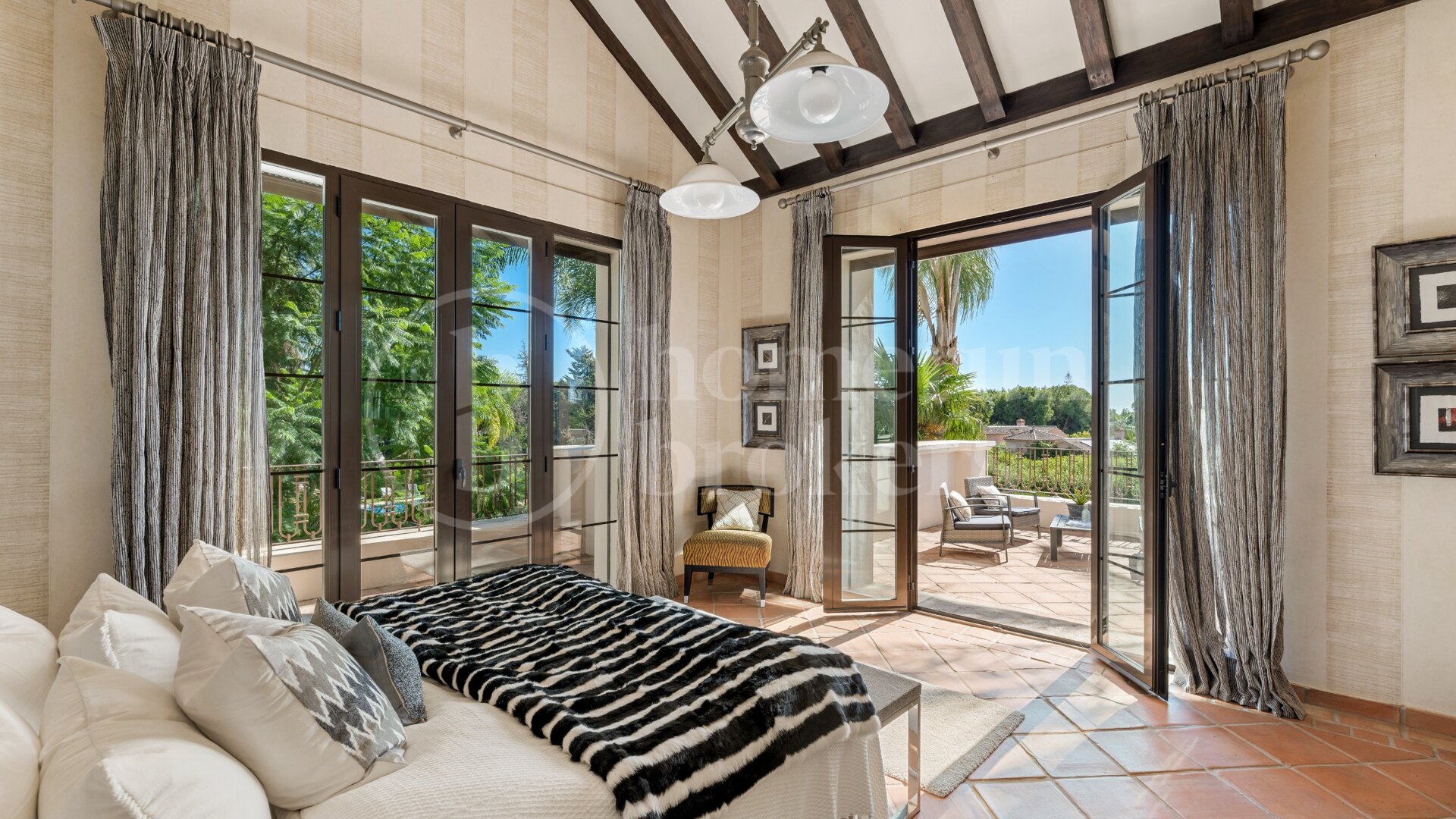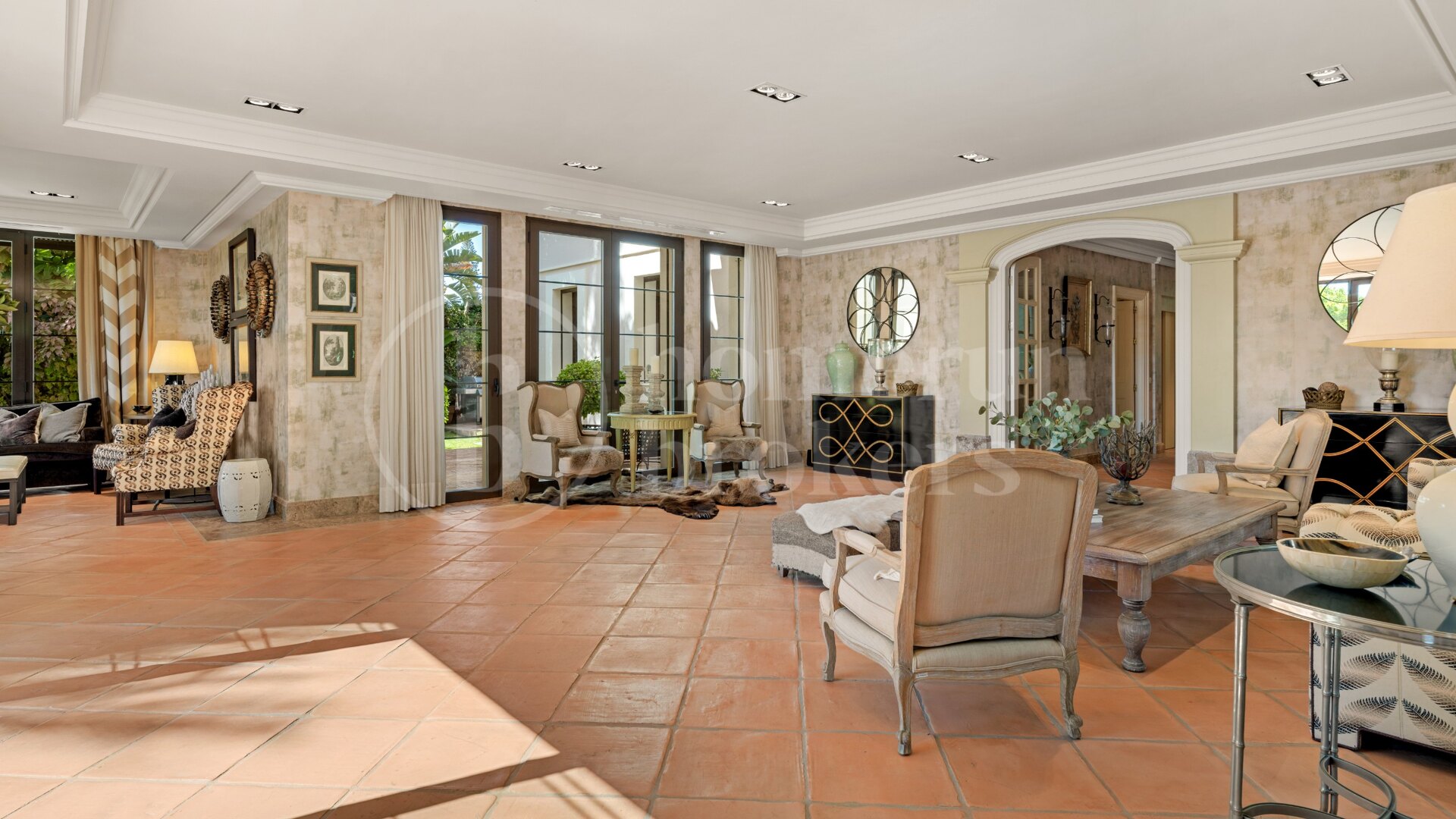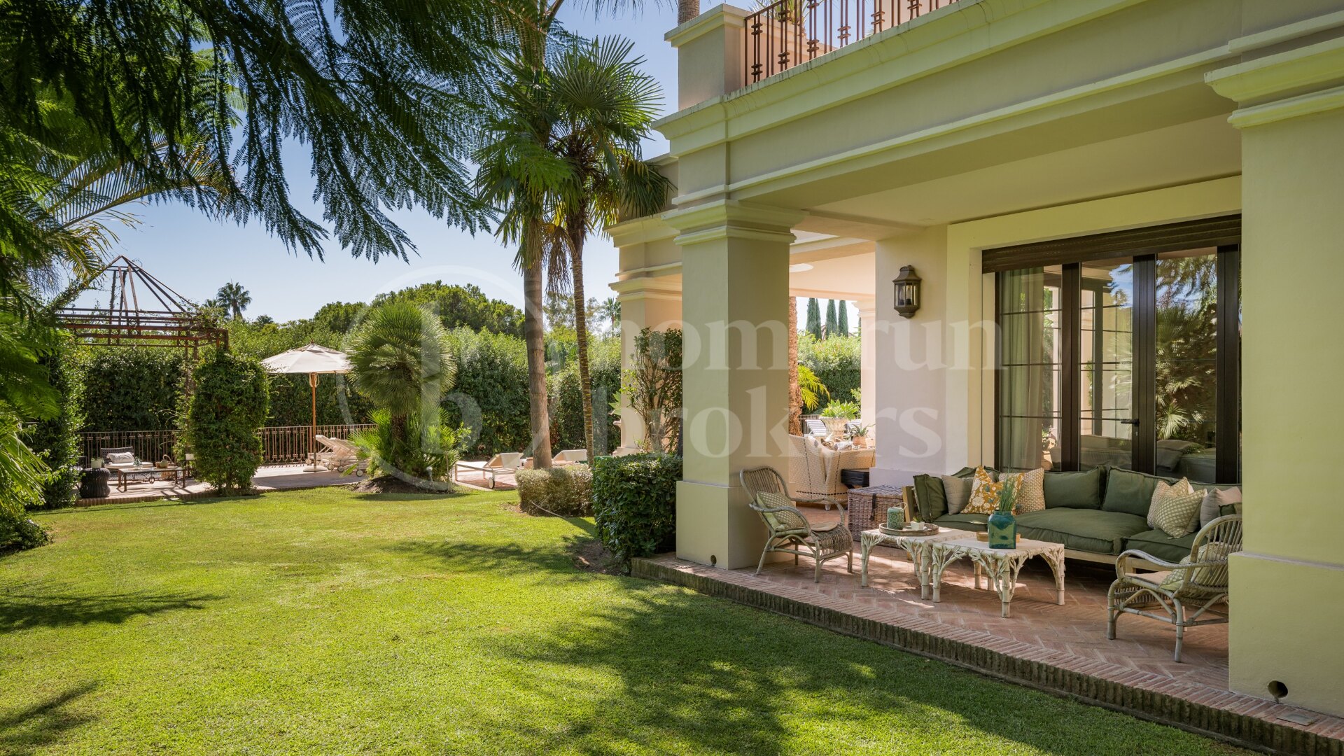 Upplev en livsstil av raffinerad sofistikering i denna exceptionella åtta sovrum villa till salu i Guadalmina Baja, en av de mest prestigefyllda och lugna bostadsområden på Costa del Sol. Genom att kombinera tidlös amerikansk-inspirerad arkitektur med modern funktionalitet levererar denna bostad elegans, komfort och kvalitet i perfekt harmoni. Dess rymliga design, frodiga trädgårdar och avancerade funktioner gör det till ett extraordinärt hem för familjer som söker integritet och stil inom en exklusiv, 24-timmars säkrad stadsdel.