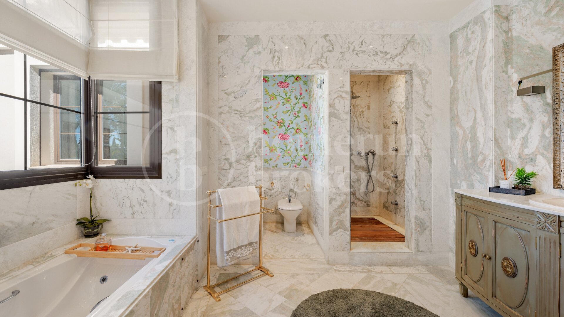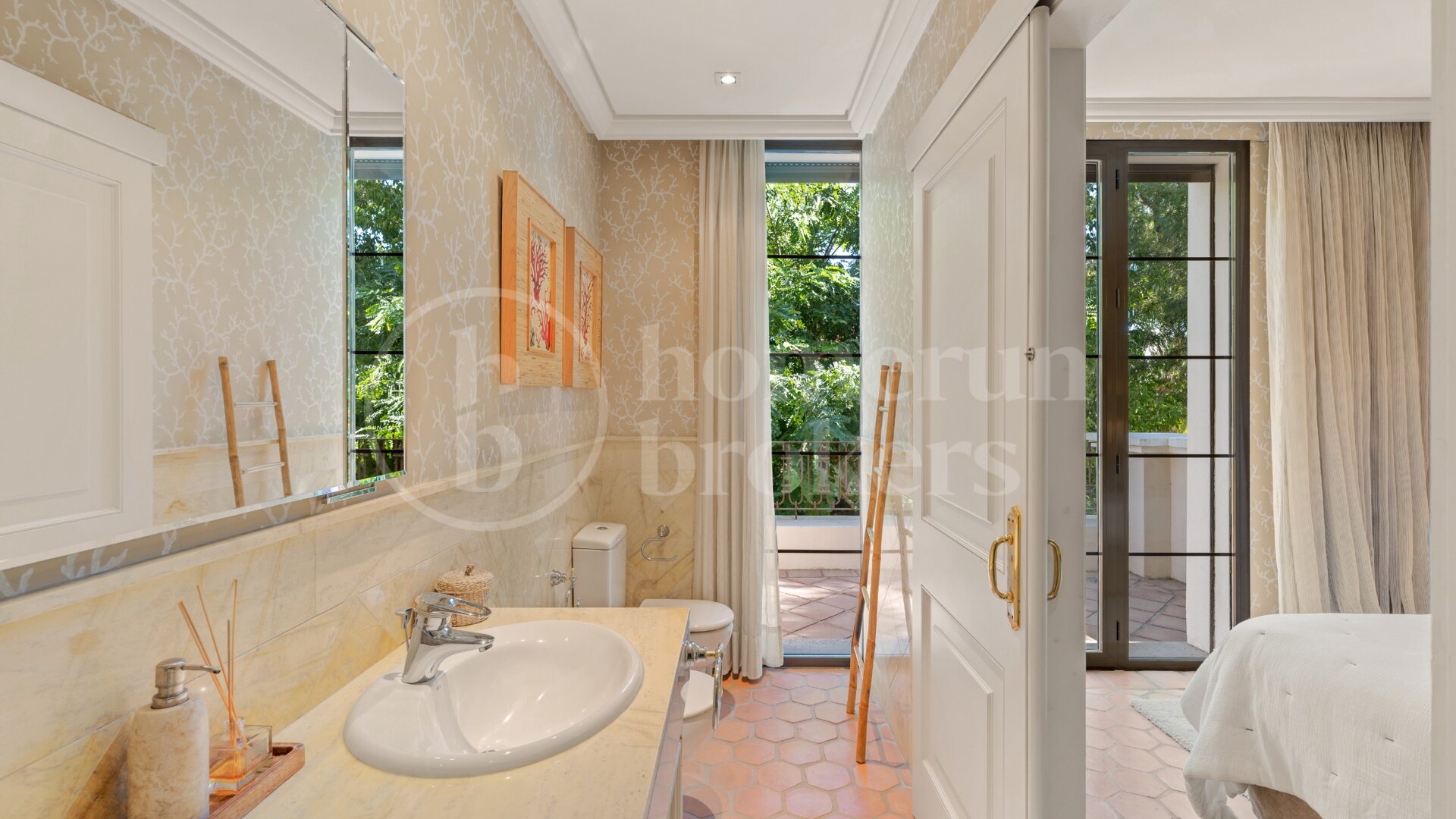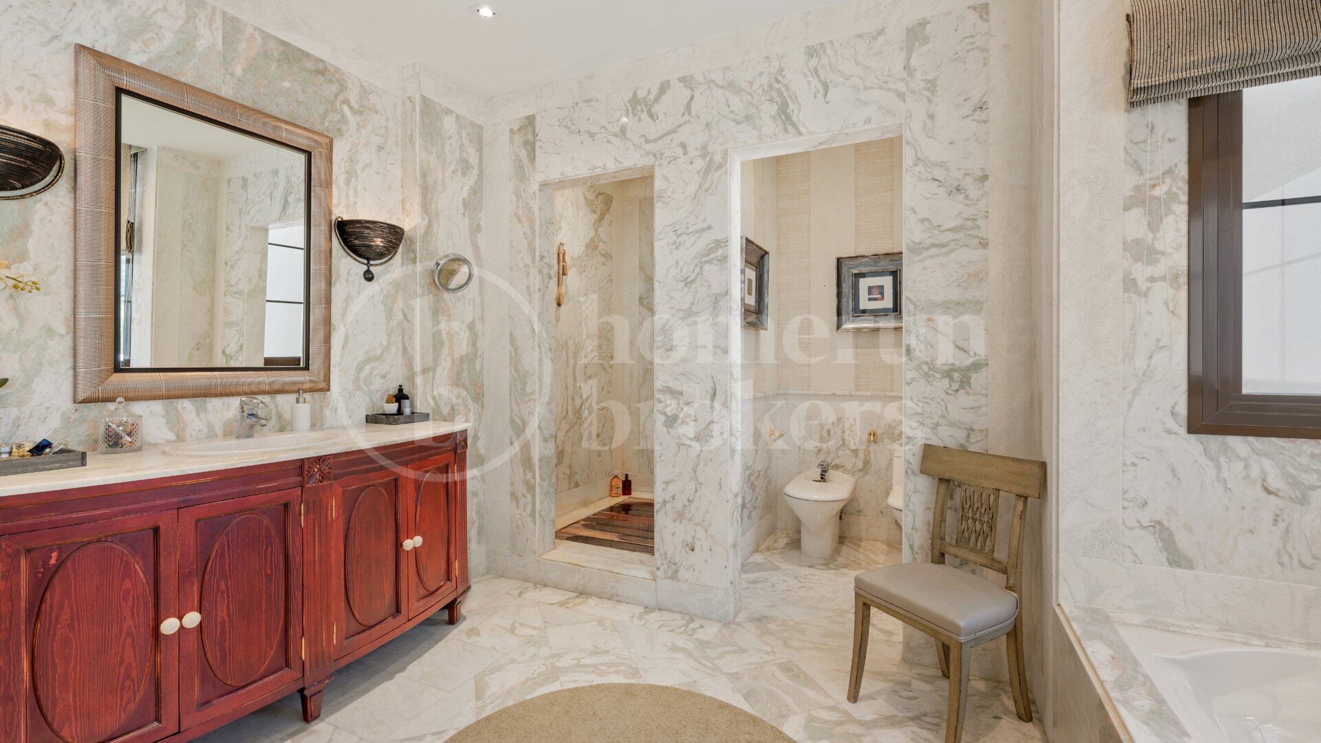 Bostaden består av åtta rymliga sovrum, inklusive sex med privata badrum och walk-in garderober, vilket garanterar ultimat integritet och komfort. Två extra sovrum delar ett stort, elegant utformat badrum, perfekt för familj eller gäster. Hemmet innehåller också tre gästtoaletter, ytterligare förbättra bekvämlighet och praktiskhet.