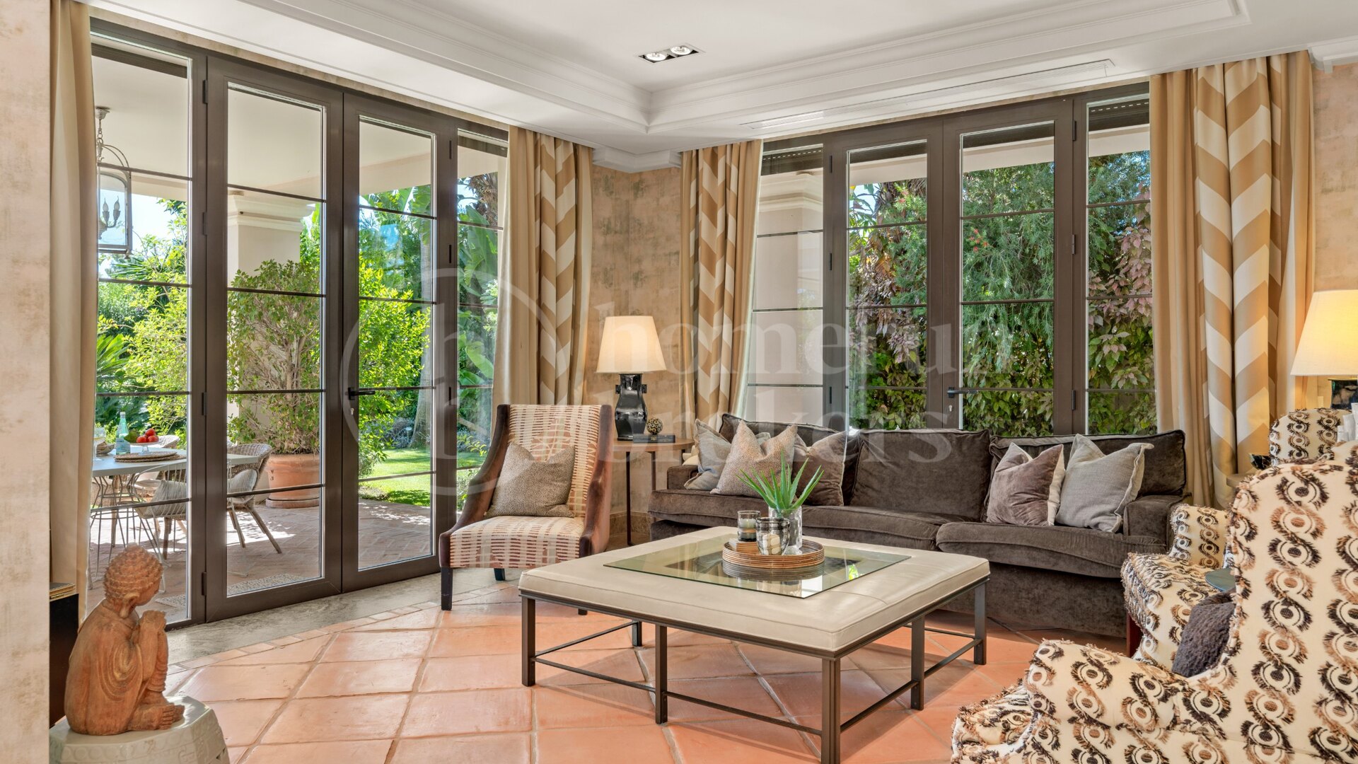 Med sin tidlösa arkitektur, rymliga interiörer och vackert anlagda trädgårdar, förkroppsligar denna villa i Guadalmina Baja det bästa av kusten som lever en sällsynt möjlighet att njuta av integritet, prestige och komfort i en av Marbellas mest framstående bostadsområden.