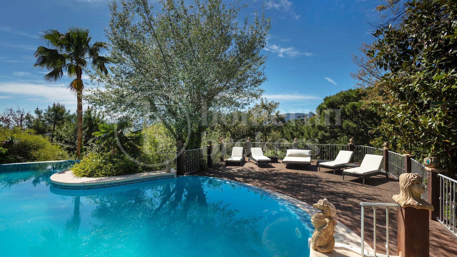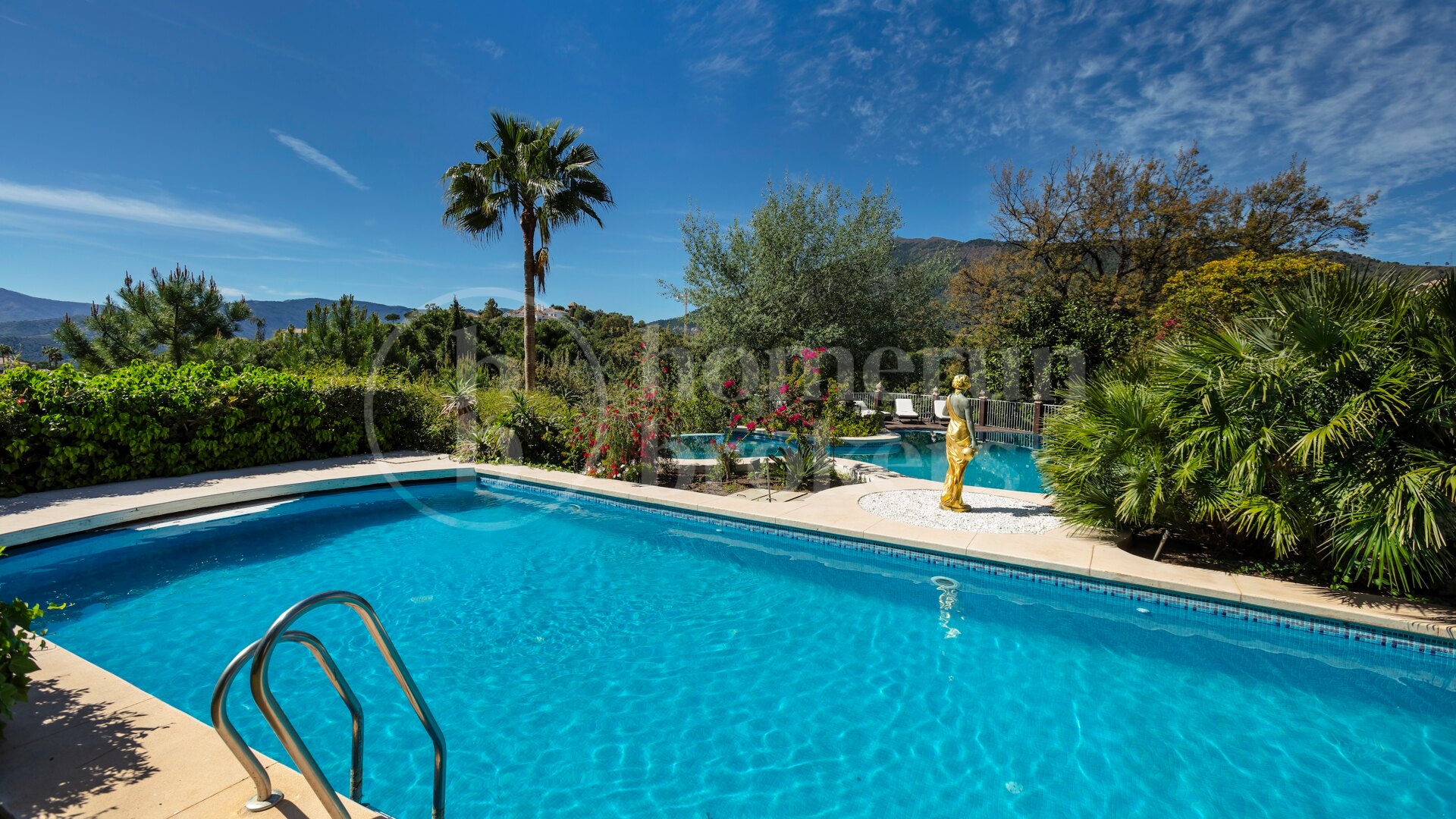 Fastigheten är nordvänd, vilket ger naturlig svalka under sommaren, medan trädgården och terrasserna erbjuder både soliga och skuggiga platser under dagen. Utomhus finns två privata pooler, en jacuzzi, och rymliga ytor för solbad, middagar och avkoppling med spektakulär utsikt.