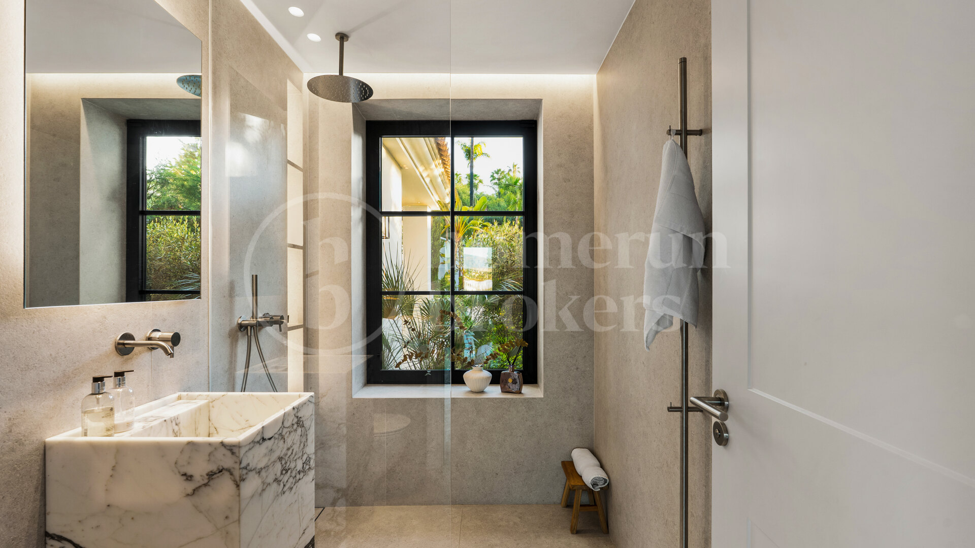 Denna fastighet erbjuder en kombination av utrymme, moderna funktioner och ett säkert läge, vilket gör det till ett starkt alternativ för köpare som söker ett fullt renoverat familjehem med privatliv och golfvyer i Nueva Andalucía.