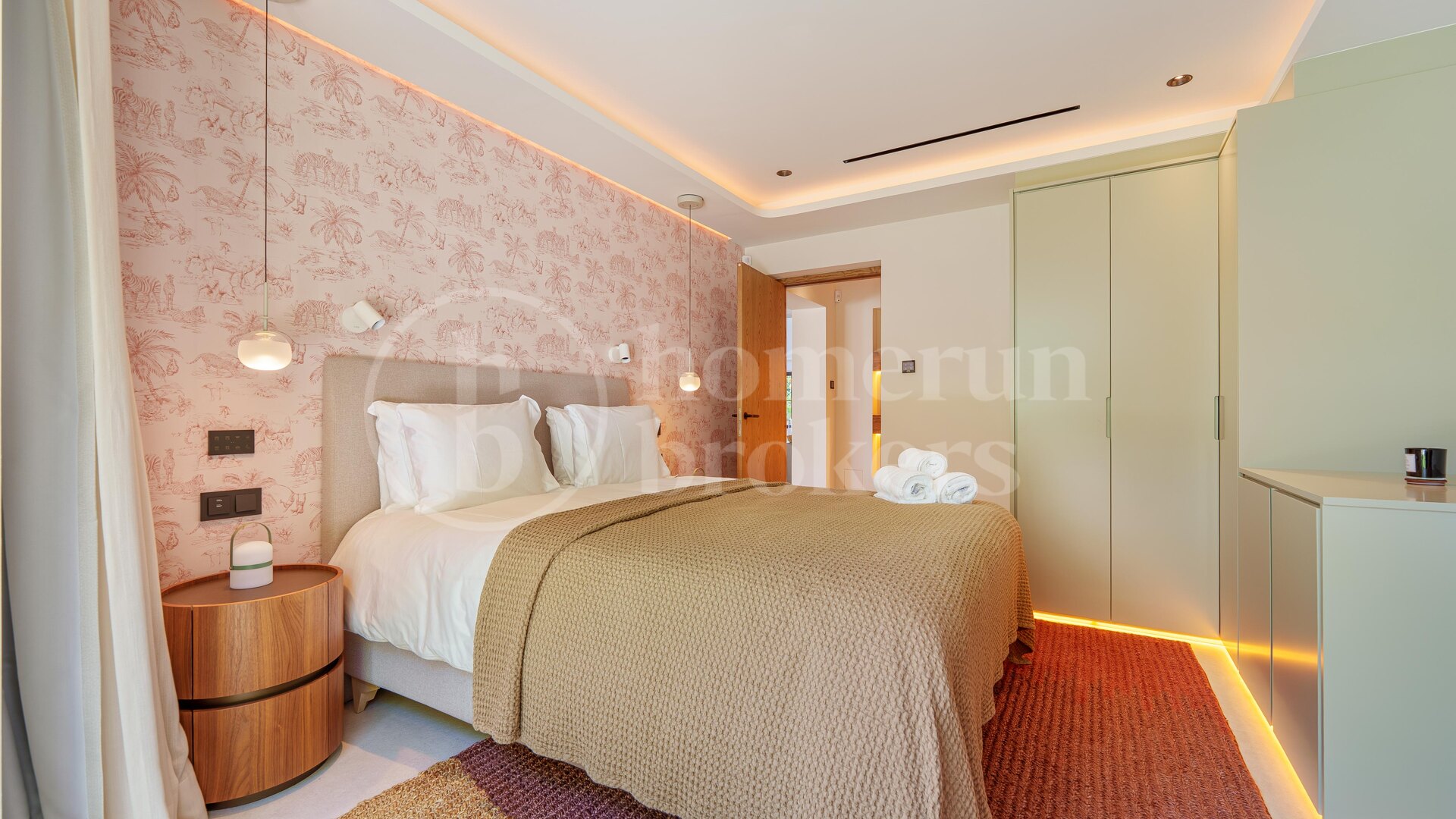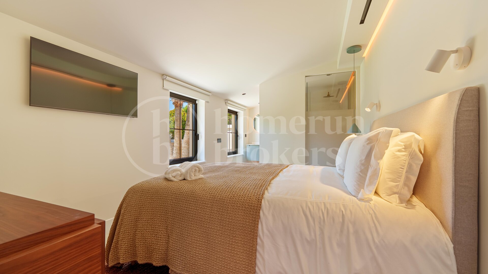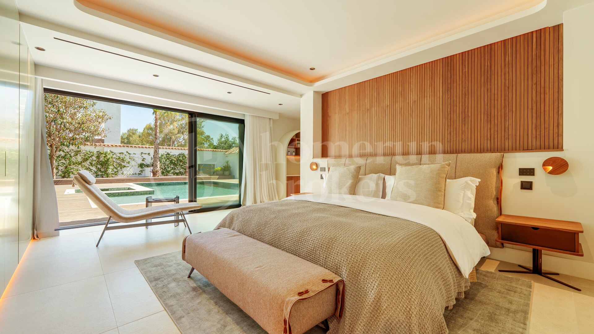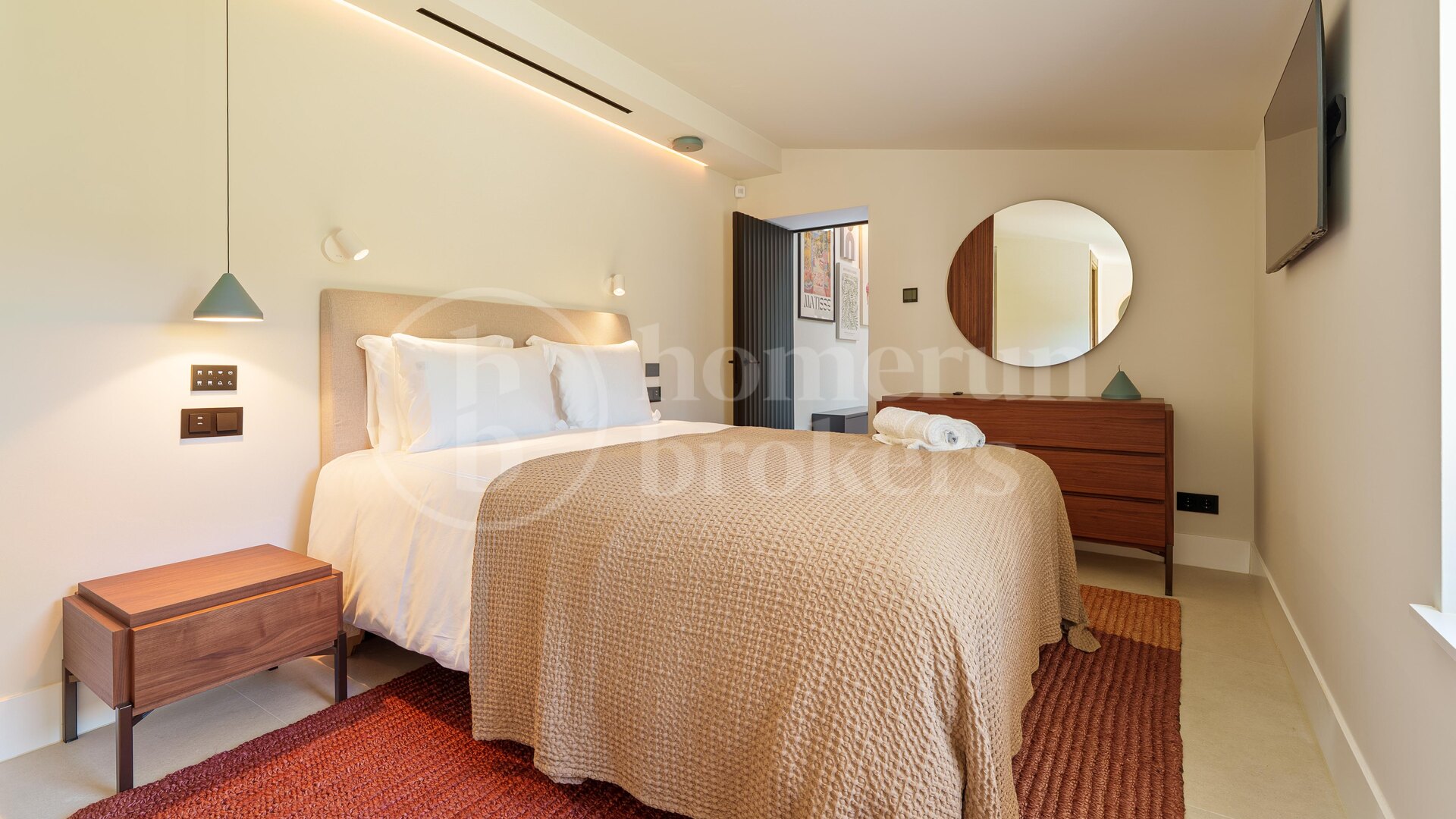 Det finns fem rymliga sovrum i hemmet, alla utformade för att maximera komfort. Master bedroom har direkt tillgång till terrassen och poolen, samt ett lyxigt badrum med fristående badkar och dusch. Alla rum är noggrant utformade för att skapa en lugn och harmonisk känsla.