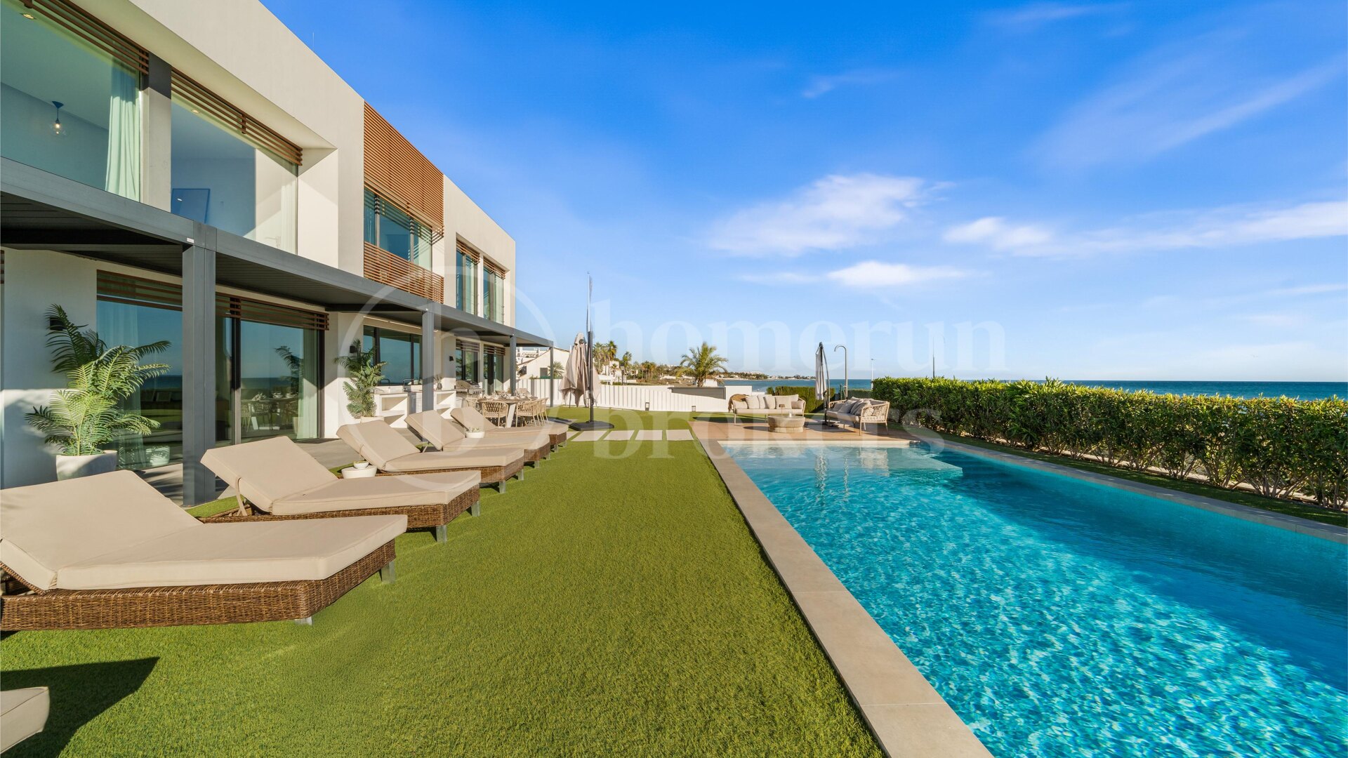 Placerad i en privilegierad kustnära inställning, är denna exceptionella strandpromenad villa till salu på New Golden Mile en modern arkitektonisk showpiece med hisnande panoramautsikt över havet och direkt strand tillgång från sin privata trädgård. Omgiven av expansiva anlagda grunder och kompletteras med en stor privat pool, erbjuder fastigheten en oöverträffad livsstil för familjer som söker integritet, elegans och sömlös anslutning till Medelhavskusten. Perfekt lämpad för vattensportentusiaster och utomhusliv, kombinerar hemmet exklusivitet med den avslappnade atmosfären i strandlivet.