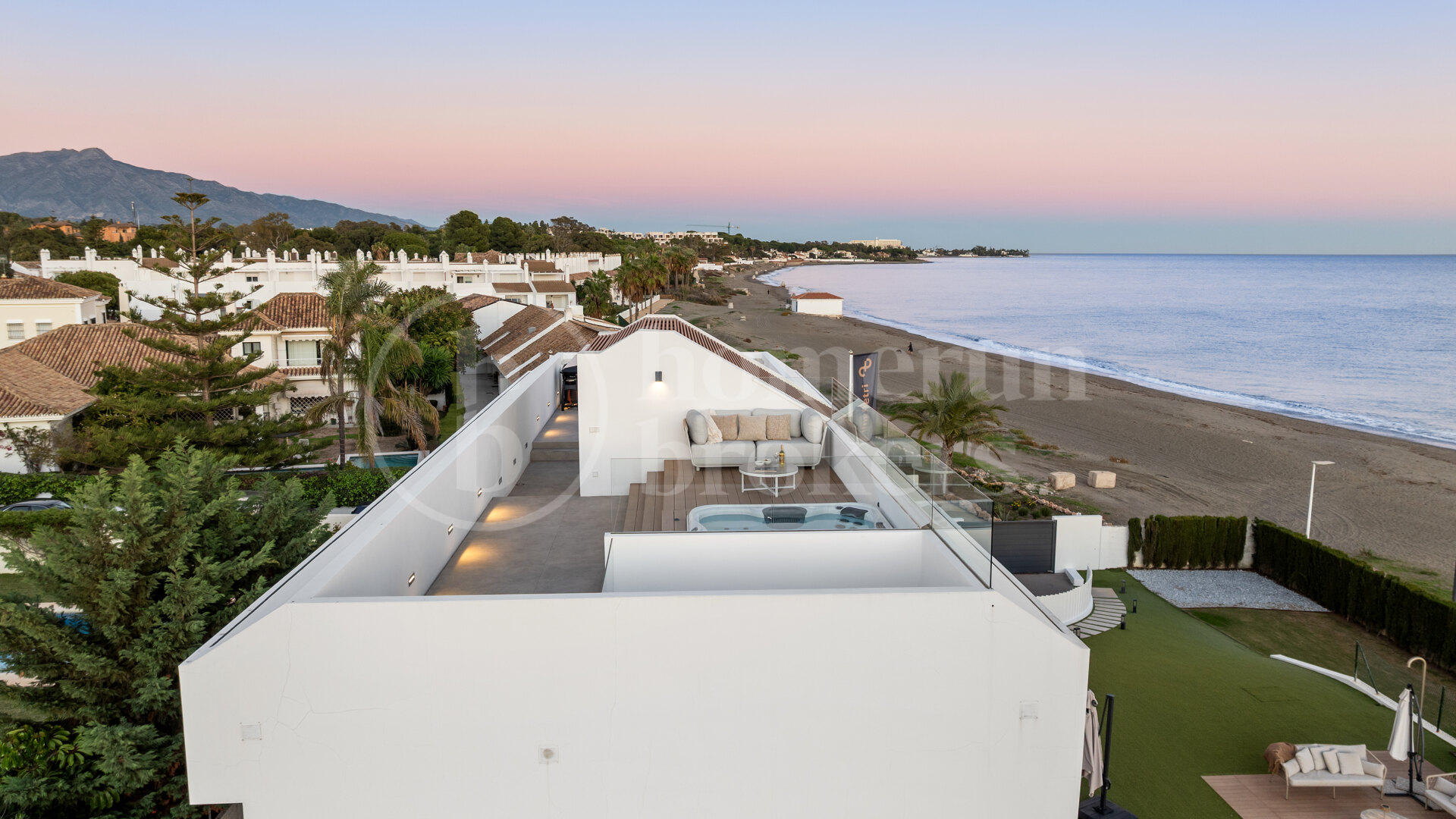 Idealiskt beläget i Playa del Saladillo längs New Golden Mile, har villan tillgång till breda sandstränder och skyddade sanddyner samtidigt som den ligger nära kända livsstilsdestinationer. Inom en kort gångavstånd är populära strandplatser, inklusive Pepe’s Beach Chiringuito och La Antigua, liksom den exklusiva Anantara Villa Padierna Beach Club. Med bil kan den charmiga staden San Pedro de Alcántara nås på cirka sju minuter, medan den världsberömda hamnen i Puerto Banús ligger bara en tio minuters bilresa bort, som erbjuder lyxbutiker, bra mat och livliga nattliv.