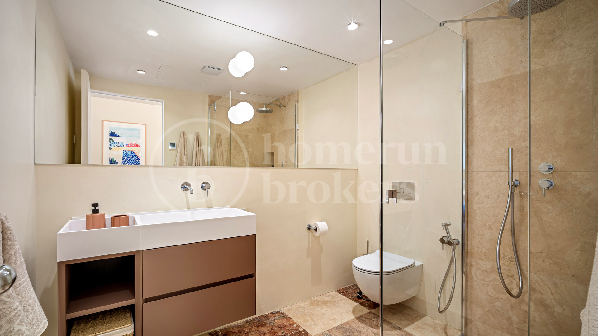 Villan rymmer fyra sovrum med egna badrum, samt tre ytterligare badrum och en gästtoalett. Alla ytor är målade med icke-toxiska, pigmentrika dekorativa färger för hälsosamma och eleganta interiörer.