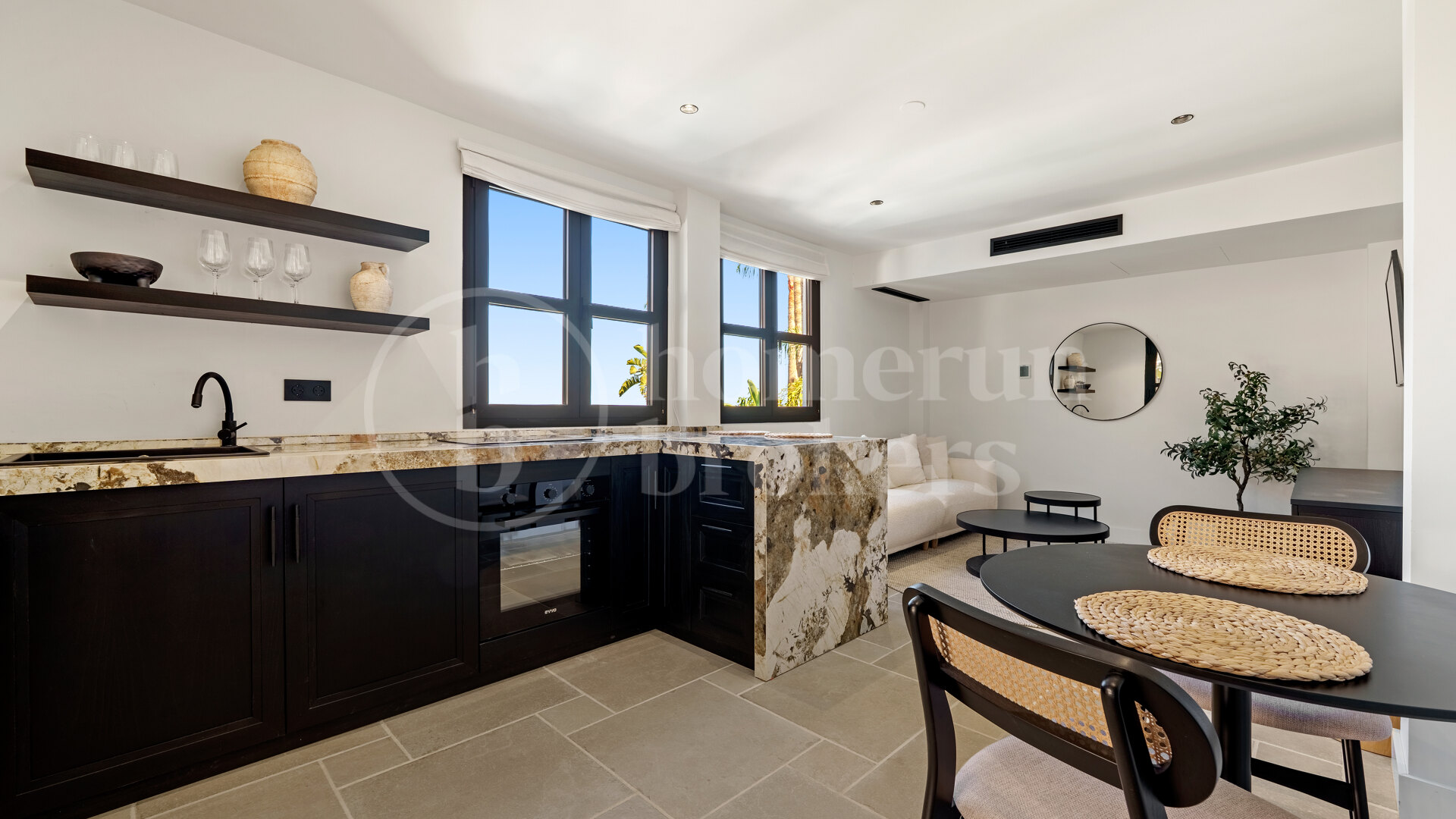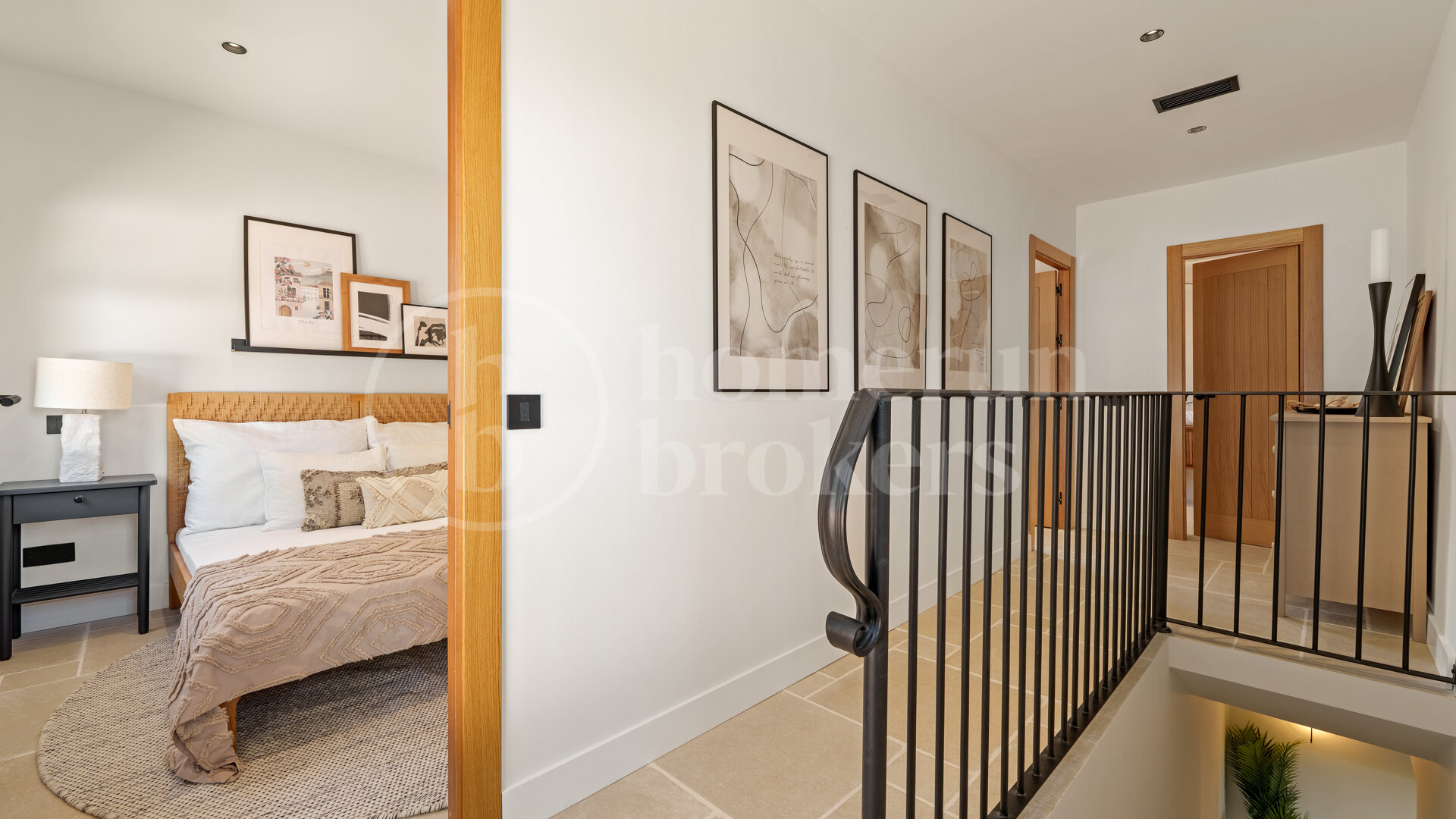 Fastigheten sträcker sig över tre nivåer av modernt boende, där varje utrymme har utformats för att maximera naturligt ljus och kopplingen till dess omgivning. Expansiva öppna plan interiörer strömmar in i breda terrasser som badar hemmet i solljus. Det huvudsakliga vardagsrummet visar elegant arkitektonisk symmetri och höga tak, medan det toppmoderna köket har skräddarsydda skåp, en överdimensionerad ö och toppnivåapparater, vilket gör det lika funktionellt som det är slående. Oavsett om du förbereder en lugn frukost eller värd stora sammankomster, garanterar layouten fluiditet och komfort.
