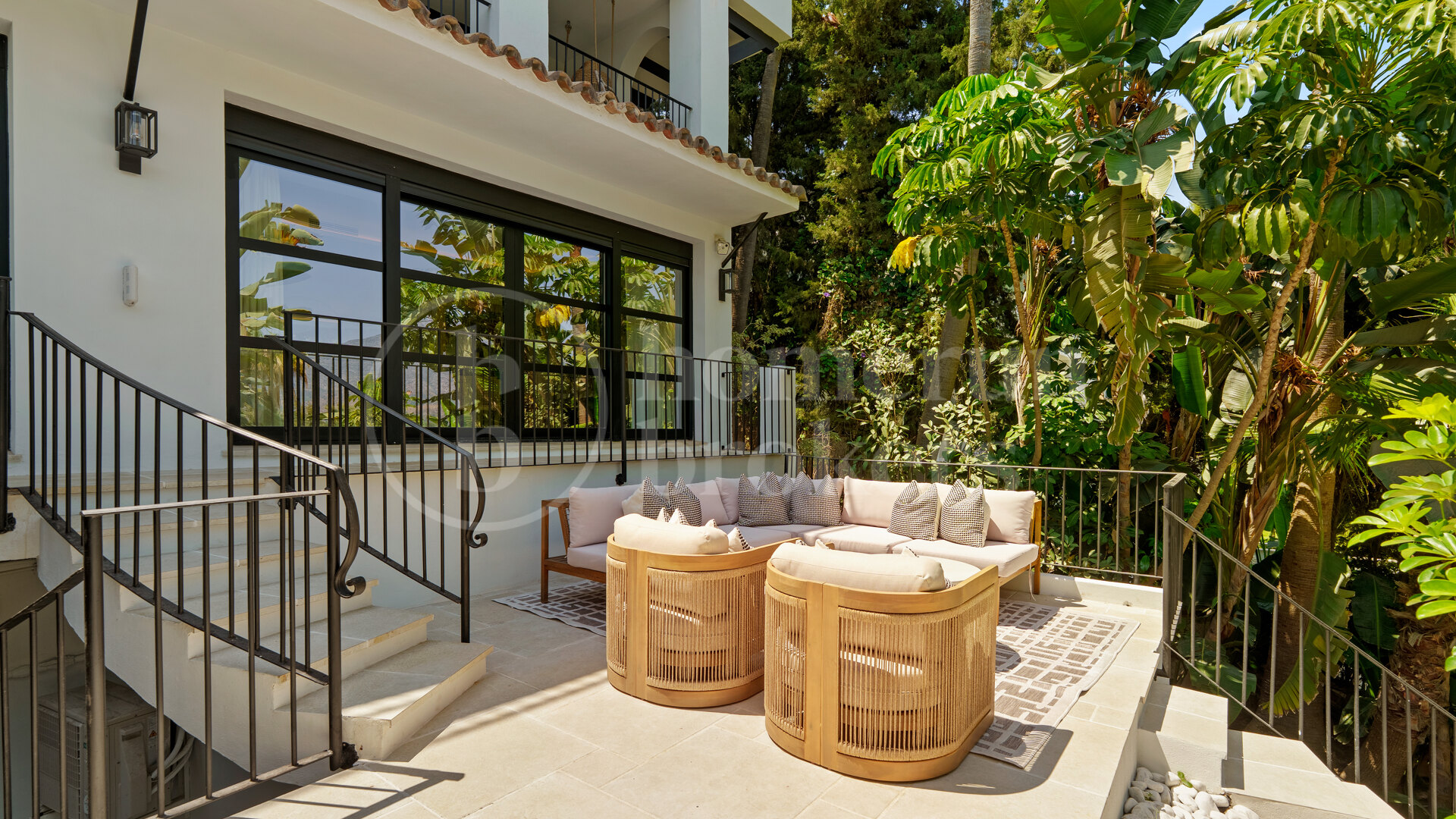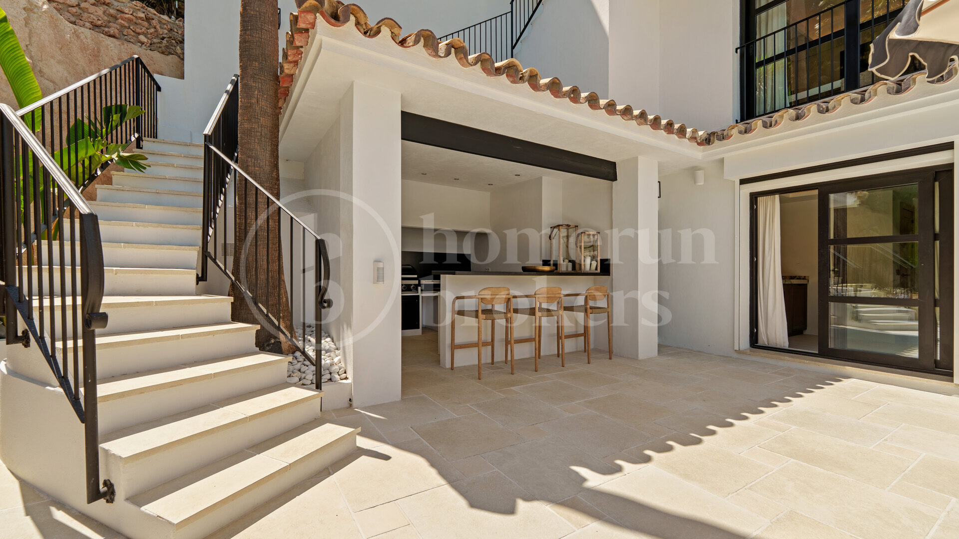Utomhusområdena höjer detta hem till resort-stil levande. Vackert anlagda trädgårdar omger en skimrande privat pool som fungerar som mittpunkten av fastigheten. En sjunken lounge med omgivande belysning inbjuder avslappnade kvällar under stjärnorna, och flera skuggade terrasser ger perfekta inställningar för alfresco middag eller tyst reflektion. Dagens rytm – från soluppgång över havet till solnedgången bakom bergen – ramar varje ögonblick med naturlig skönhet.