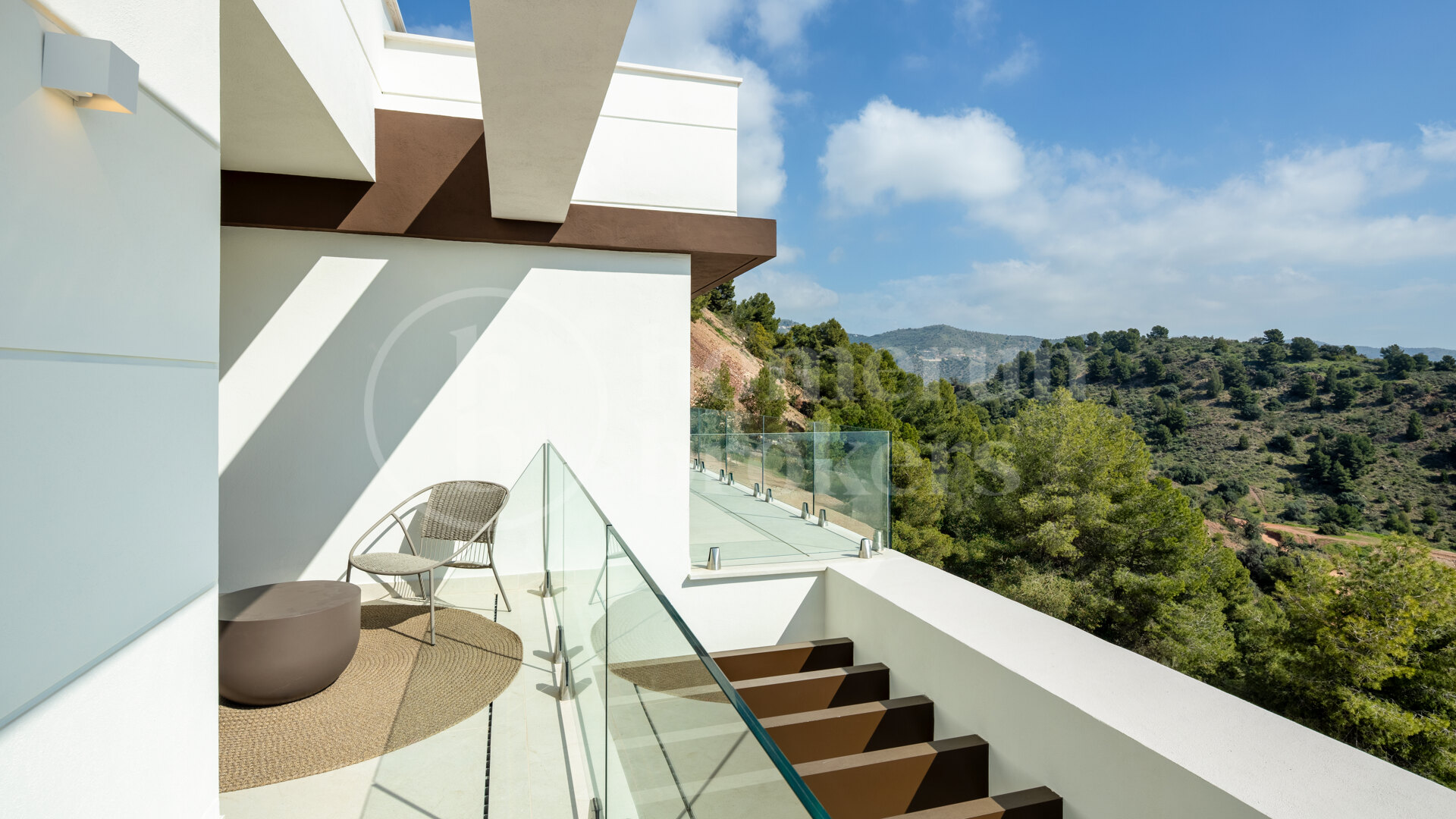 Villa Acacia är en nybyggd bostad med genomtänkt design, belägen i det prestigefyllda området Pinares de San Antón i östra Málaga. Fastigheten har utvecklats av det välkända Cogitari Group och kombinerar högklassig arkitektur med funktionalitet och naturskön omgivning. Villan sträcker sig över fyra våningar med en total byggyta på 479 kvadratmeter, varav 309 m² är interiör och 179 m² terrasser som sömlöst förenar inomhus- och utomhusliv.