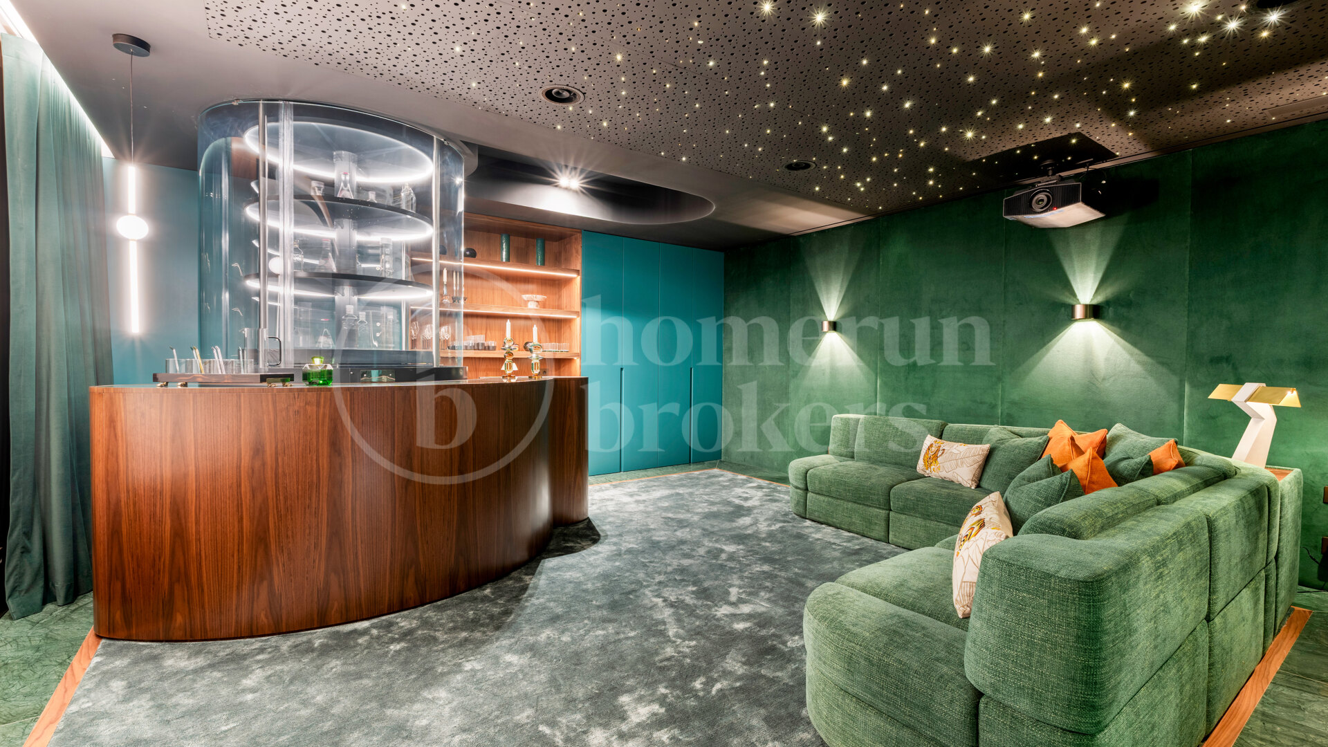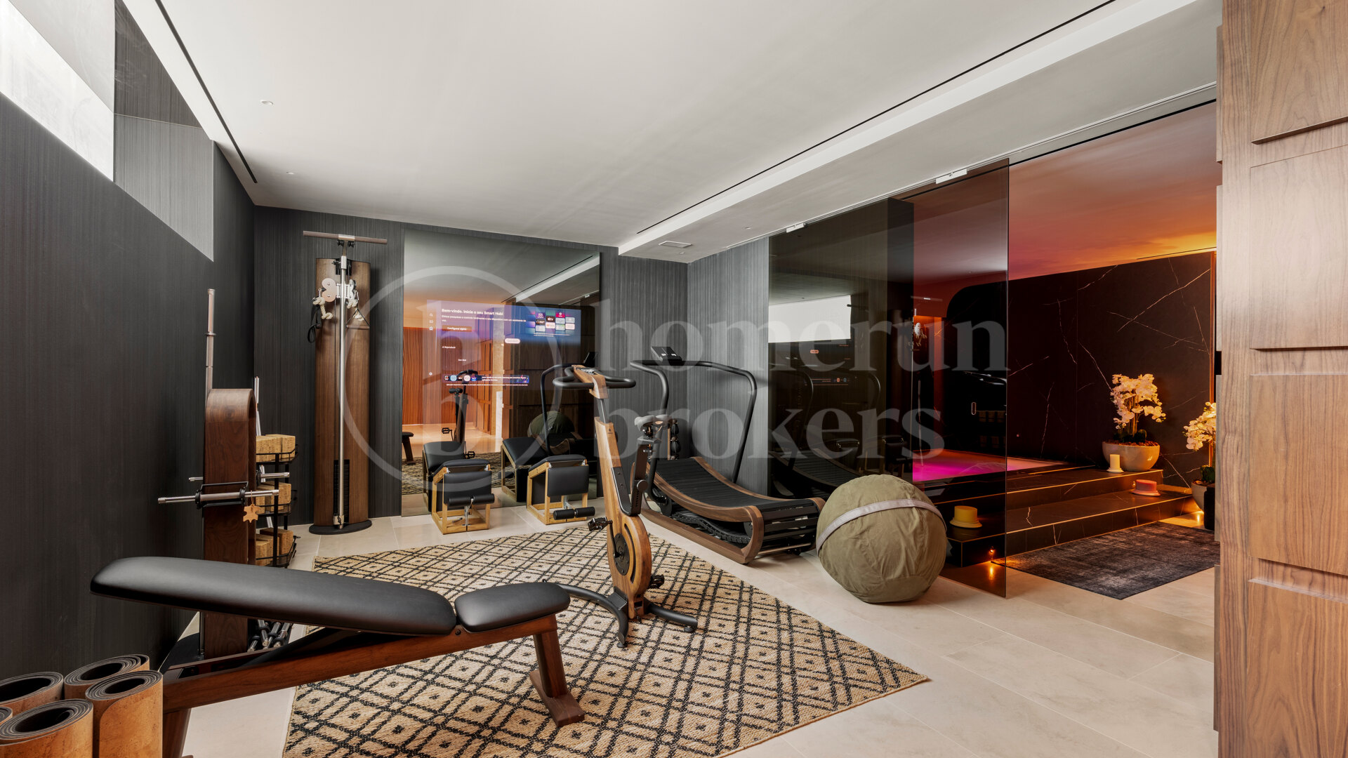 Den lägre nivån är dedikerad till fritid och välbefinnande, med ett privat biografrum, ett fullt utrustat gym och ett spa-område med bastu och jacuzzi. En vinkällare lägger till ett annat lager av livsstilsöverklagande, kompletterat med ett unikt liftsystem som syftar till att transportera flaskor direkt till huvudområdet, vilket gör underhållande både praktiskt och distinkt. Undergolvvärme i hela fastigheten och integrerad luftkonditionering garanterar komfort under alla årstider, medan ett fullt domotiskt system tillåter kontroll av belysning, klimat och gardiner med lätthet. Solpaneler bidrar till energieffektivitet och dubbla glasfönster förbättrar isolering och övergripande prestanda.