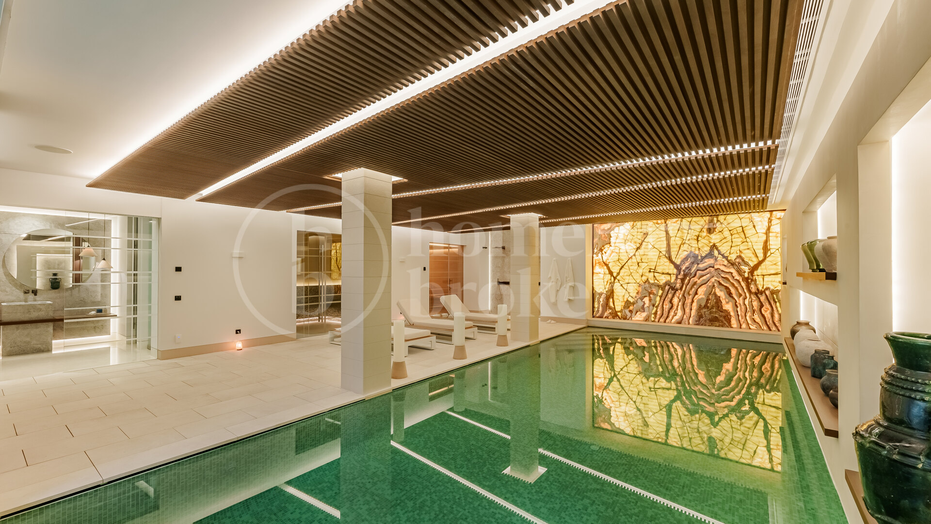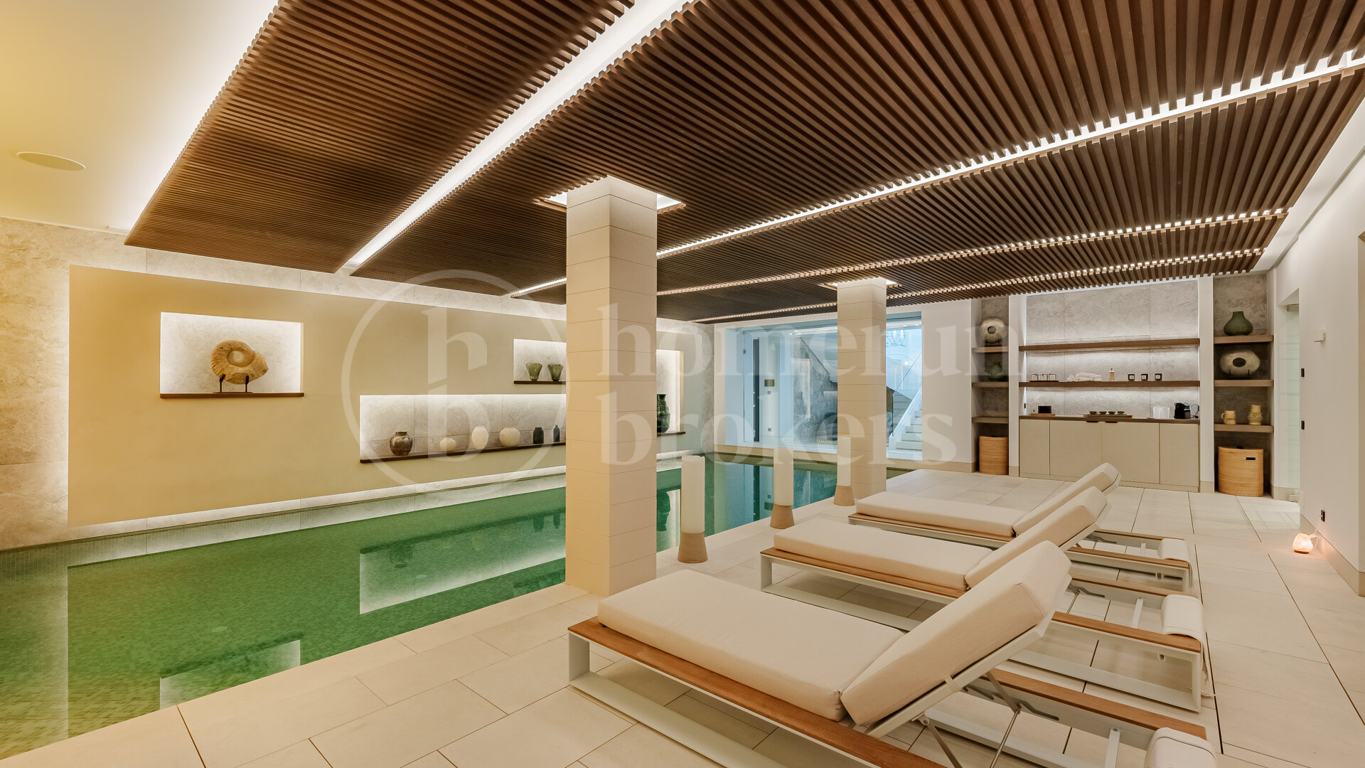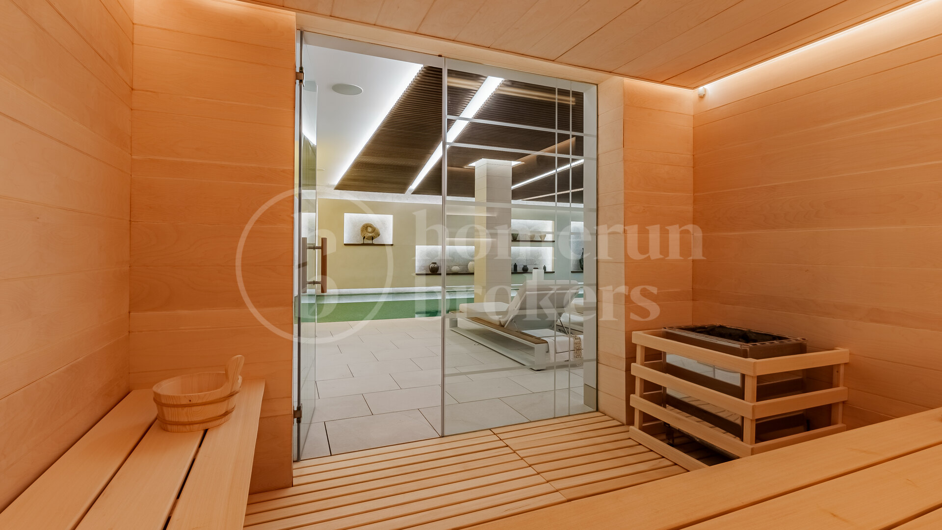 Ytterligare områden inom villan är dedikerade till livsstil och välbefinnande. Ett privat gym, bastu och inomhus spa faciliteter ger daglig komfort, medan en hemmabio, kontor och vin bodega introducerar mer specialiserade utrymmen. Inkluderingen av en helipad förbättrar ytterligare tillgängligheten, särskilt för dem som söker en fastighet som stöder en mer flexibel livsstil.