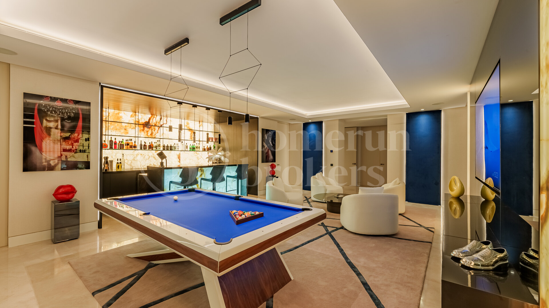 Fastigheten har utformats för att maximera utrymme, ljus och anslutning till omgivningen. Från det huvudsakliga vardagsrummet skapar dubbla höjdtak och fullhöjdsskjutande glasdörrar en sömlös övergång till de yttre terrasserna, vilket gör att naturligt ljus kan definiera interiören hela dagen. Den öppna planlayouten förbinder loungen, matplatsen och utomhusutrymmen på ett sätt som stöder både vardagsliv och storskalig underhållning, samtidigt som man bibehåller en känsla av komfort och balans.