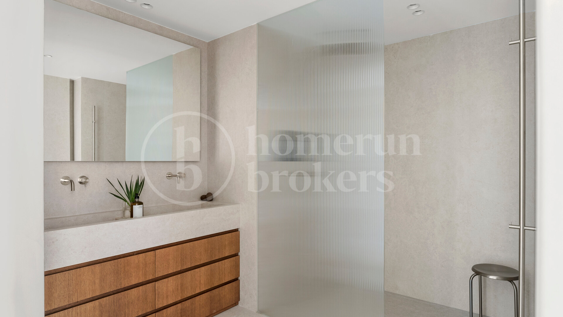 Each bedroom has been designed with privacy in mind, making the property equally suitable as a permanent residence or a refined holiday home. The principal suite benefits from generous proportions and terrace access, while the additional bedrooms accommodate guests or family members comfortably. Bathrooms reflect a contemporary aesthetic focused on clean lines and high-quality materials, supporting a sense of quiet luxury rather than visual excess.