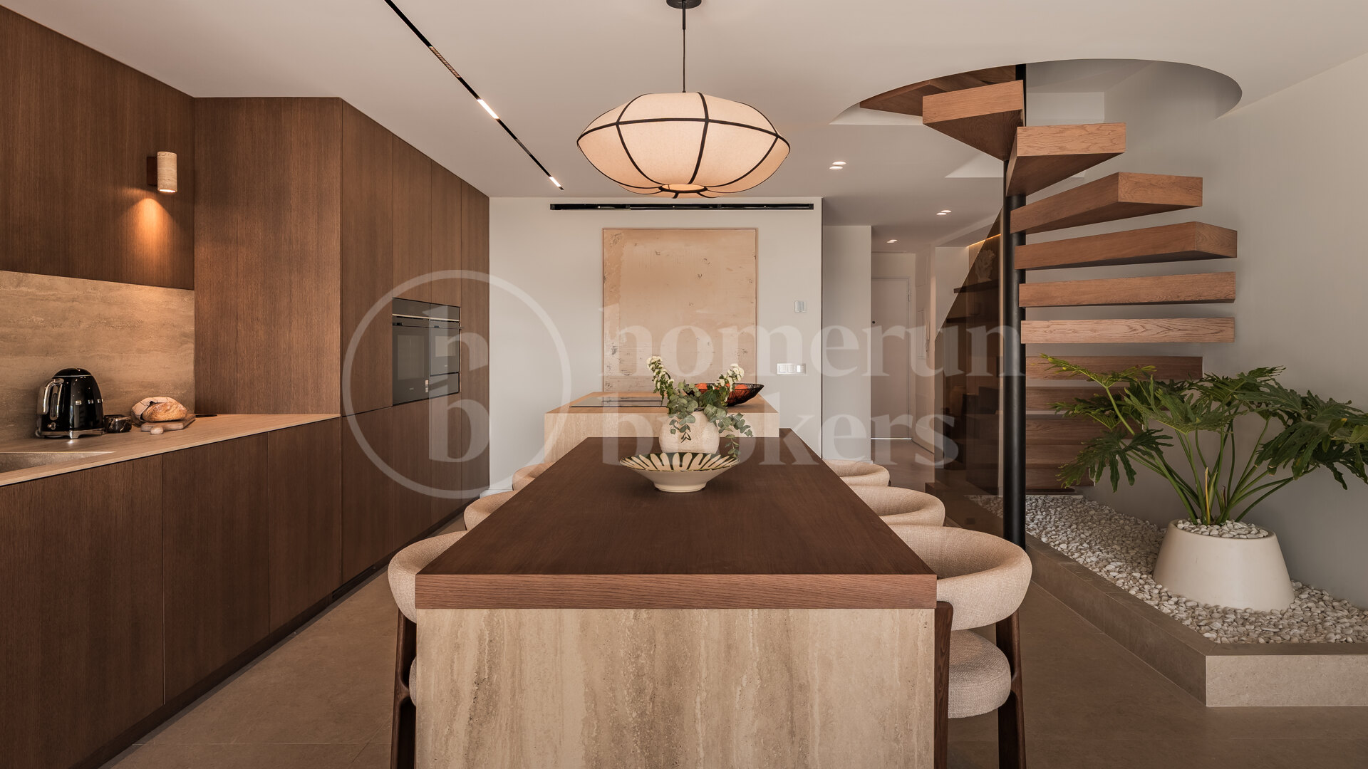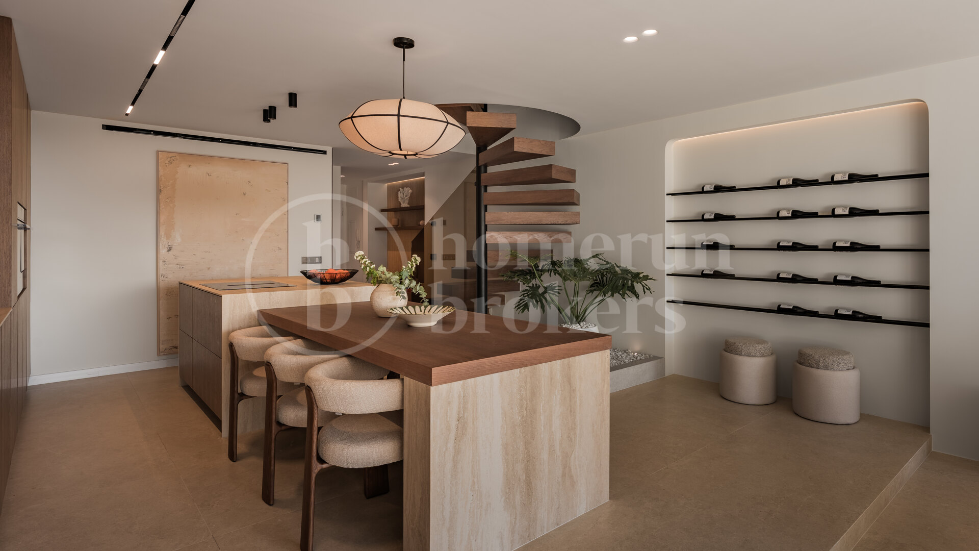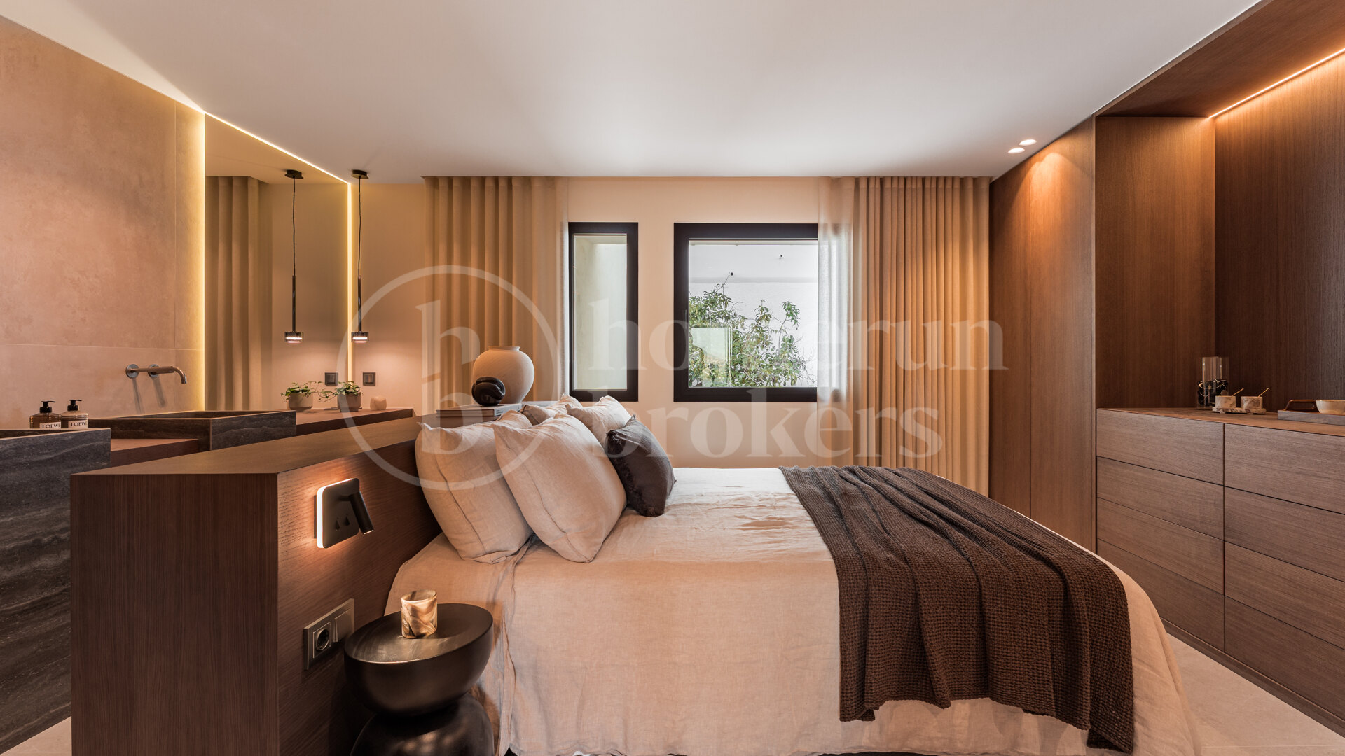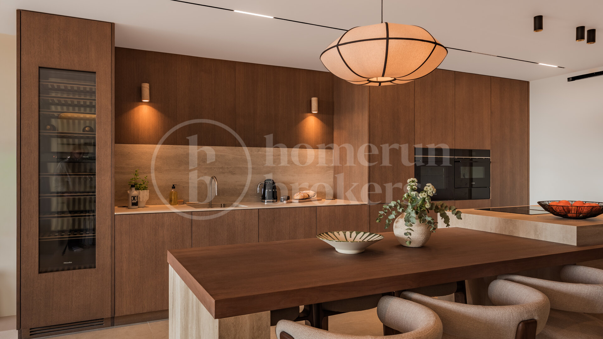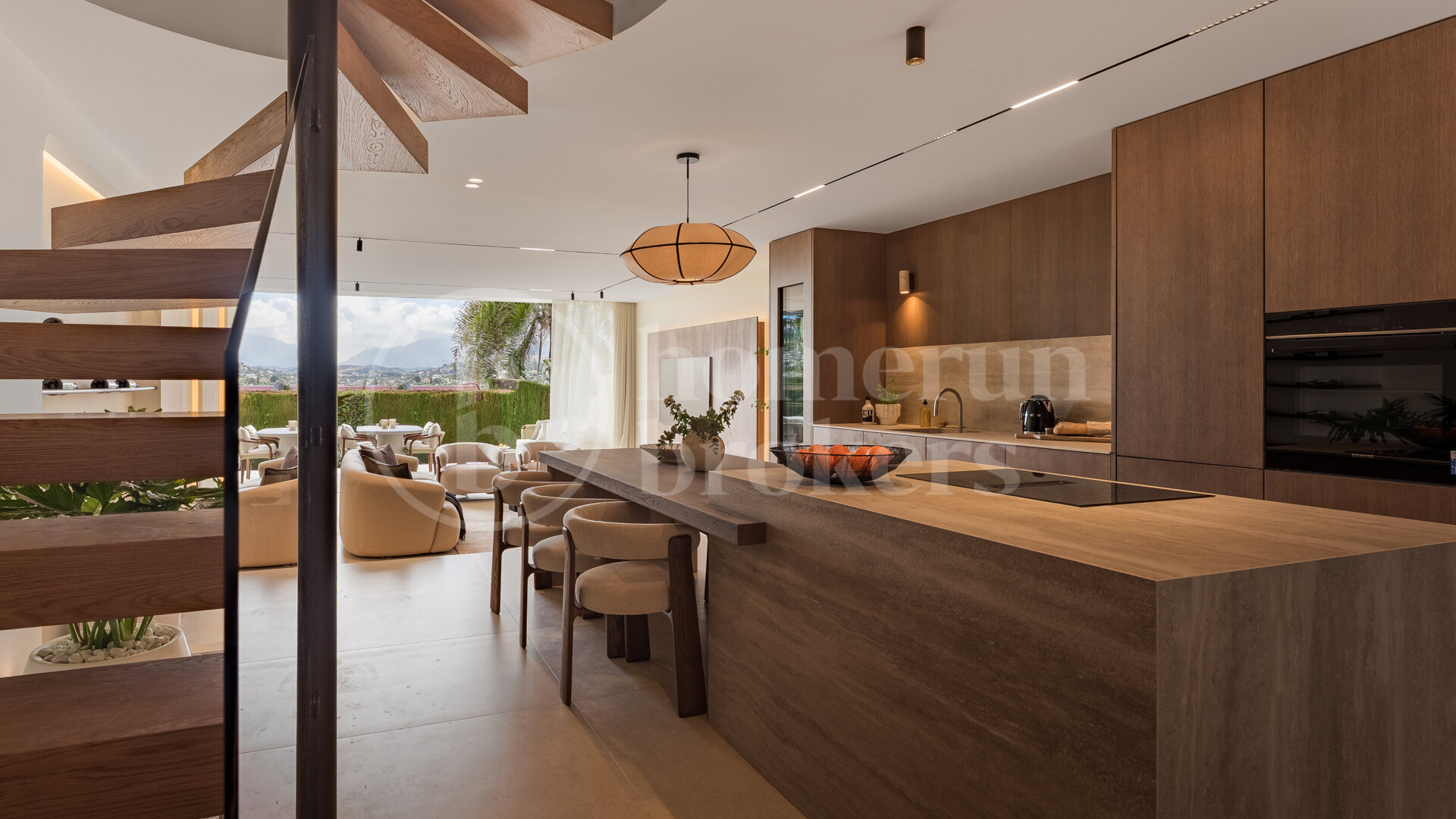 The interior features a clean, elegant aesthetic enhanced by wood details that add warmth and character throughout the living spaces. Two of the bedrooms benefit from en-suite bathrooms, providing privacy and comfort for residents and guests alike. The layout focuses on open, spacious living areas that support a modern lifestyle, allowing for easy flow between lounge, dining and terrace areas. High-quality finishes are complemented by underfloor heating throughout the home, ensuring year-round comfort while reinforcing the property’s contemporary feel.