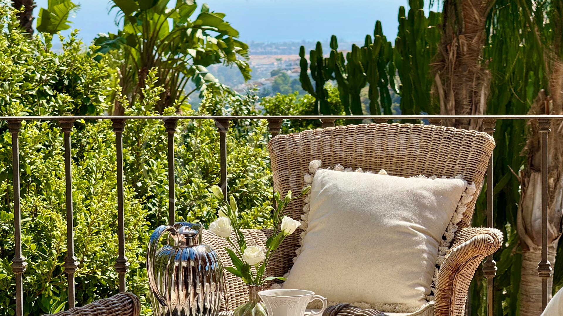 The property stands out for its exceptional position, panoramic views, and timeless Andalusian character. Surrounded by more than fifty majestic palm trees, this private retreat embodies Mediterranean elegance, peace, and natural beauty.