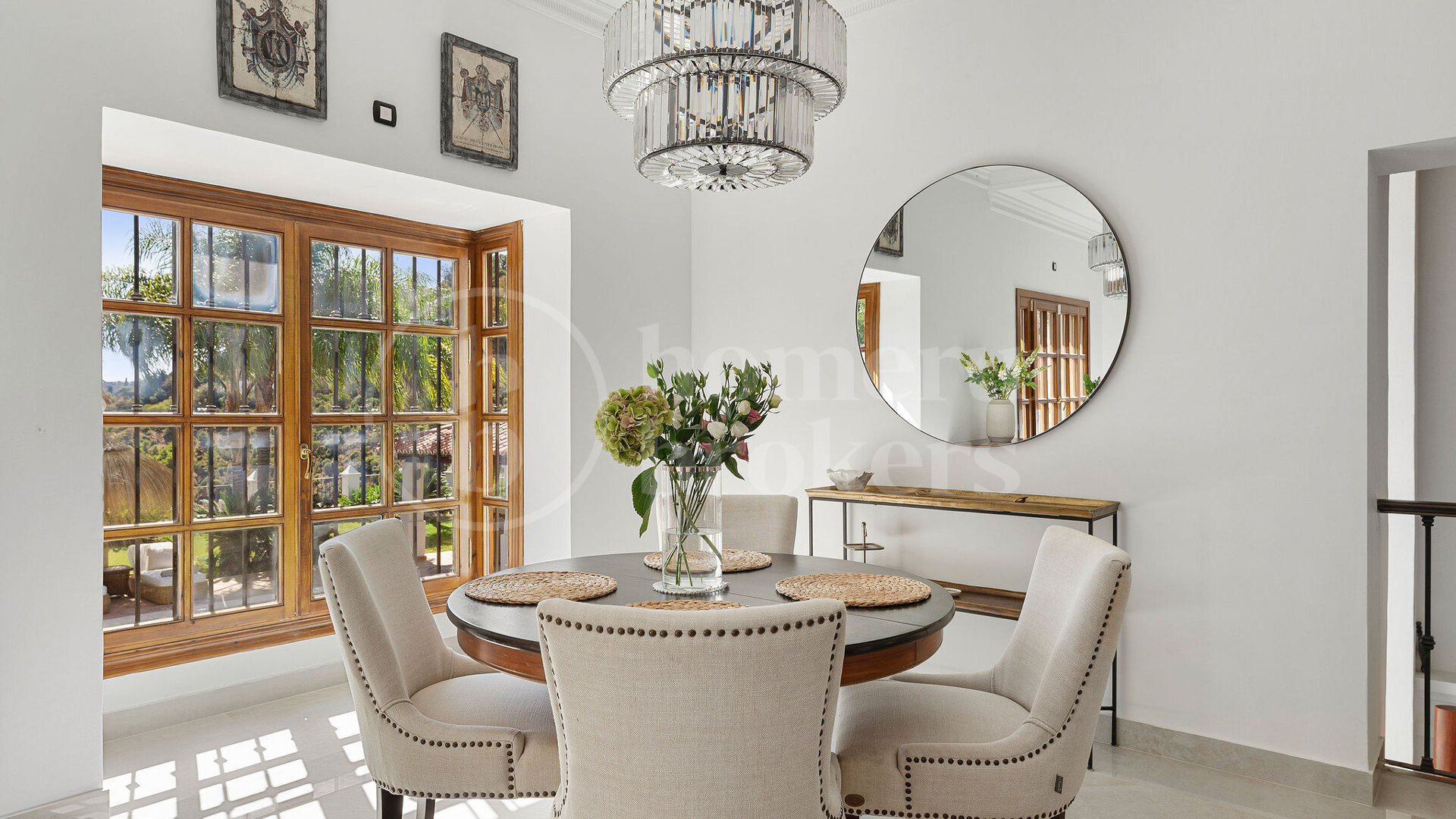 Villa Las Palmeras presents a distinguished opportunity to own a luxury residence within the coveted gated community of El Madroñal in Benahavis. Blending timeless Madroñal charm with contemporary updates, this expansive villa offers 531 square meters of built space over two thoughtfully designed floors, perfectly tailored for those who value privacy,