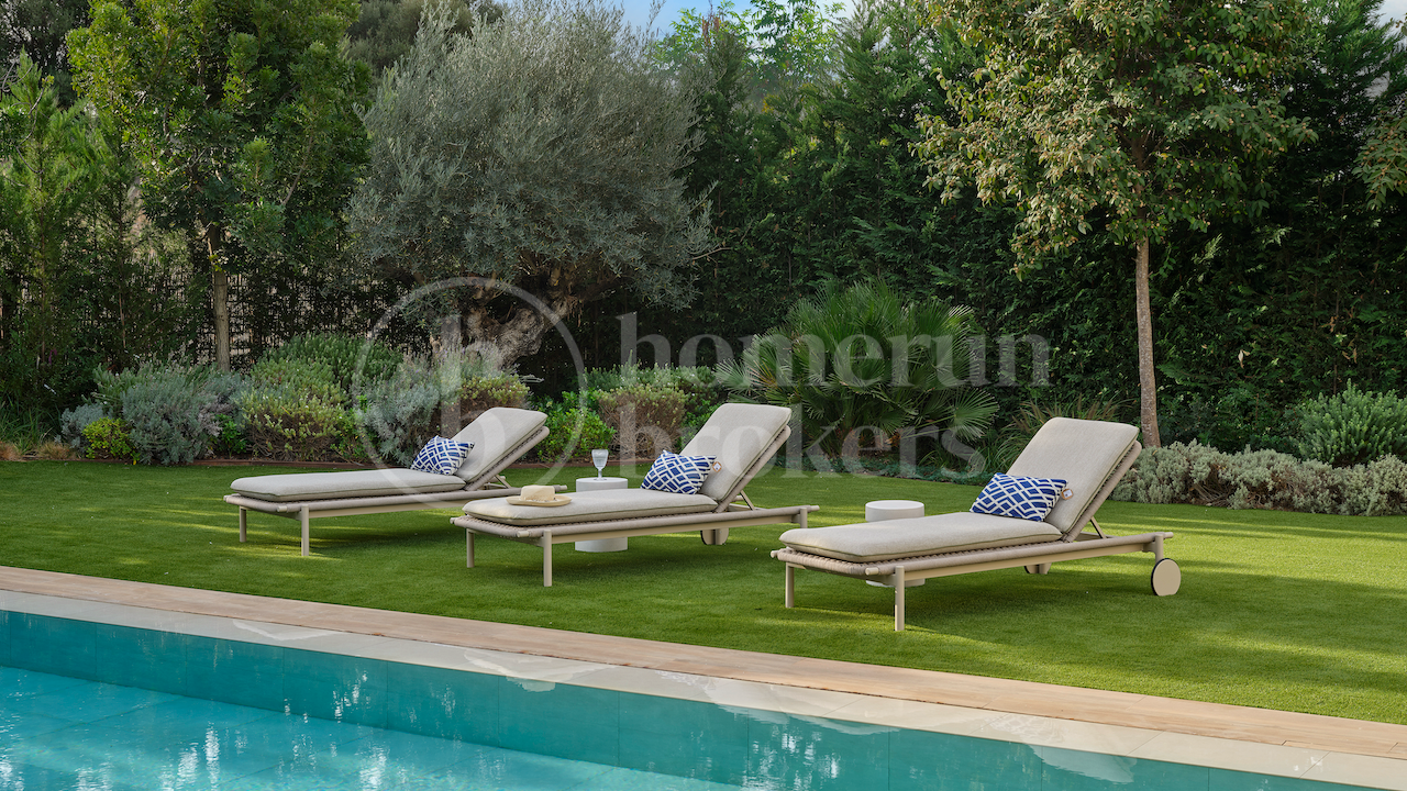 Outside, Villa Celia is surrounded by mature landscaped gardens, providing privacy and a serene atmosphere. The swimming pool serves as the centerpiece of the outdoor space, framed by lush greenery and sun-drenched terraces — ideal for relaxing or hosting gatherings in the Costa del Sol’s enviable climate.