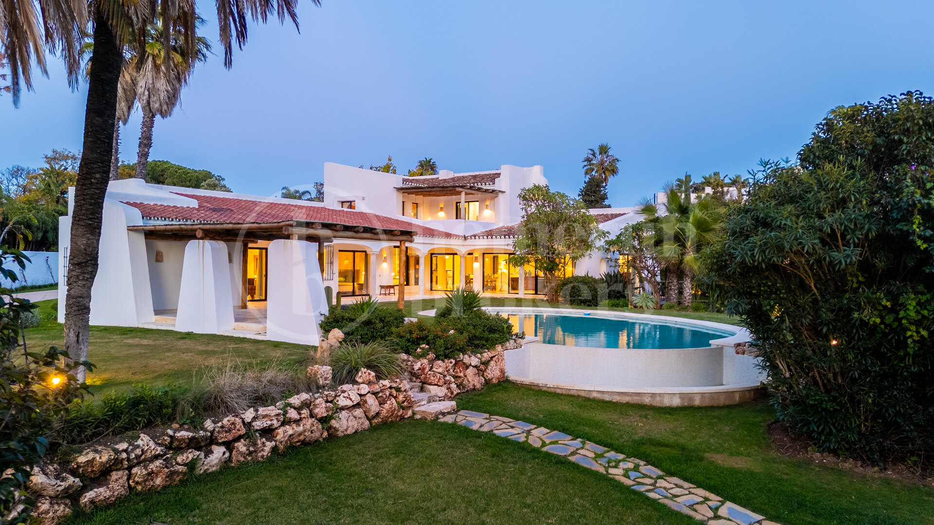 This exclusive villa for sale in Guadalmina Baja is a Boho-style detached property offering six bedrooms and four bathrooms in total, distributed between a main house and an independent guest residence, and enjoying garden, pool and mountain views within one of the most established beachside neighbourhoods on the western Costa del Sol. Recently renovated under the direction of renowned architect Ernesto Palanco, the villa preserves its Andalusian soul while incorporating contemporary comfort, modern systems and refined interior finishes. Set on an elevated private plot, the property enjoys exceptional privacy, low-density surroundings and the possibility to extend the built area by up to 300 m², making it a highly attractive option both as a luxury residence and as a long-term investment.