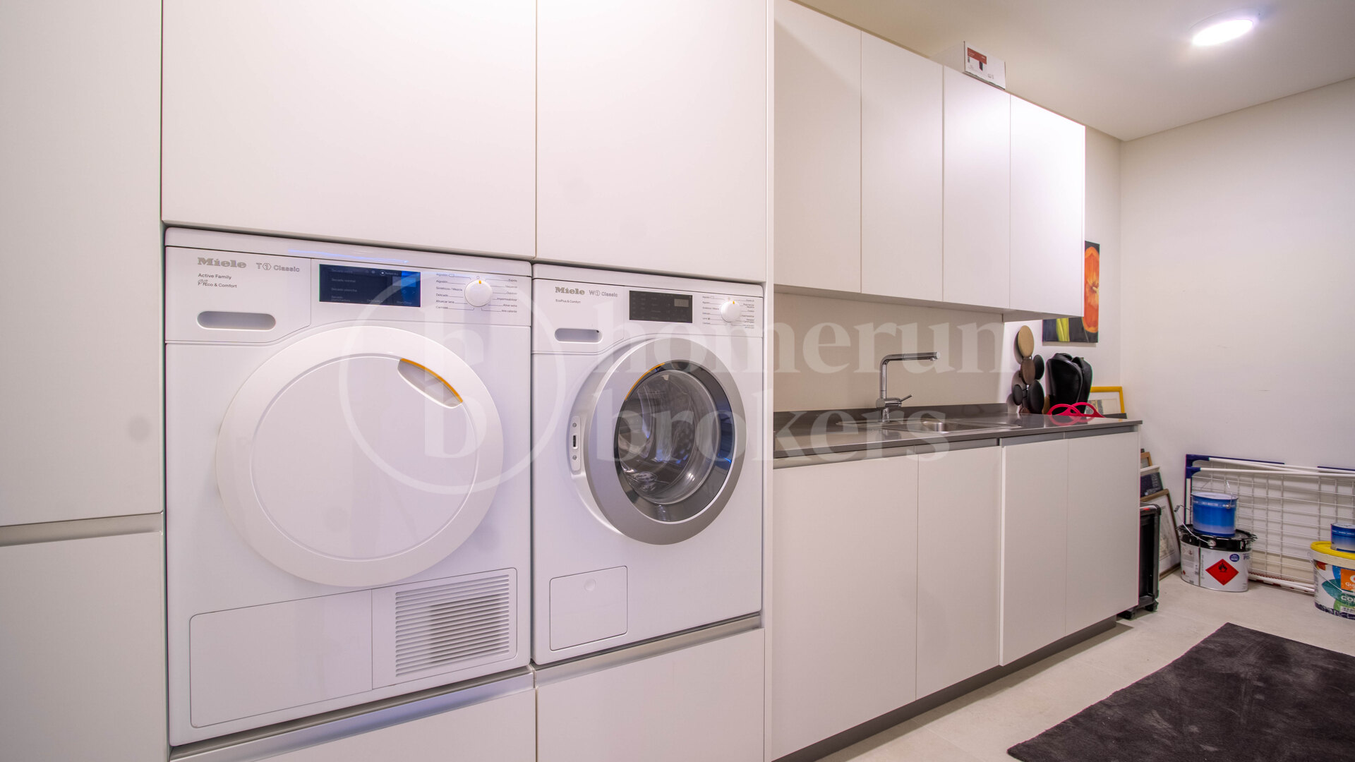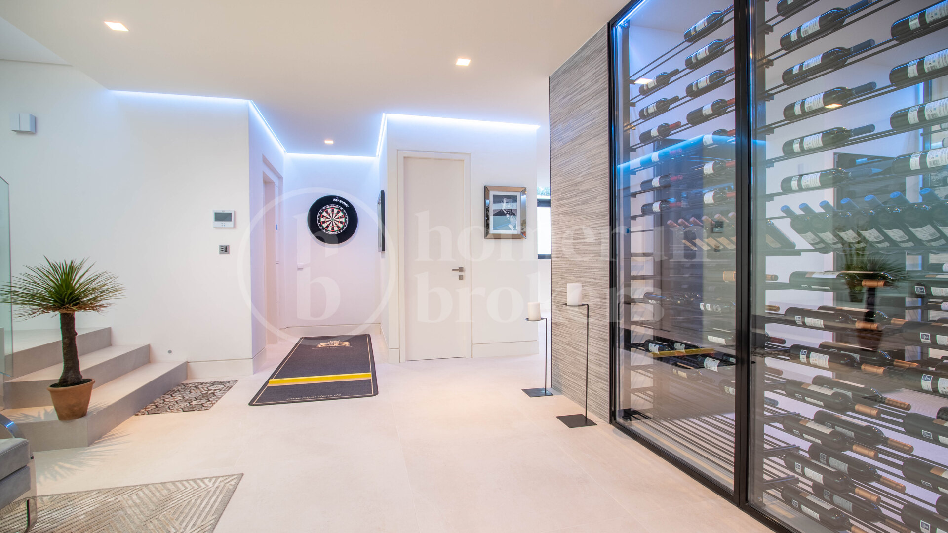 The five bedrooms are distributed to ensure both comfort and privacy, with each space designed to feel calm and refined rather than simply functional. The bathrooms reflect the same attention to detail, incorporating high-end finishes and modern fittings. Below the main living areas, the basement level has been developed into a private leisure zone. Instead of a simple lower floor, this level operates as an entertainment and wellness retreat, complete with a fully equipped gym, a spa area, and a dedicated cinema room. A games space, bar, lounge, utility room, and walk-in bodega further elevate this floor, creating an environment suited to both relaxation and social occasions.