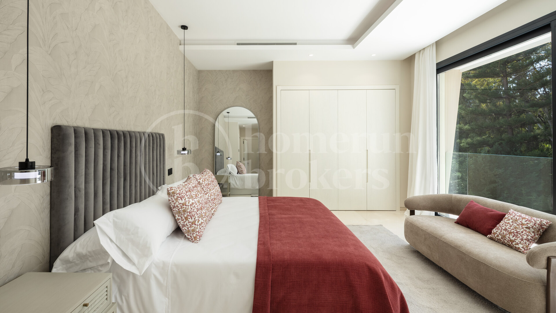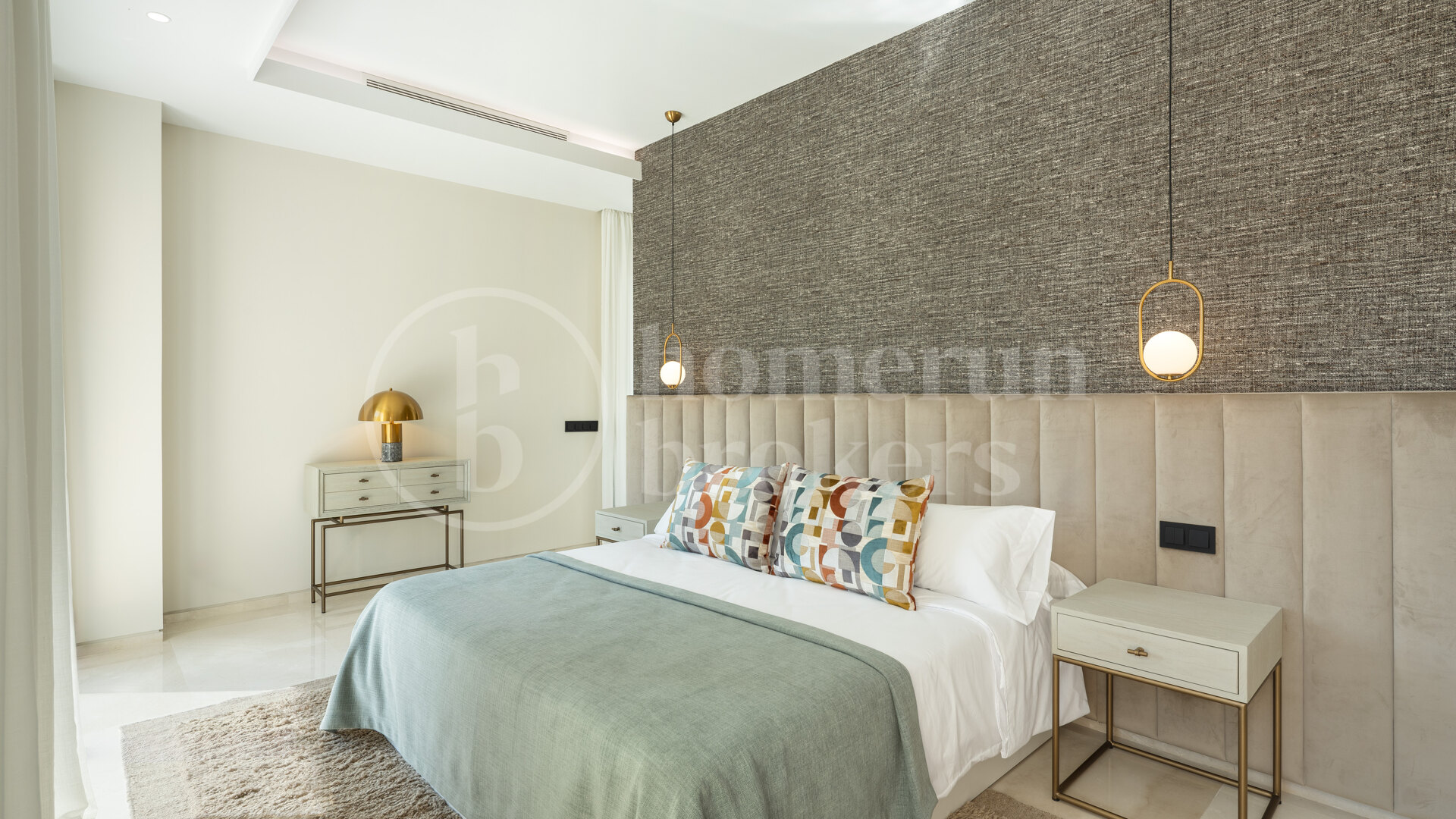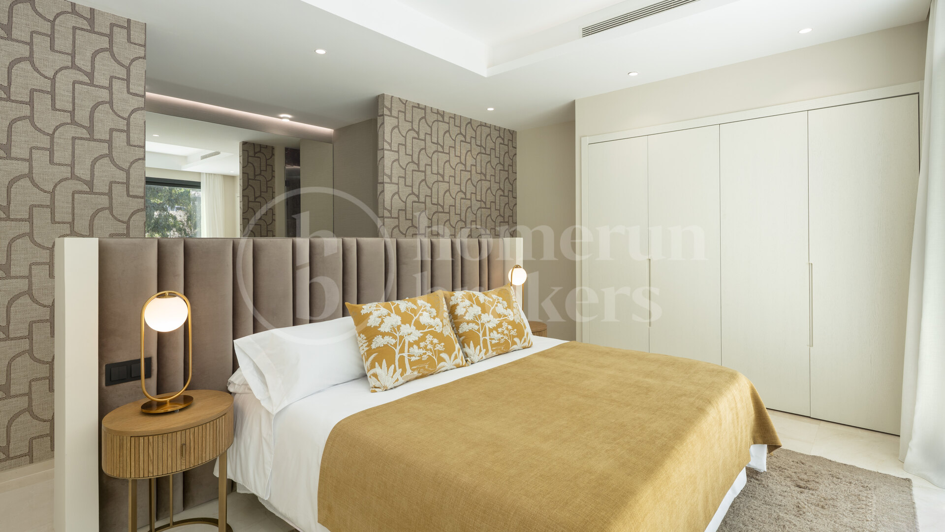 On this level, a guest bedroom with en-suite enjoys tranquil garden views, providing comfort and privacy. The first floor is dedicated to refined living, highlighted by an impressive master suite complete with a stunning walk-in wardrobe and a luxurious en-suite bathroom. An additional guest bedroom with en-suite is also located on this level, maintaining the home’s high standard of comfort throughout.