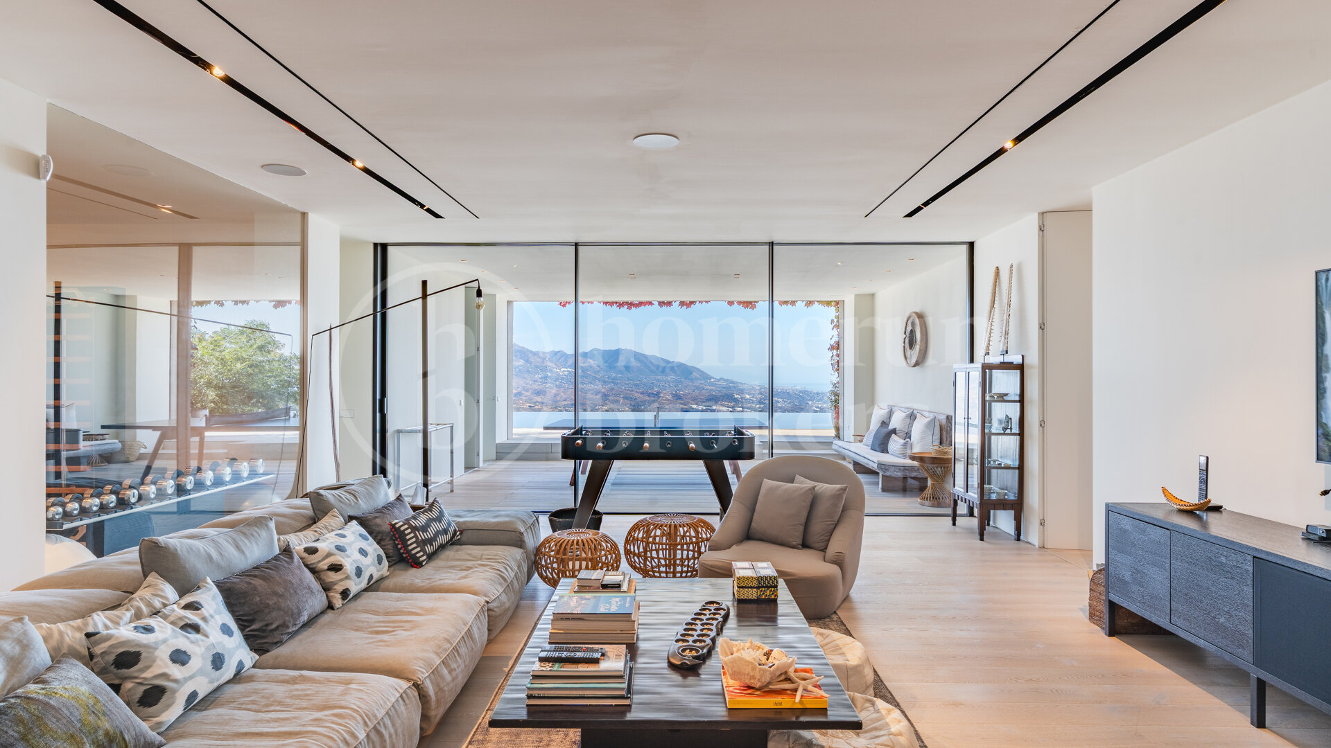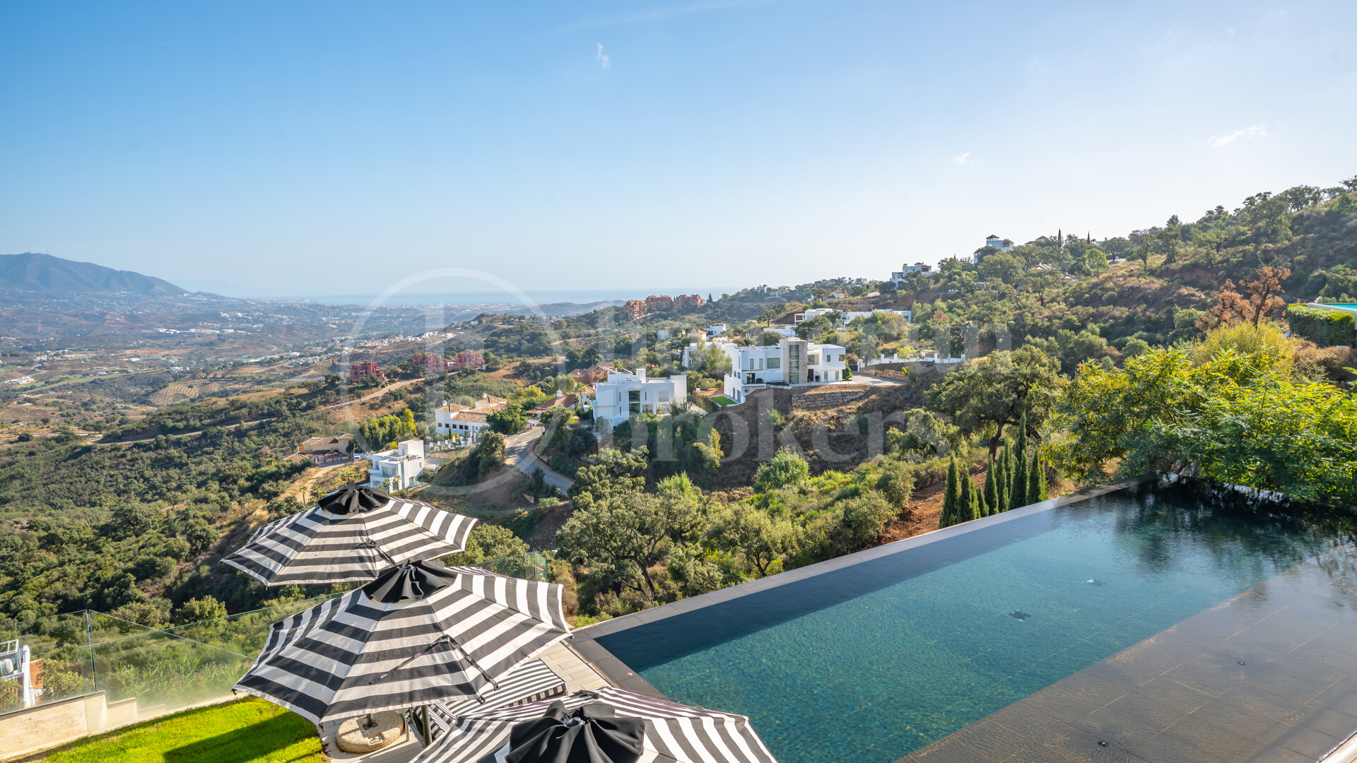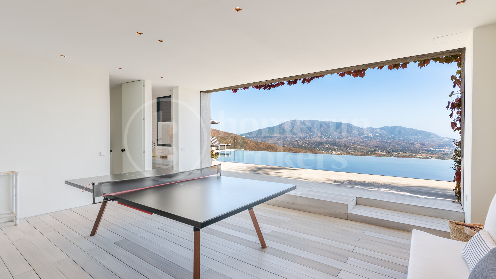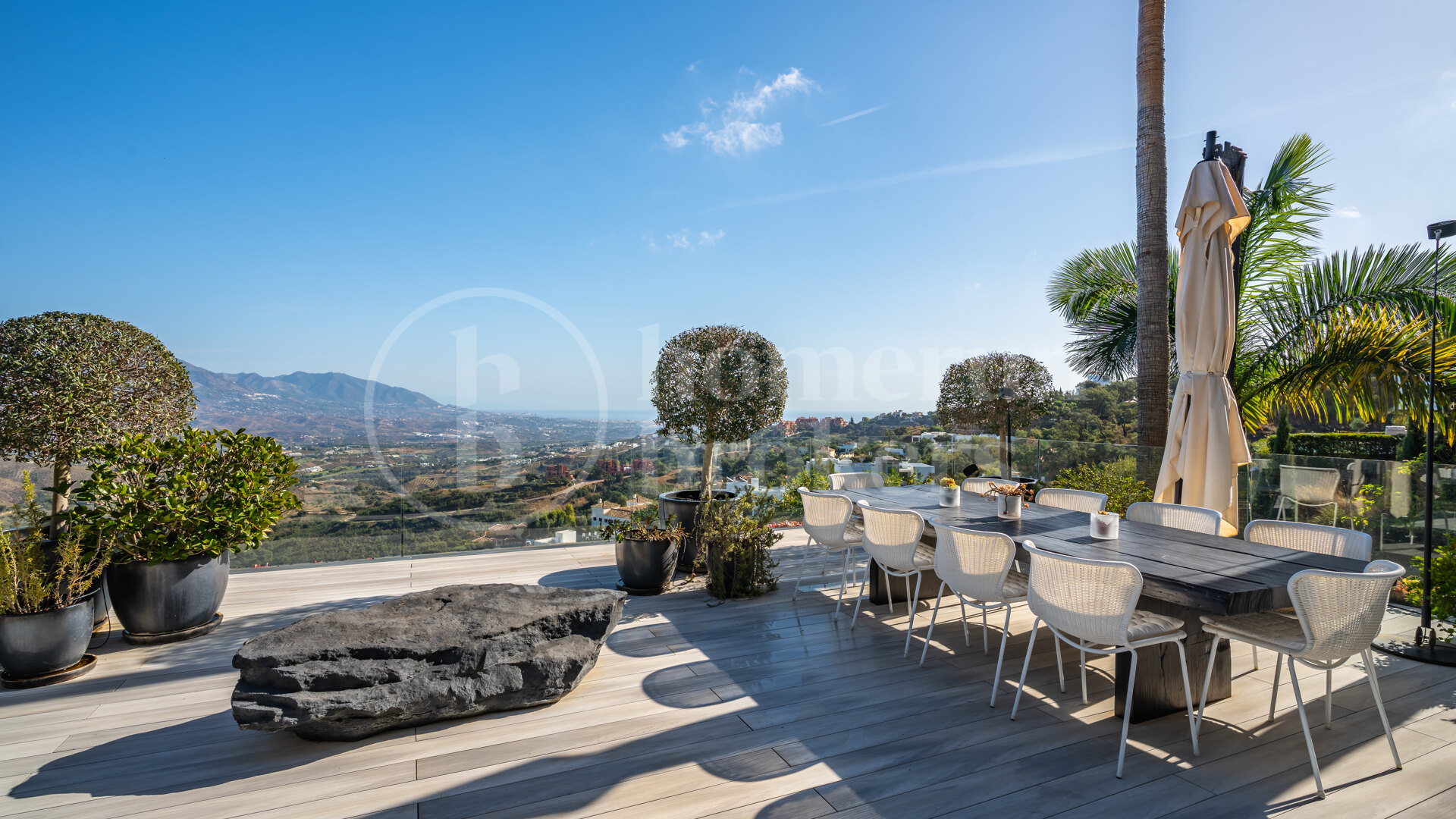 Discover an exceptional villa in the highly sought-after residential enclave of La Mairena, thoughtfully designed by its owners to combine practicality with a deep connection to nature. Every level of the home has been carefully planned to maximise the sweeping sea views, the lush hillsides, and the extraordinary sense of openness that defines this unique setting.