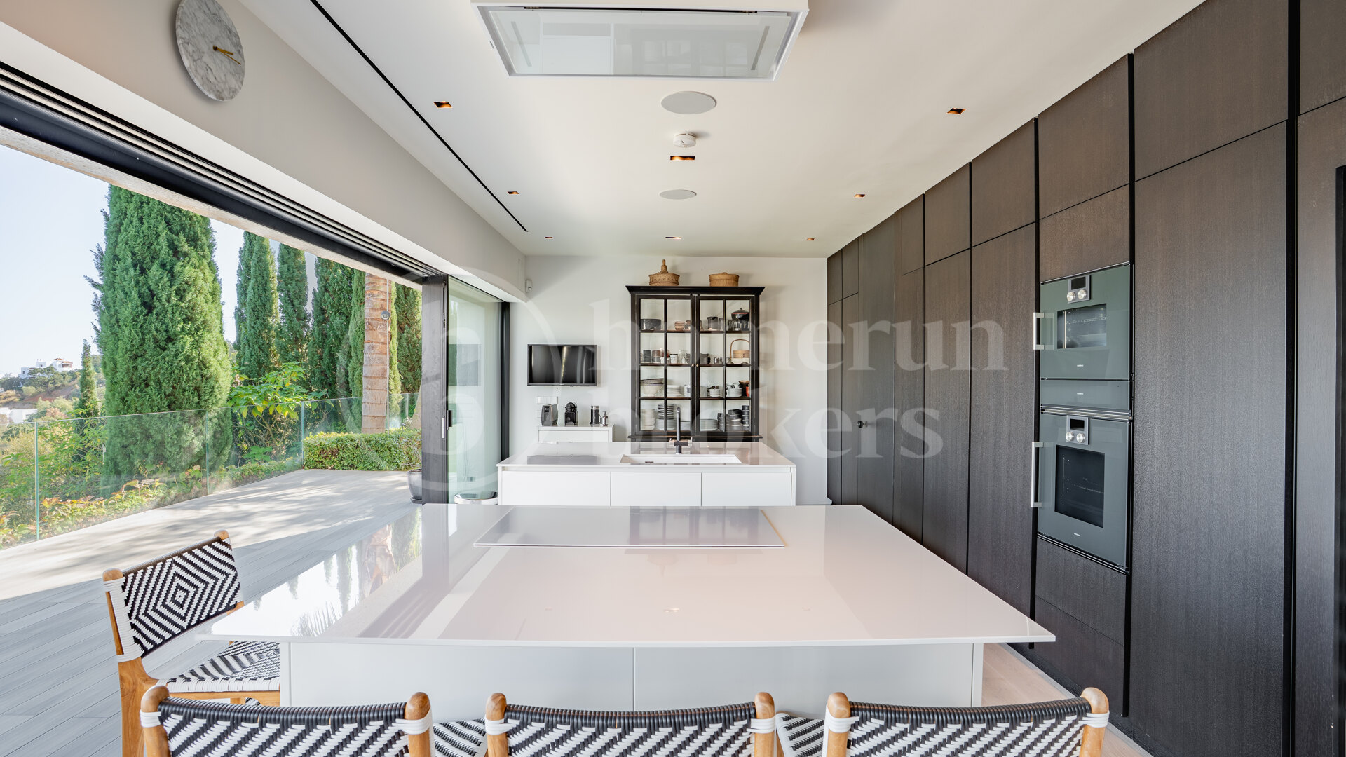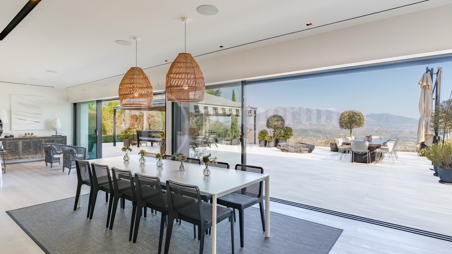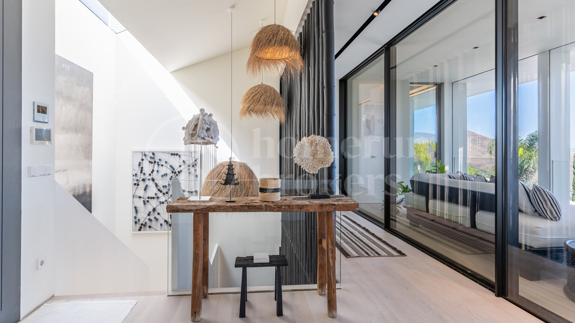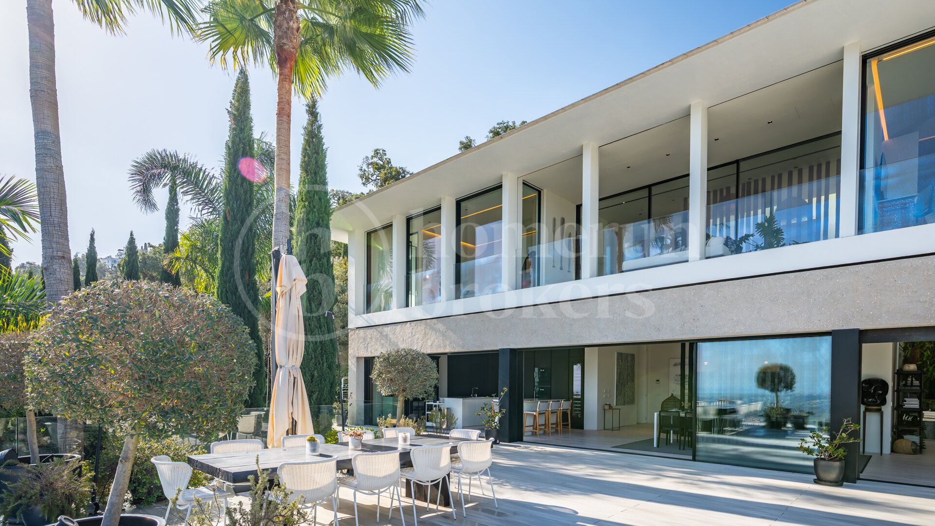 Discover an exceptional villa in the highly sought-after residential enclave of La Mairena, thoughtfully designed by its owners to combine practicality with a deep connection to nature. Every level of the home has been carefully planned to maximise the sweeping sea views, the lush hillsides, and the extraordinary sense of openness that defines this unique setting.