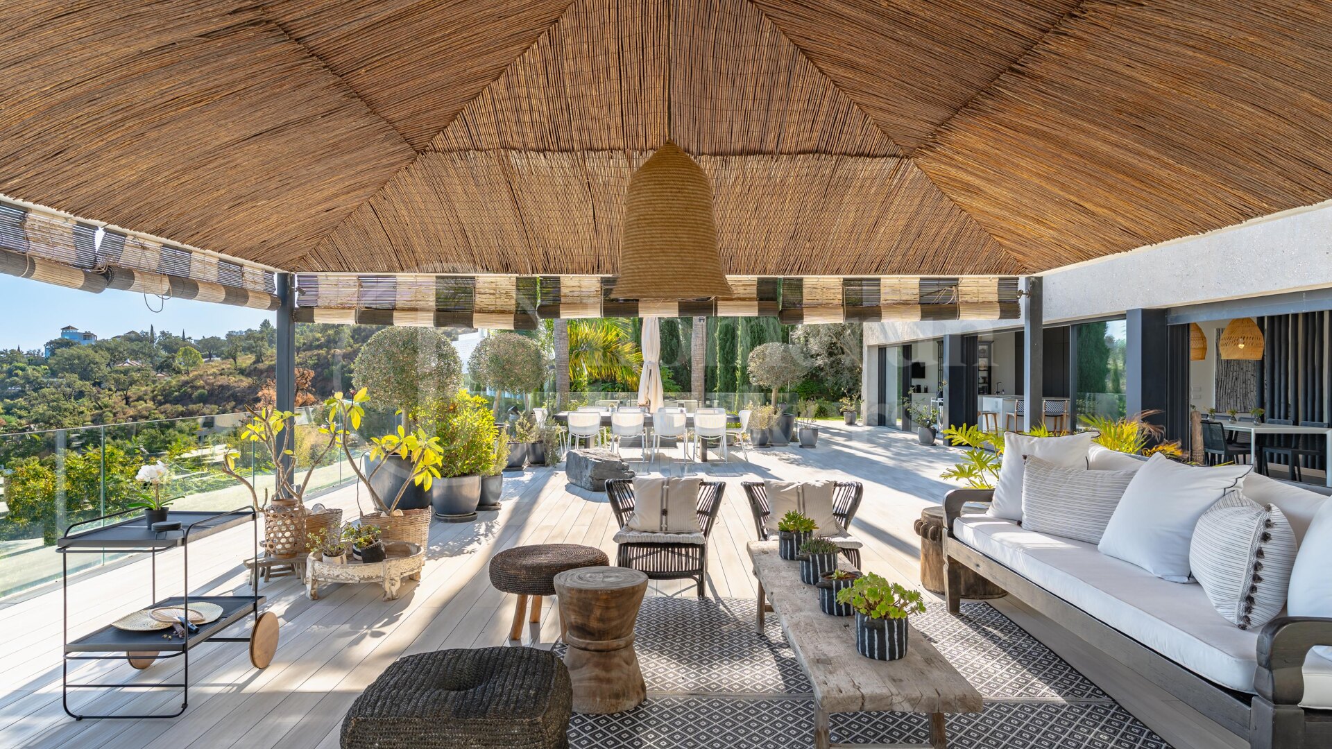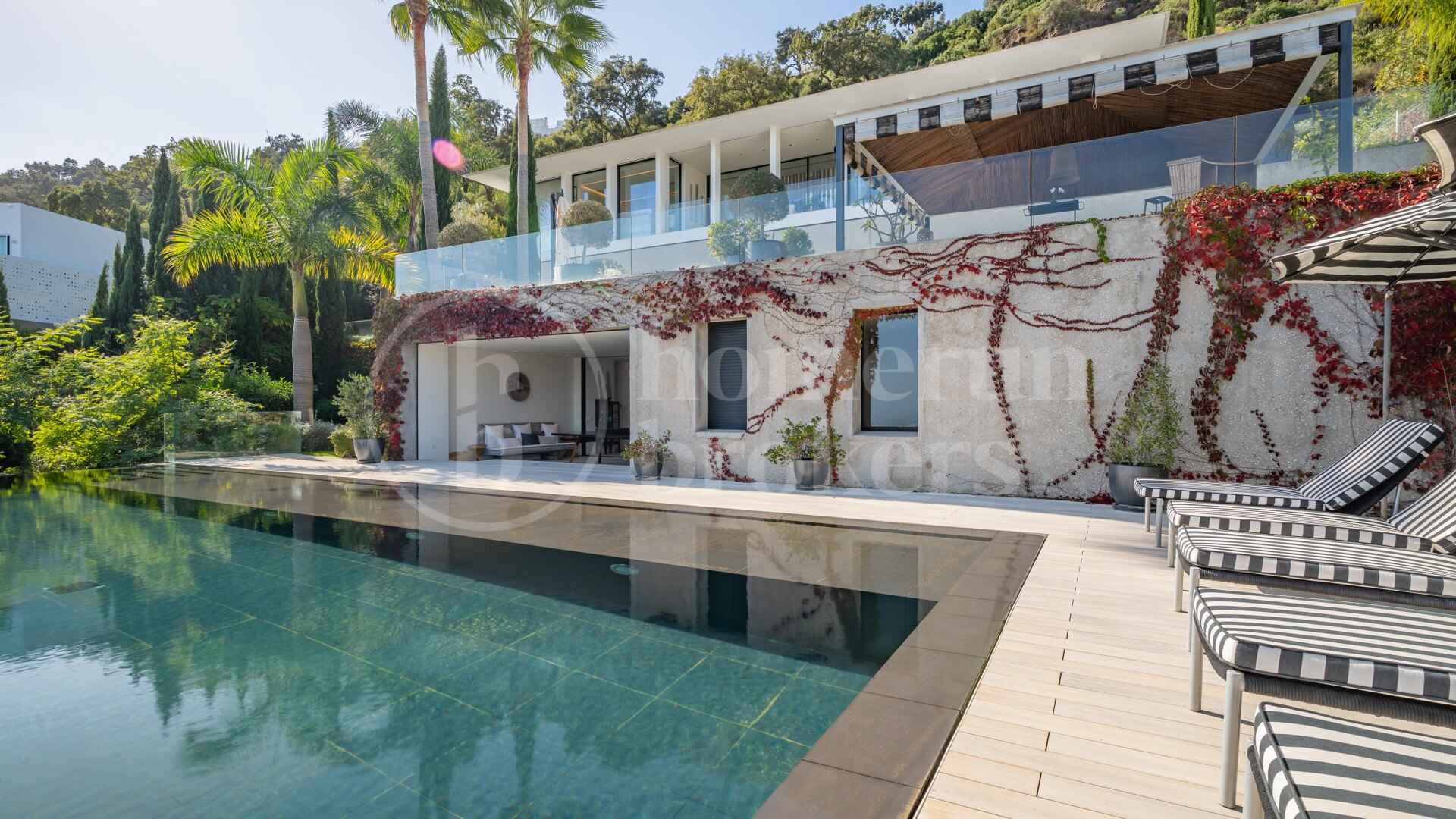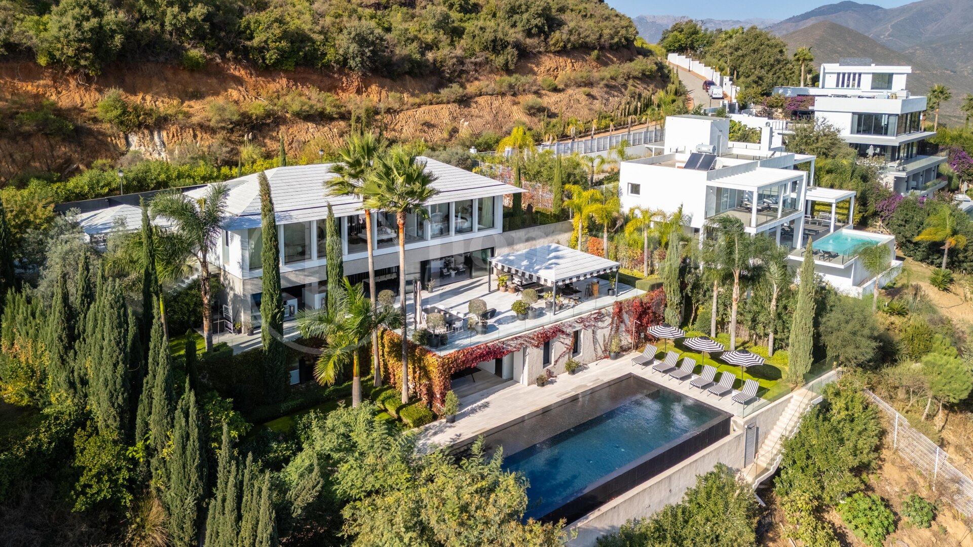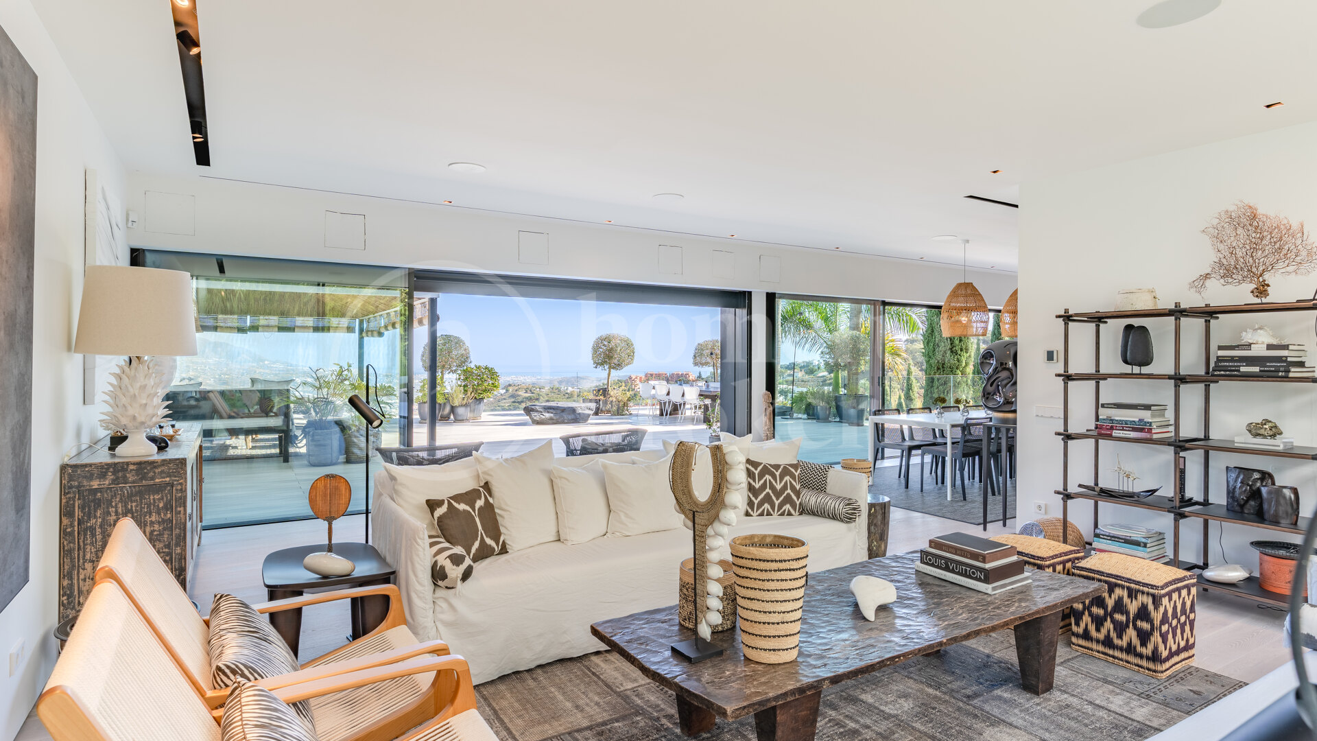 Discover an exceptional villa in the highly sought-after residential enclave of La Mairena, thoughtfully designed by its owners to combine practicality with a deep connection to nature. Every level of the home has been carefully planned to maximise the sweeping sea views, the lush hillsides, and the extraordinary sense of openness that defines this unique setting.