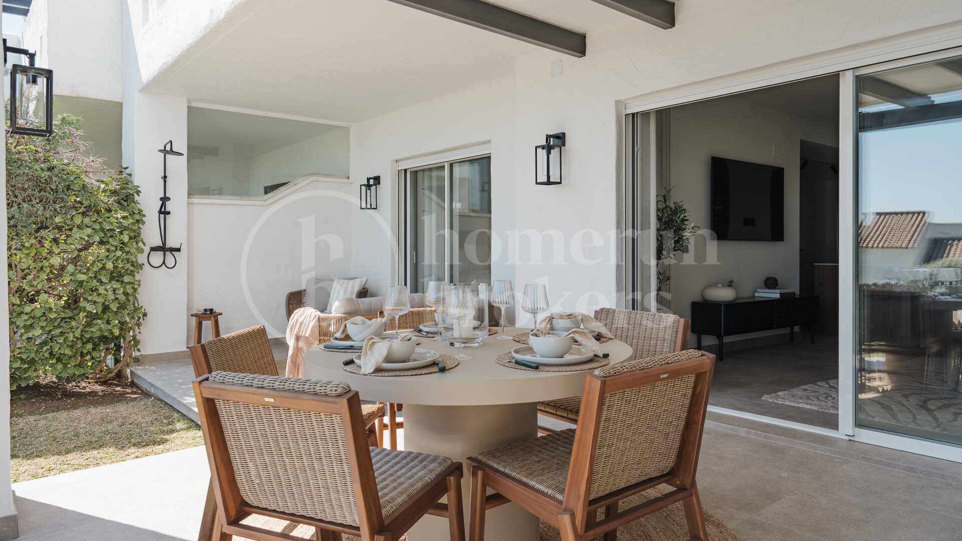 This property offers a combination of modern renovation, private outdoor space, and a convenient location within a secure community, making it an appealing option for buyers seeking a ground floor apartment in Nueva Andalucía.