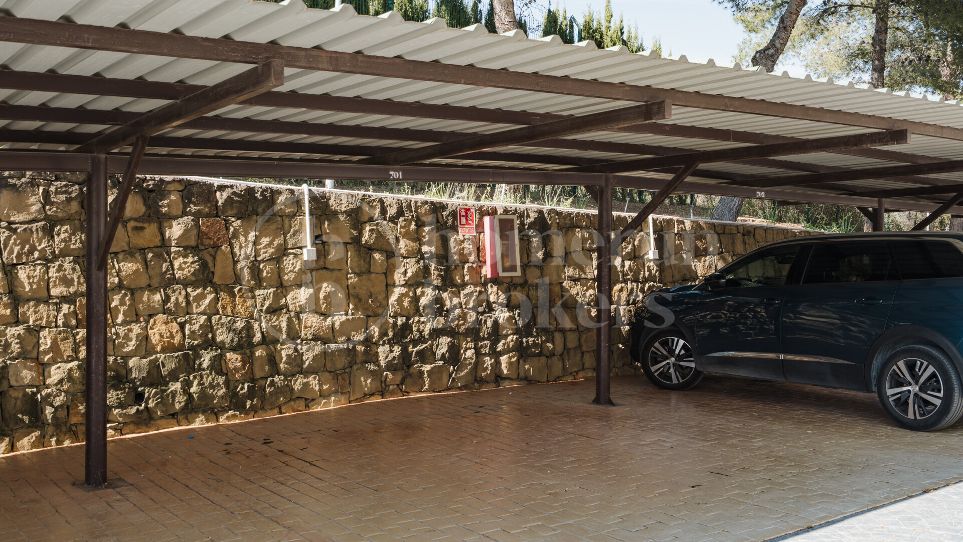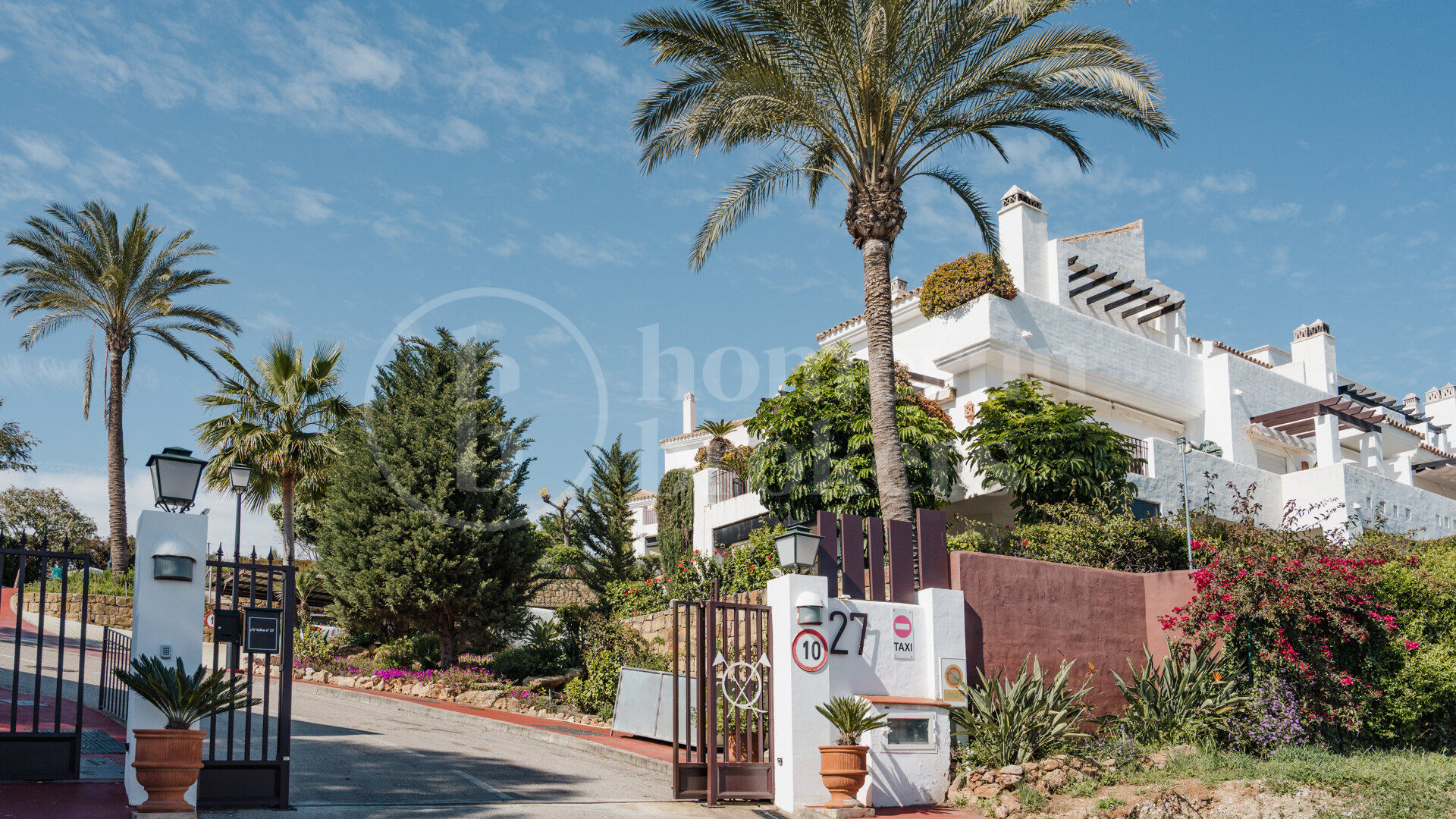 La Quinta Village is a well-maintained gated community known for its peaceful environment and elevated position. Residents benefit from a communal swimming pool with open views towards the coastline, as well as covered parking that includes electric vehicle charging points.