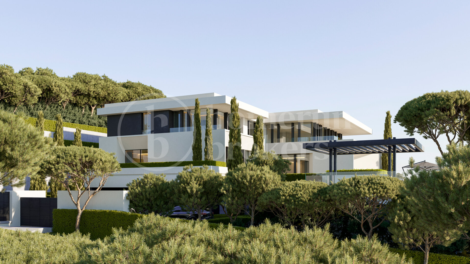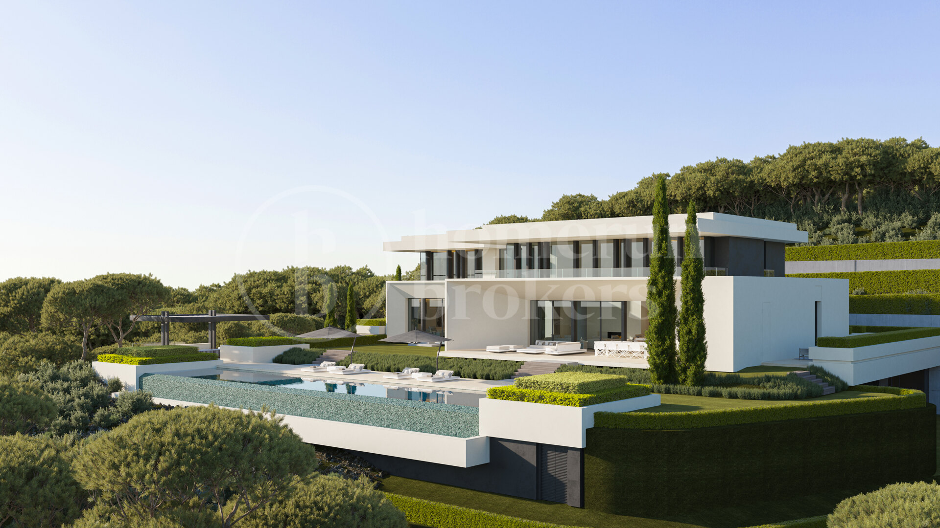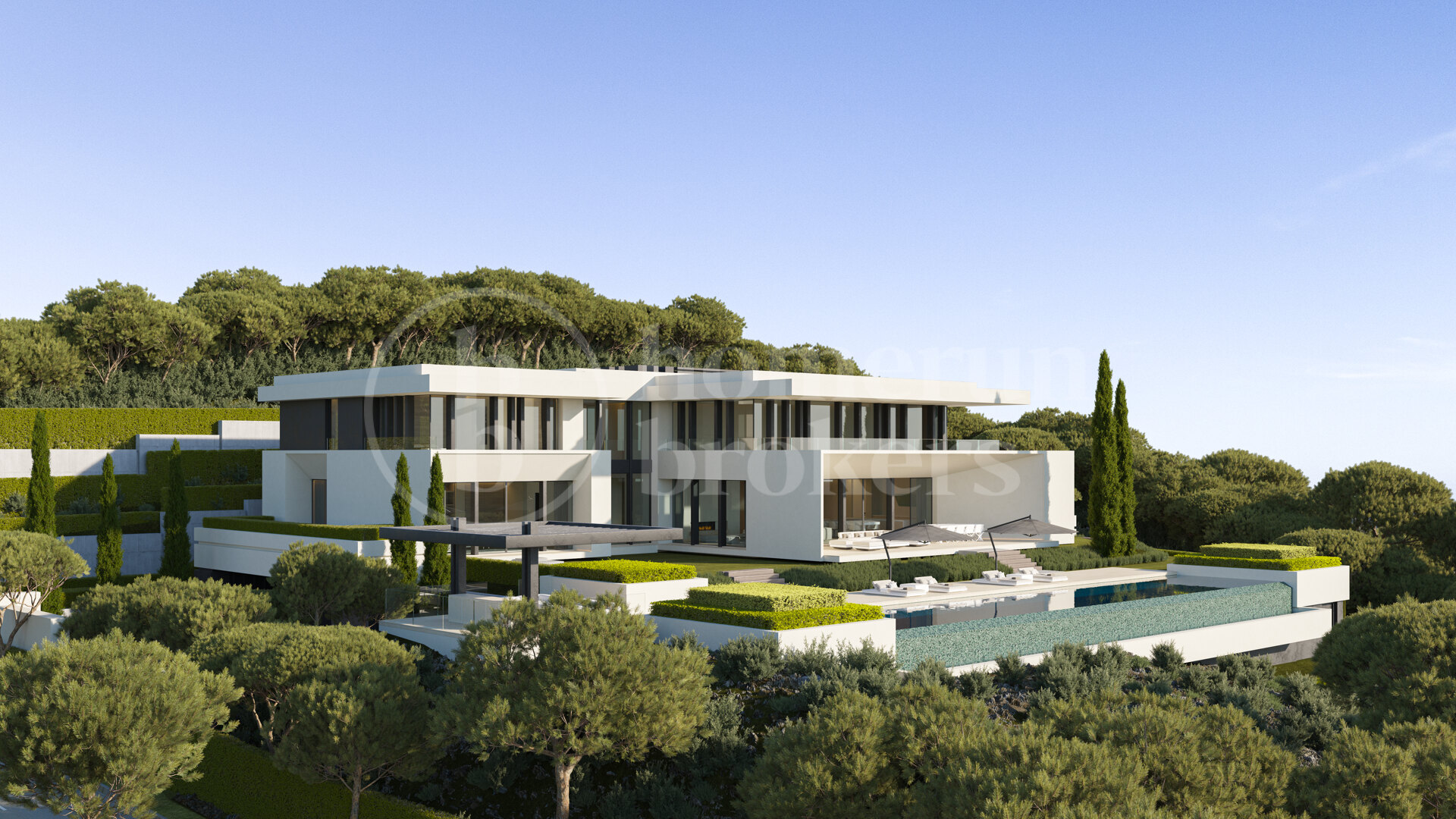 Villa Stonehaven is a newly built contemporary villa for sale in Reserva de Alcuzcuz, offering an exceptional combination of architectural scale, privacy, and advanced construction quality. Located in El Bosque Phase II, this is the largest villa of the development, set on an expansive 3,453 m² plot and delivering over 1,789 m² of built area across three levels. Designed by the acclaimed Tobal Arquitectos, the property integrates modern architecture with its forest surroundings through vast glazed surfaces that open to panoramic views across the greenery, coastline, and distant sea. Interior spaces extend naturally towards generous terraces, shaded porches, and a striking 130 m² swimming pool featuring a 25-metre water-mirror edge.