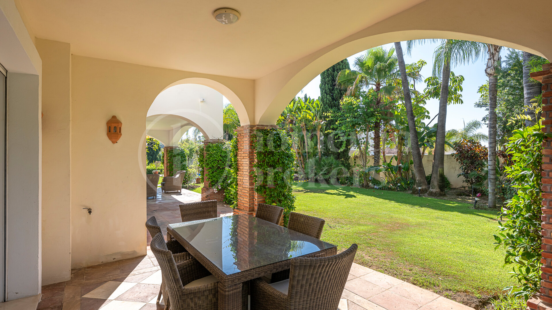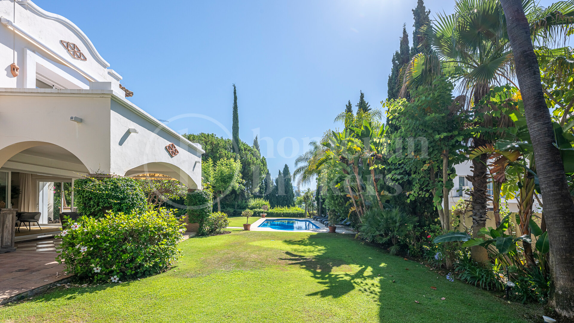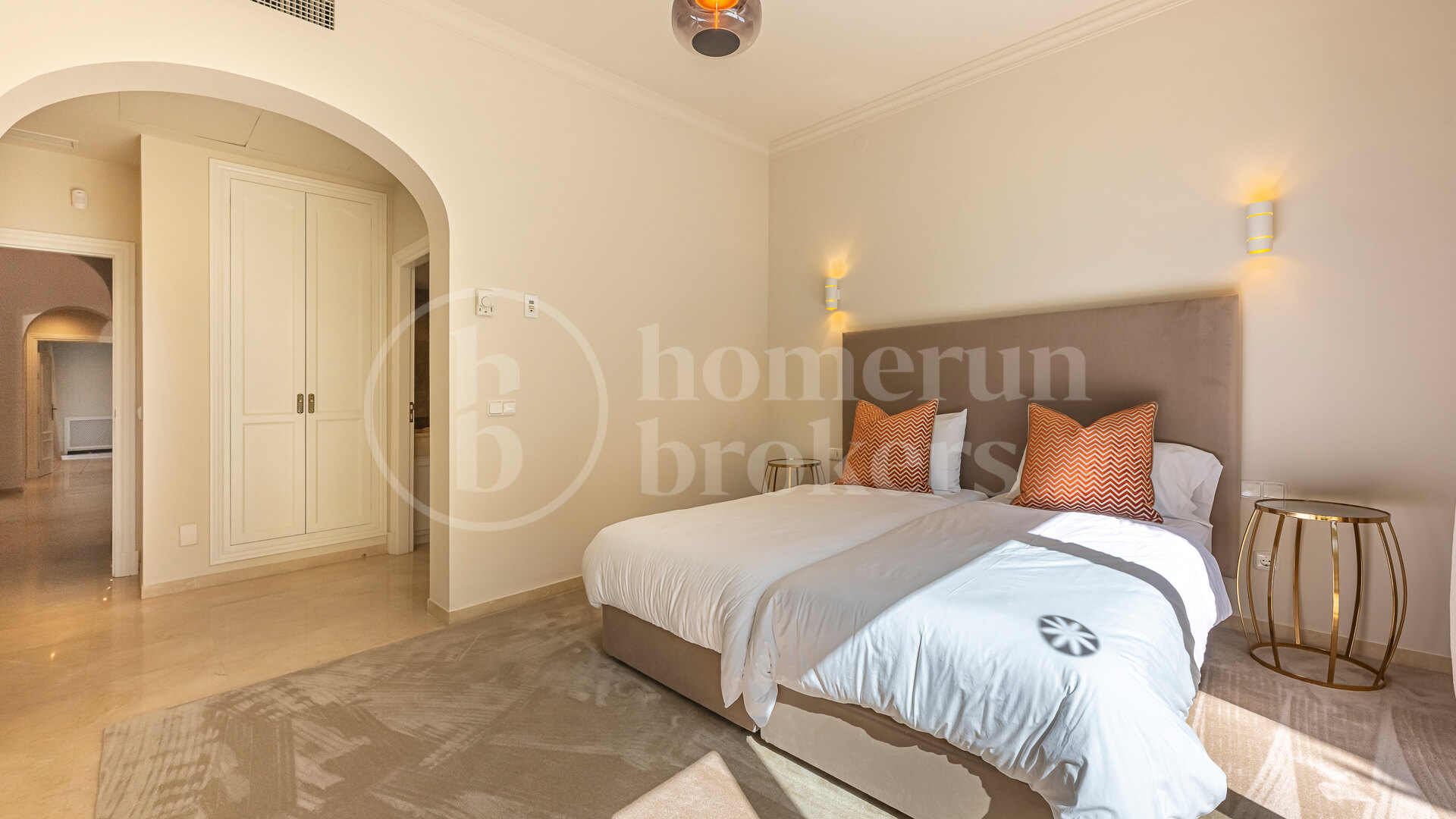 This Andalusian-inspired villa for sale in La Reserva de la Quinta, Benahavís, offers a rare combination of character, privacy and a privileged frontline golf position. Built on a generous plot of more than 1,400 m² and presented in excellent condition, the property provides over 500 m² of total built space, including substantial terraces designed for year-round outdoor living. Its architecture reflects the timeless style that defines this prestigious residential enclave, while the interior layout ensures comfort, functionality and a strong connection to the surrounding landscape.