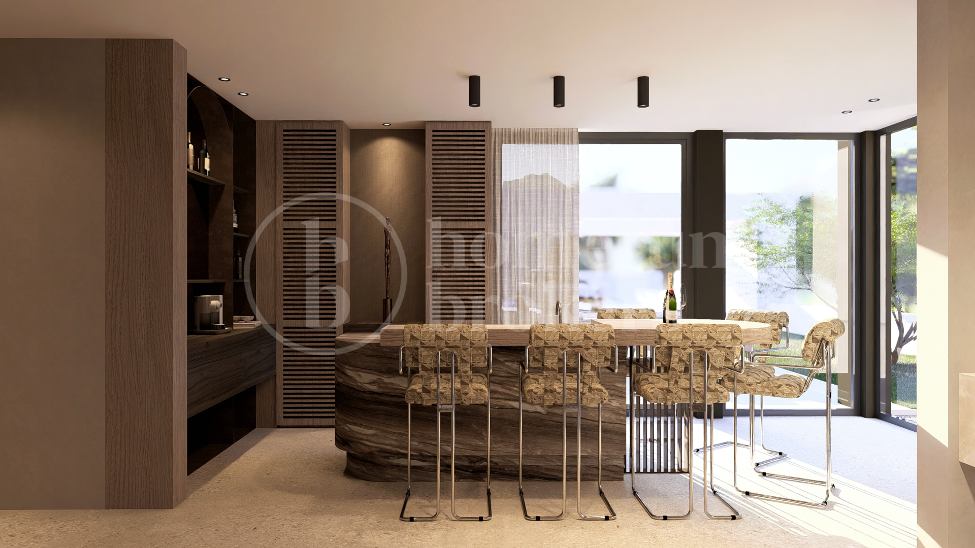 The proposed architectural concept for Villa Elysium has been designed by Marco van Veldhuizen, a Dutch architect known for minimalist and timeless residential architecture. Through Studio Marco van Veldhuizen, he has developed a reputation for creating bespoke villas where architecture responds carefully to the landscape. His designs emphasise natural materials, balanced proportions and a seamless relationship between interior and exterior living spaces. The planned villa reflects these principles, combining contemporary architecture with open living areas and expansive terraces designed to frame the surrounding scenery.