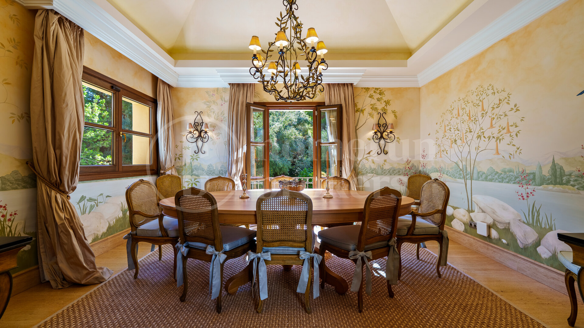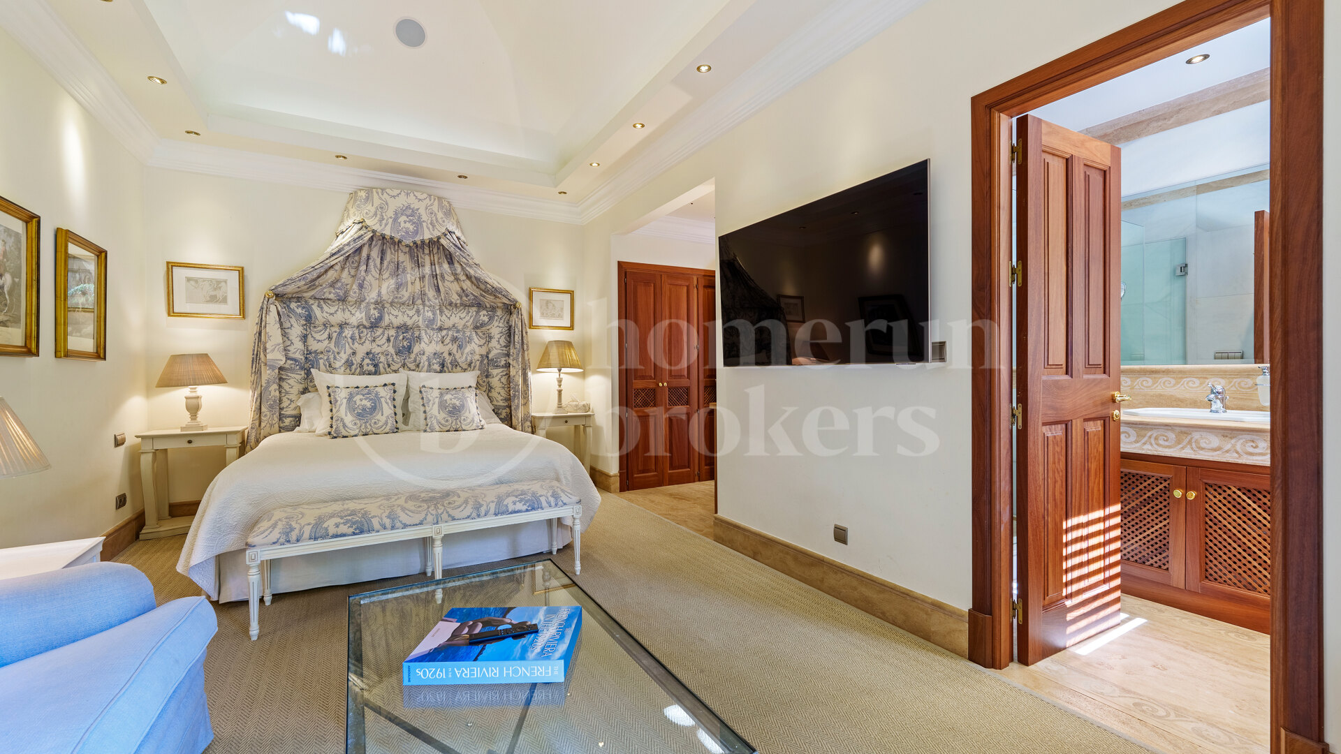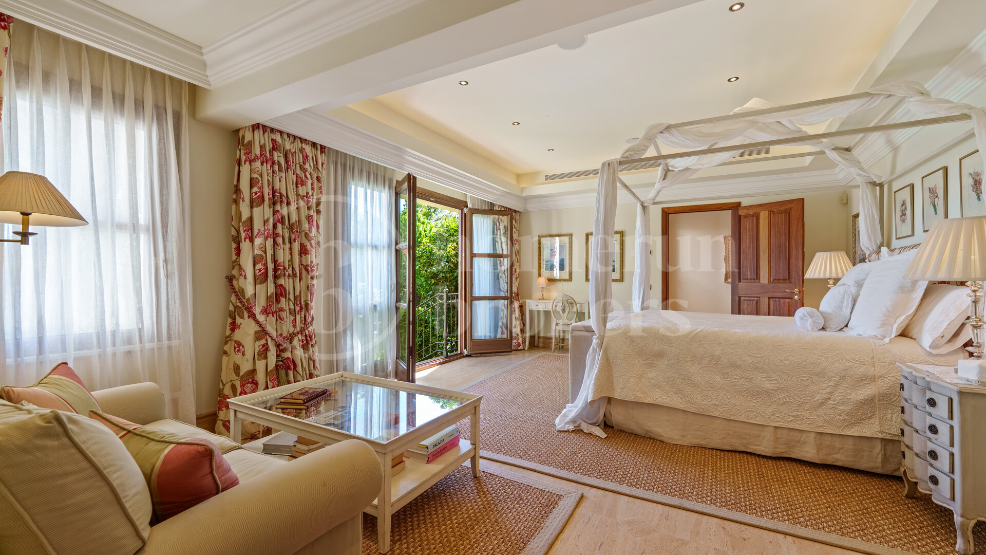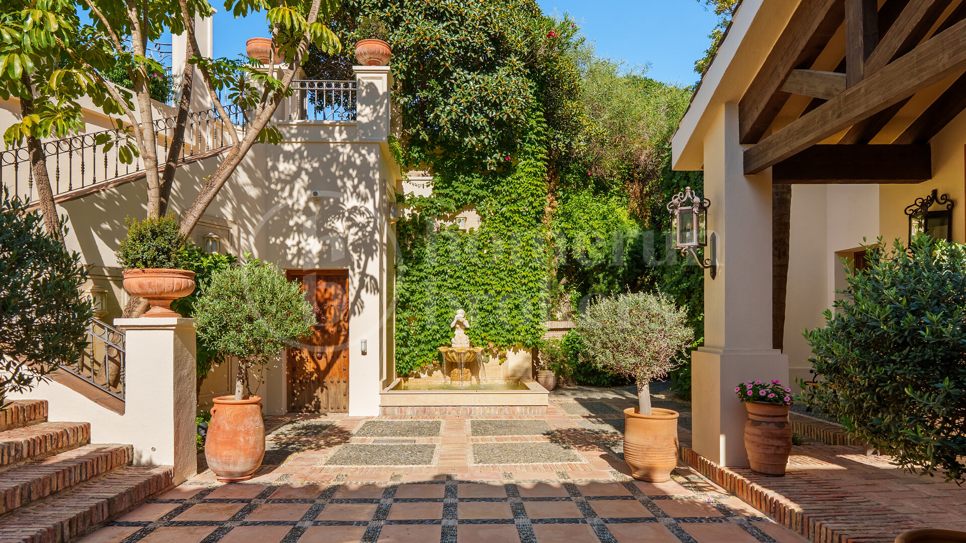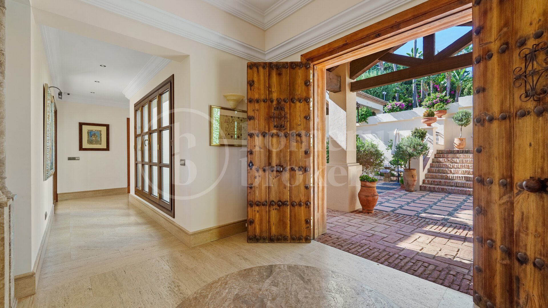 Villa El Bosque is an outstanding six-bedroom villa for sale in the exclusive residential enclave of Las Lomas del Marbella Club, a setting known for its serenity, elegant properties, and proximity to the coast. Surrounded by more than 20,000 square metres of lush protected greenery, the residence enjoys a level of peace and privacy rarely found in such a prime location. The home’s traditional Andalusian architecture and its thoughtful renovation bring together the beauty of classic design with the comfort of modern living.