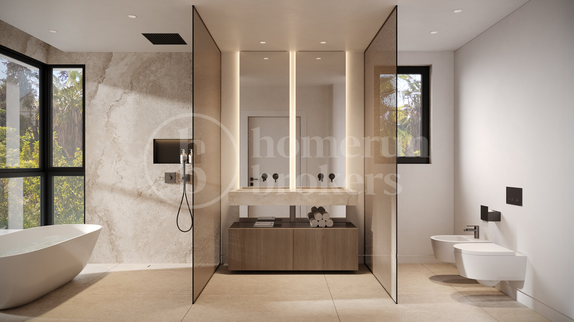 The surrounding neighbourhood is known for its calm atmosphere, low-density development and a collection of elegant villas and contemporary homes set among landscaped streets. The beach is only a short distance away, making spontaneous seaside walks and water sports part of daily life. Residents value the balance between tranquillity and convenience, with local beach clubs, cafés, supermarkets, fitness studios and padel clubs close at hand. Dining options range from relaxed seaside chiringuitos to refined international restaurants, while nearby commercial areas provide boutiques and essential services. Families appreciate the presence of well-regarded international and bilingual schools within easy reach, and road connections link the area efficiently to neighbouring districts, golf courses and business hubs, with public transport options supporting daily commuting. This setting, combined with the villa’s architecture, smart technology and flexible living spaces, makes the property a compelling choice for those seeking a modern home that integrates design, functionality and an appealing coastal lifestyle.