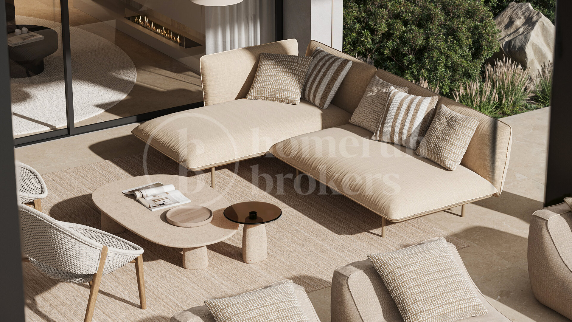 Every detail reflects a commitment to quality and modern living. Large-format porcelain flooring runs through the interiors, with non-slip finishes outdoors for continuity. Villeroy & Boch sanitary ware, Corian sinks, Gessi fixtures, an aerothermal system with underfloor heating, KNX home automation, photovoltaic panels, vehicle charging points and an infinity pool with salt chlorination and heating pre-installation combine to deliver both efficiency and everyday comfort.
