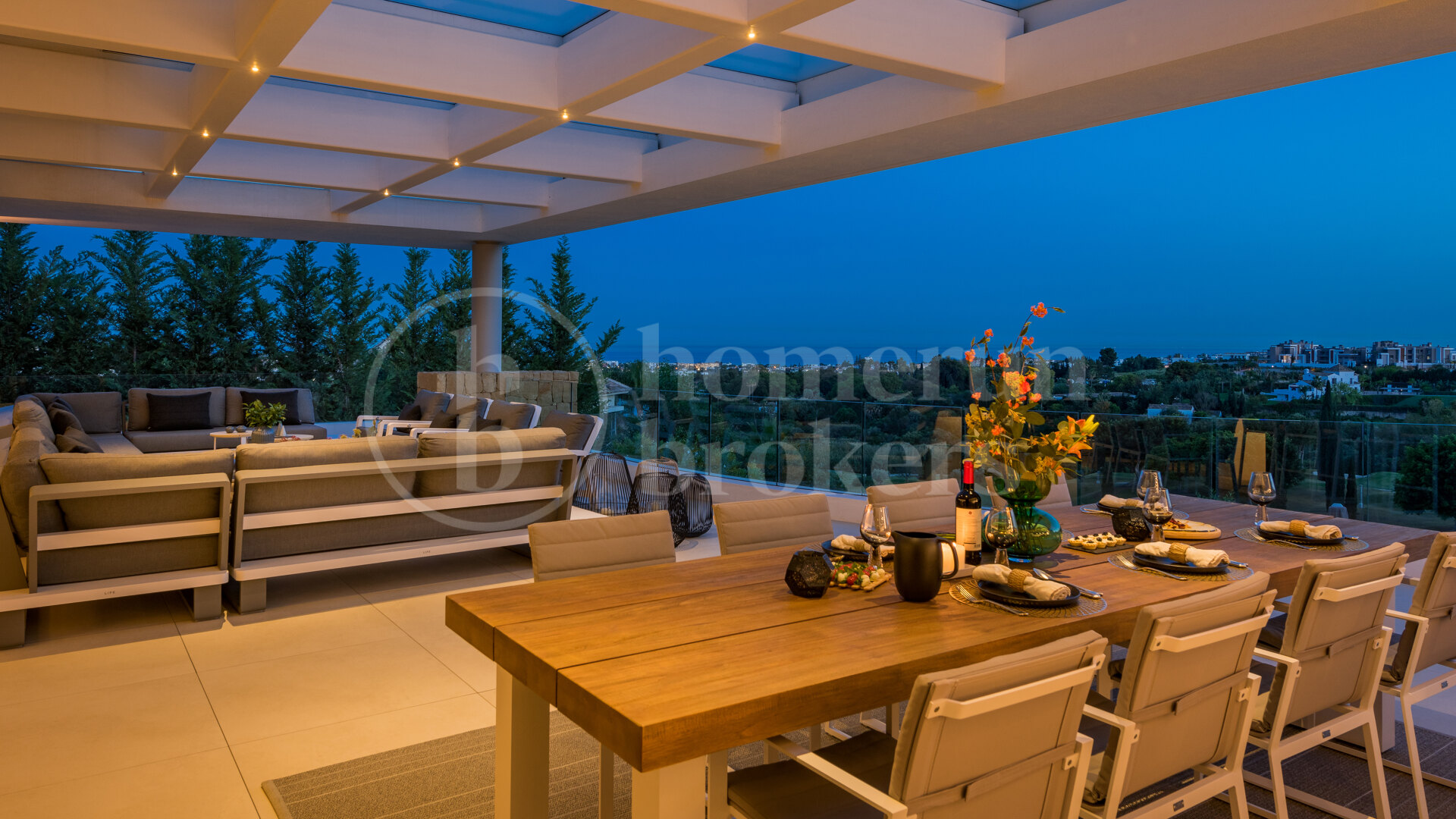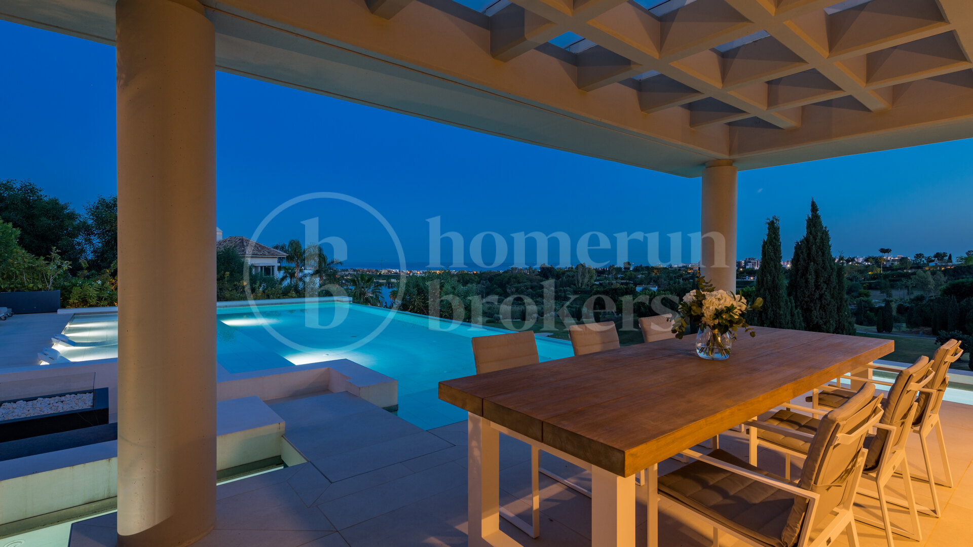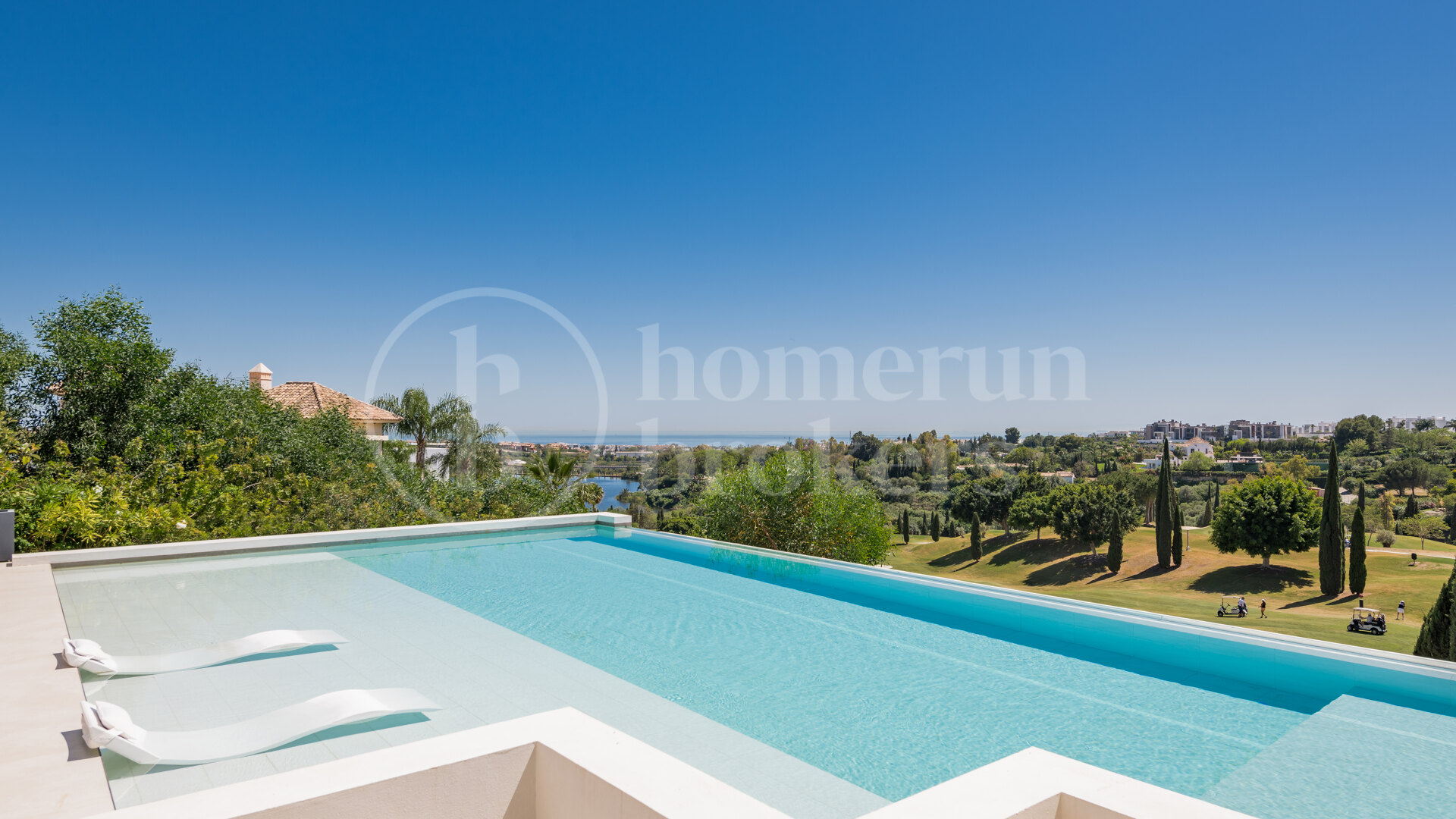 Villa Kelly is a contemporary architectural masterpiece that defines elegant living in Los Flamingos Golf Resort, one of the Costa del Sol’s most prestigious gated communities. This five-bedroom, fully furnished villa for sale combines modern design with the serenity of golfside living, offering panoramic views of the Mediterranean Sea and the lush fairways of Los Flamingos. With its refined craftsmanship, state-of-the-art amenities, and seamless connection between interior and exterior spaces, Villa Kelly delivers an unparalleled standard of comfort and sophistication.