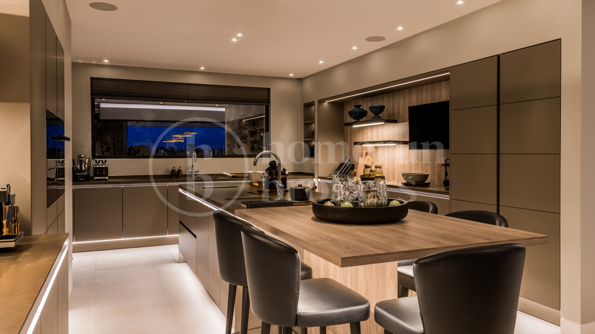 The exterior of Villa Kelly has been designed to reflect calm sophistication. Its landscaped gardens, enhanced by palm trees and ambient lighting, surround the infinity pool, while a Siematic outdoor kitchen and BBQ area create the perfect setting for alfresco dining. For cooler evenings, a second firepit area adds warmth and atmosphere.