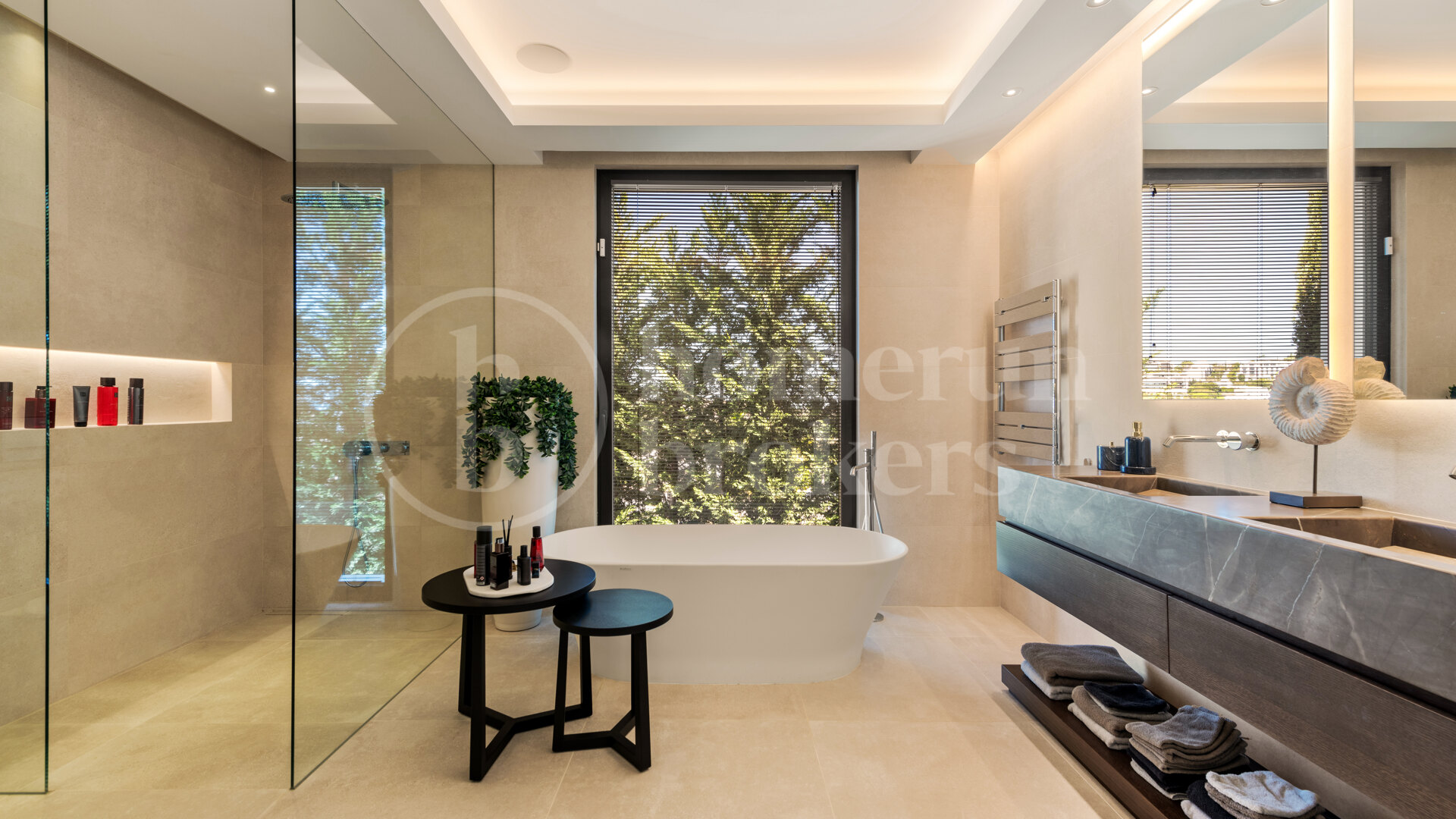 This residence features a full smart-home automation system, underfloor heating, and air conditioning throughout, ensuring year-round comfort. Exceptional carpentry, natural stone finishes, and custom detailing reflect superior craftsmanship in every corner.