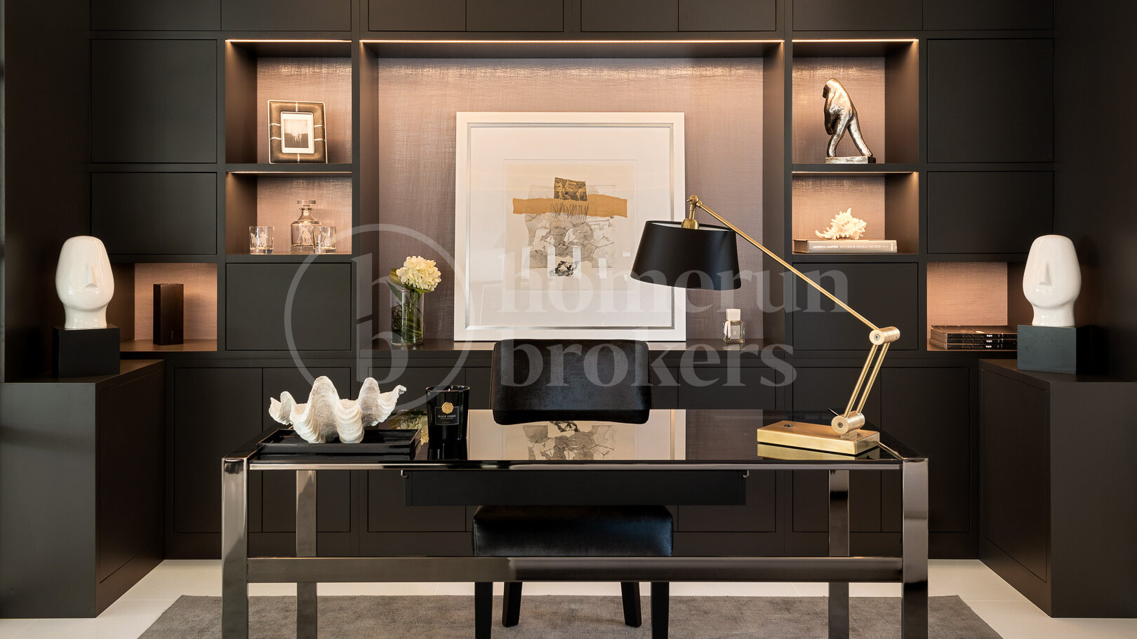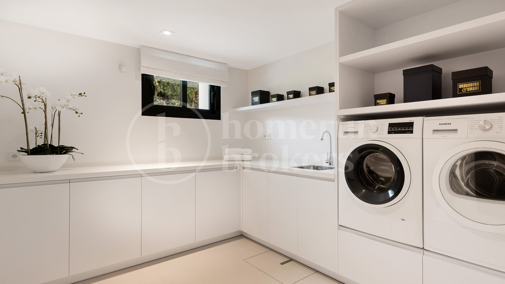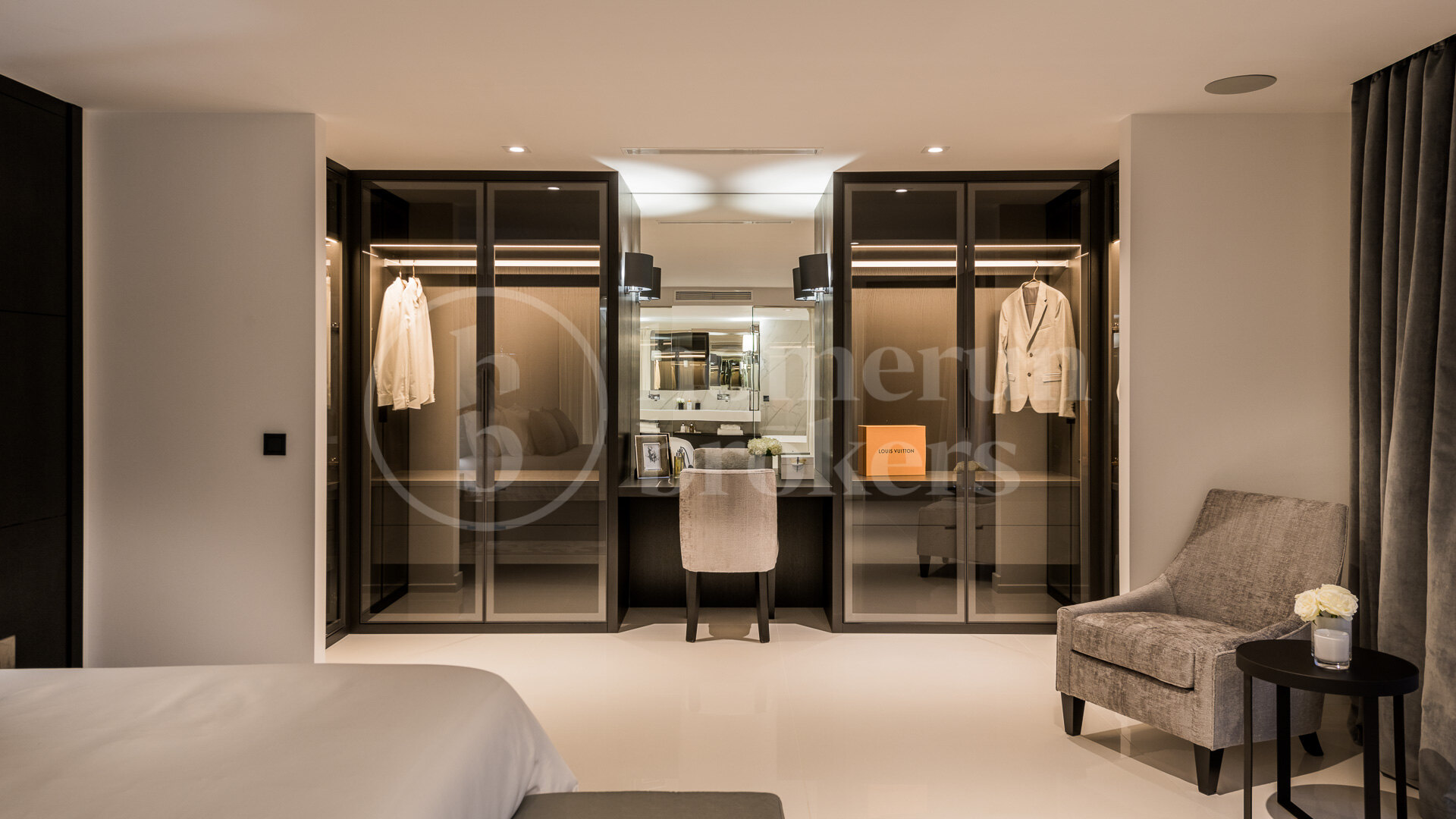 On the lower level, additional accommodation and leisure areas provide flexibility for family living and visiting guests. Two more bedrooms are located on this floor, along with a laundry room, a wine cellar, a fully equipped gym and a private home cinema. These spaces allow the villa to function comfortably as both a permanent residence and a property designed for entertaining.