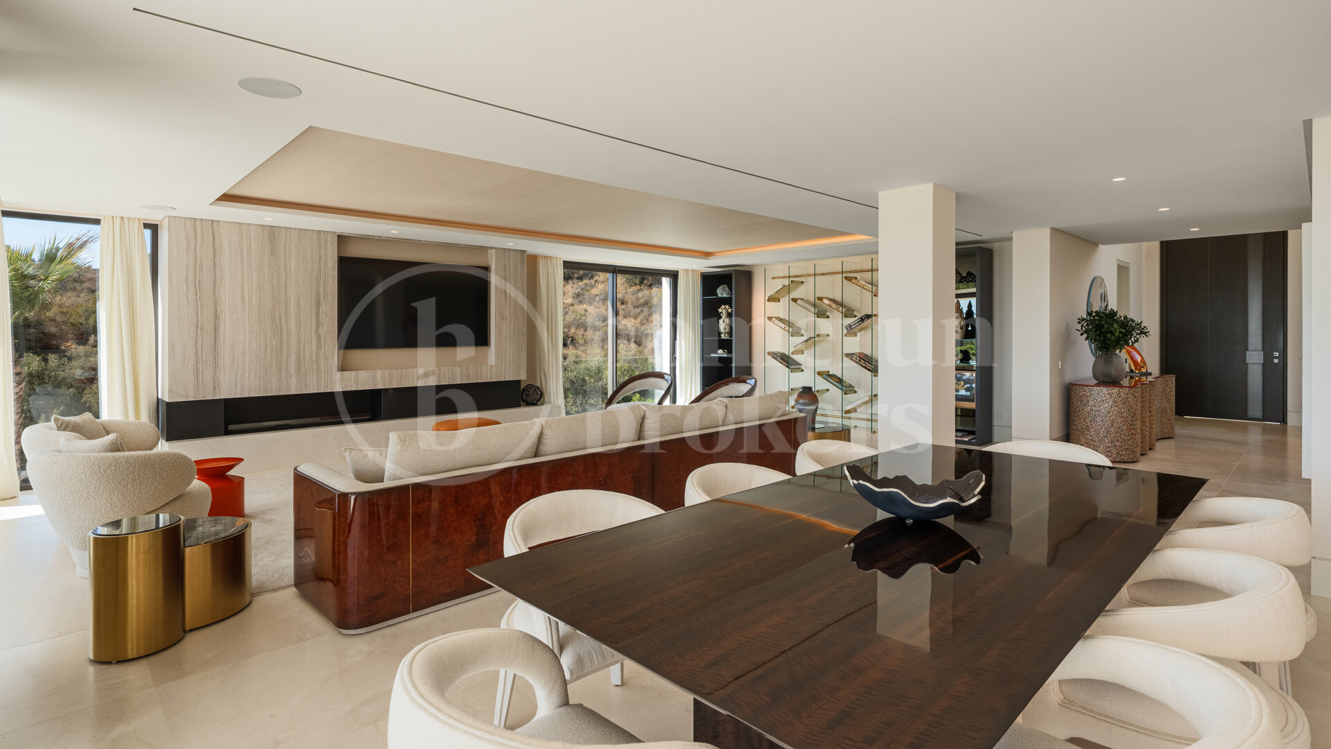 Villa Horizon is a newly built luxury villa for sale in the prestigious Marbella Hill Club, a gated hillside community known for its privacy, elevated setting, and sweeping coastal views. The property has been conceived as a contemporary home where architectural elegance meets everyday comfort, with interiors created exclusively for this villa to ensure a distinctive living experience. A calm, neutral colour palette runs throughout the house, enriched by natural materials such as wood and marble that introduce warmth and refined texture. From the moment you enter, the sense of quality is immediate, with carefully selected finishes and bespoke details shaping an environment that feels both sophisticated and welcoming.