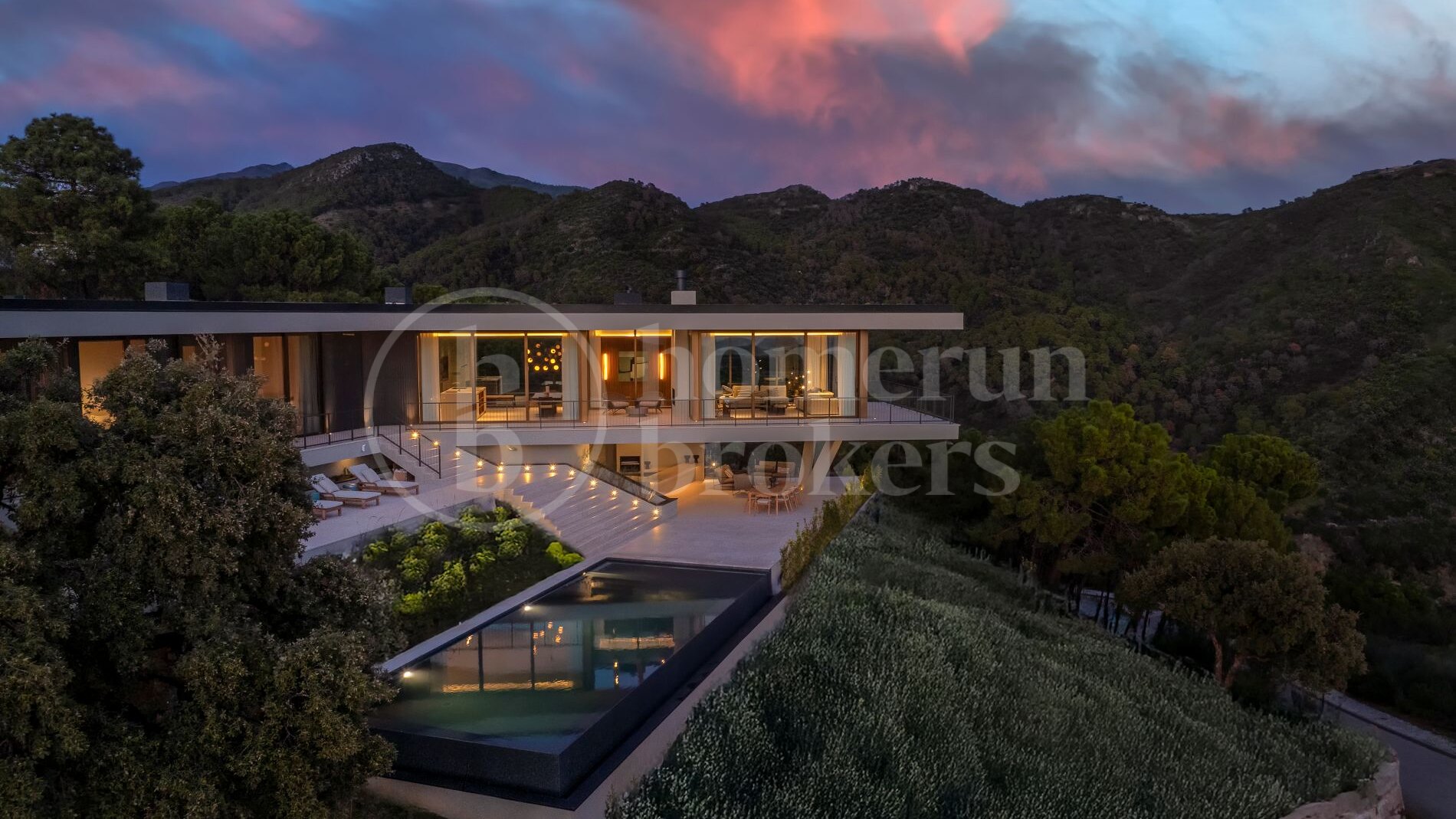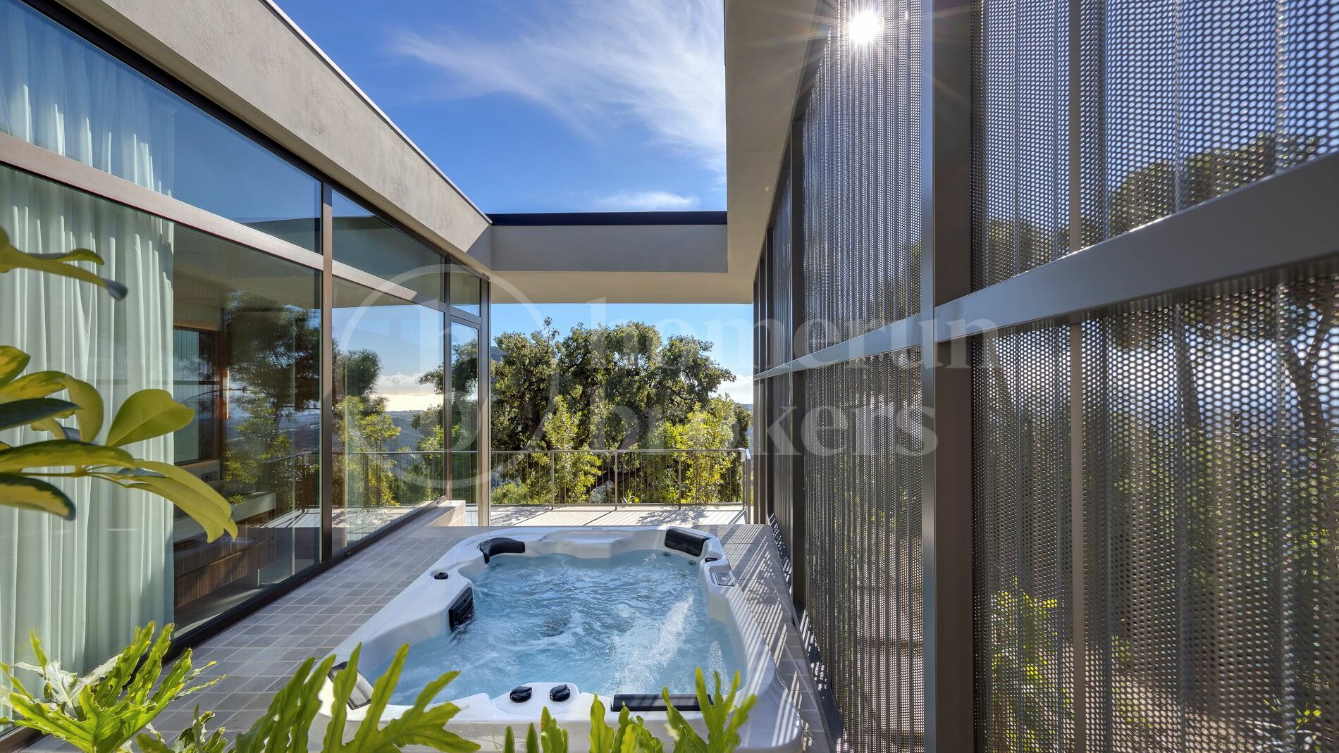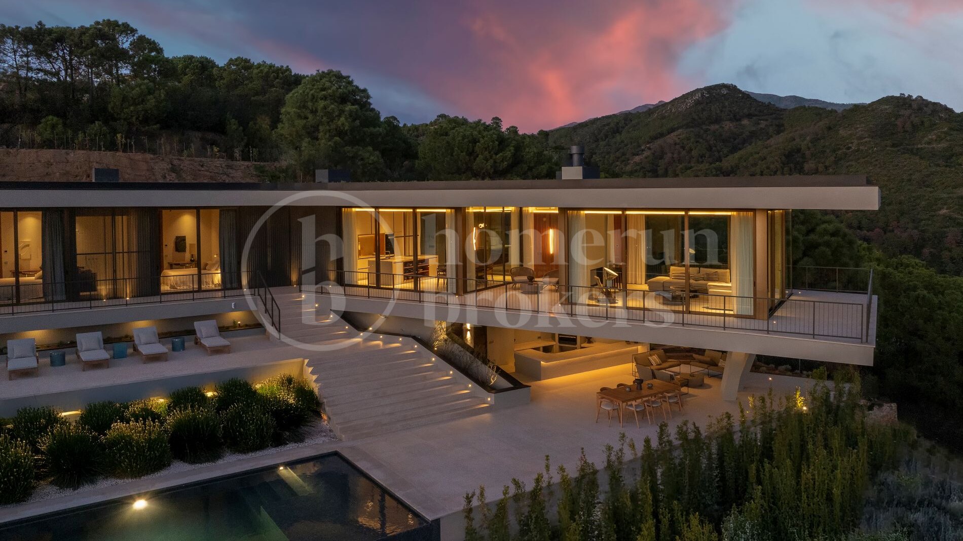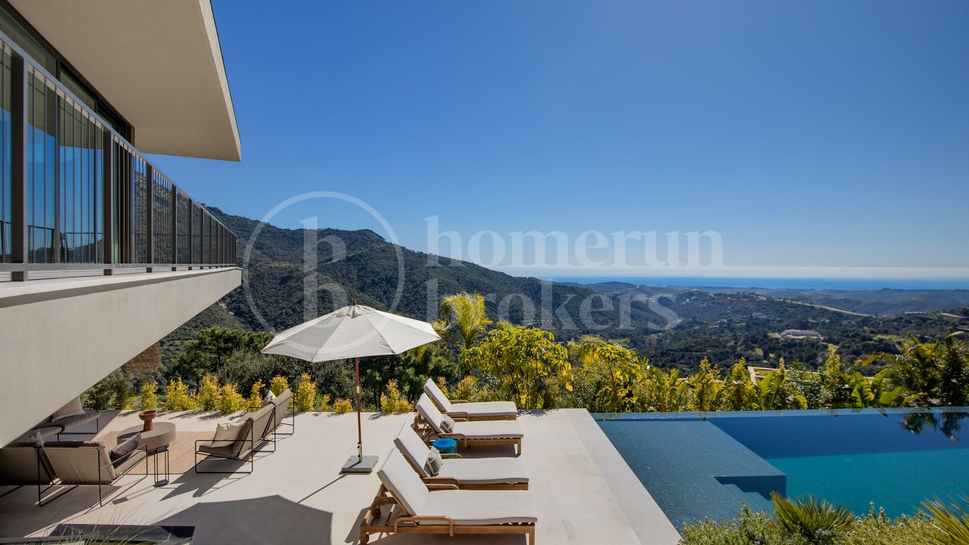 Casa Miyabi is a contemporary luxury villa for sale in Monte Mayor offering 5 bedrooms and 5 bathrooms across a thoughtfully designed single-level layout, with separate guest accommodation, an infinity pool, expansive terraces and panoramic views of the sea, mountains and the surrounding valley landscape. Conceived as a bespoke architectural residence, the property combines cutting-edge design with environmental sensitivity, creating a home where modern living and natural surroundings are carefully integrated.