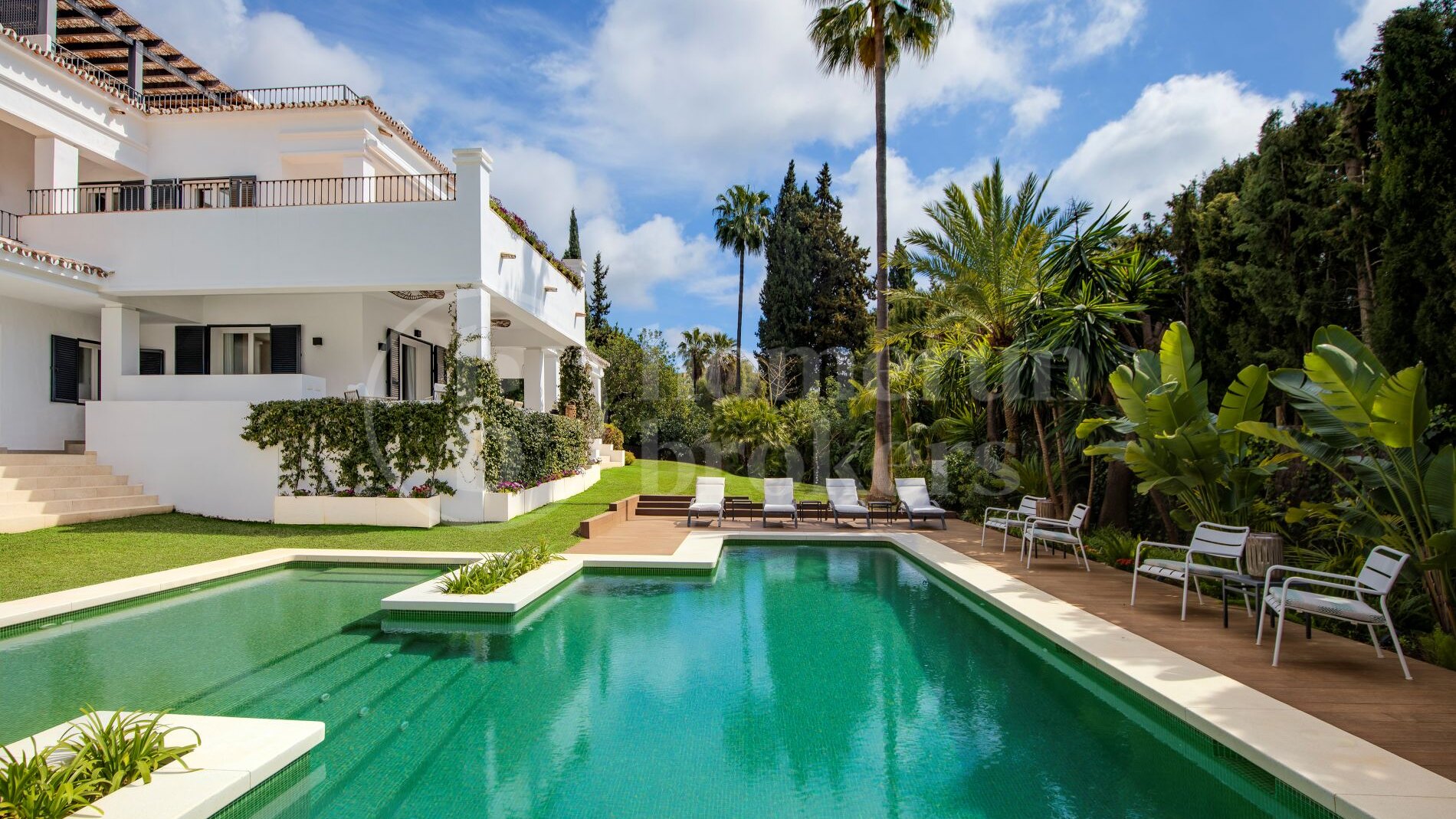 This villa for sale in Marbella’s Golden Mile, between Sierra Blanca and Nagüeles, offers five en-suite bedrooms, a guest toilet, set on a plot of over 1,600 m², featuring spacious interiors, landscaped gardens, multiple terraces, and a rooftop solarium with open sea and mountain views. The property combines traditional Andalusian architecture with modern updates, creating a well-balanced home in one of the most established and sought-after residential areas.