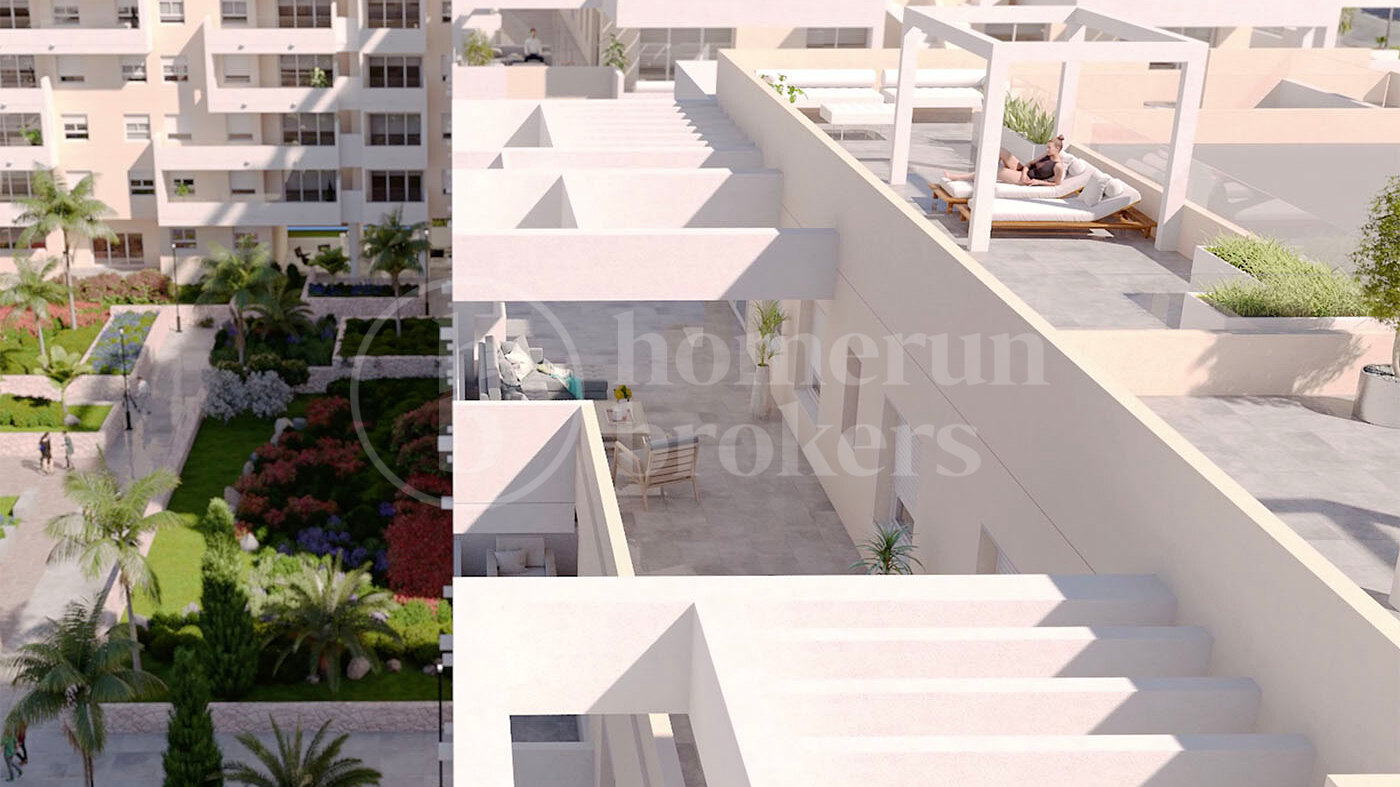 With 2 bedrooms and 2 bathrooms and a desirable northeast orientation, the property offers a bright and well-balanced layout across approximately [insert built m²]. The interior living space is complemented by a pleasant private terrace, ideal for enjoying the morning sun and open views toward the surrounding urban landscape and mountains. Positioned on an upper floor within a recently completed gated complex, the apartment benefits from natural light, energy-efficient construction, and modern finishes throughout.