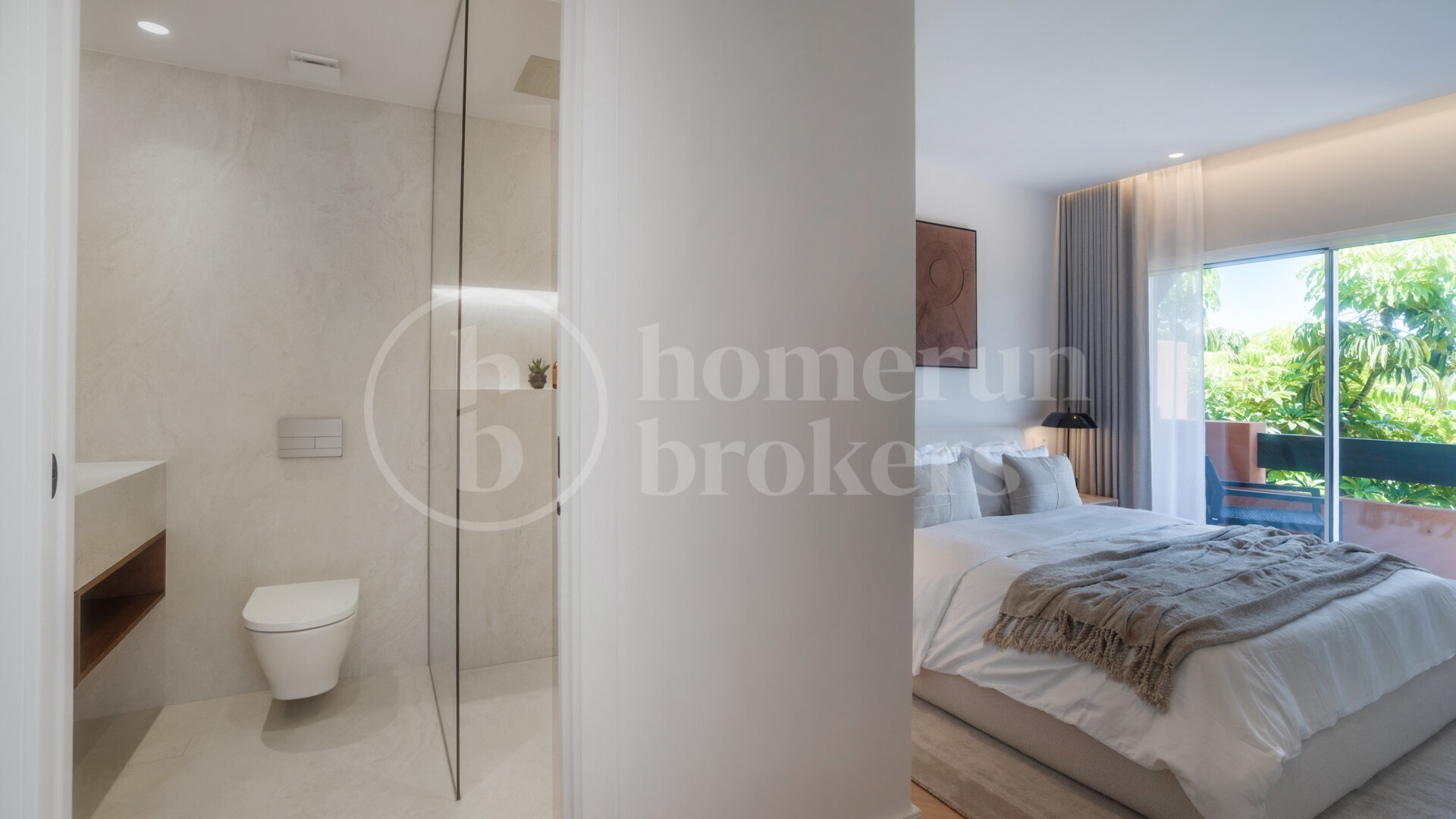 The property’s position within Nueva Andalucía means that everyday amenities are easily accessible. Well-known commercial areas such as Centro Plaza, El Corte Inglés in Puerto Banús and the selection of restaurants around Aloha Gardens—including Mosh Fun Kitchen, Tuk Tuk and Magna Café—are all a short drive away. Sports enthusiasts appreciate the proximity to top golf courses such as Las Brisas, Aloha Golf Club and Los Naranjos, as well as tennis facilities at the nearby Manolo Santana Racquet Club. The closest beaches can be reached in approximately eight minutes by car, providing a convenient escape for days by the sea.
