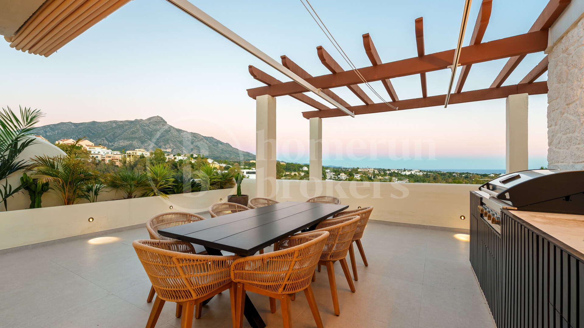This Penthouse stands out for its elevated views, generous outdoor space, and refined renovation, offering a turnkey penthouse lifestyle in one of Nueva Andalucía’s most desirable gated communities.