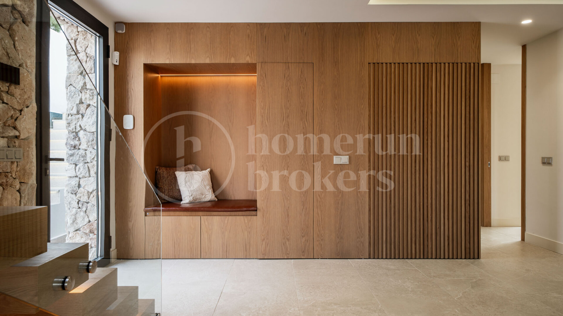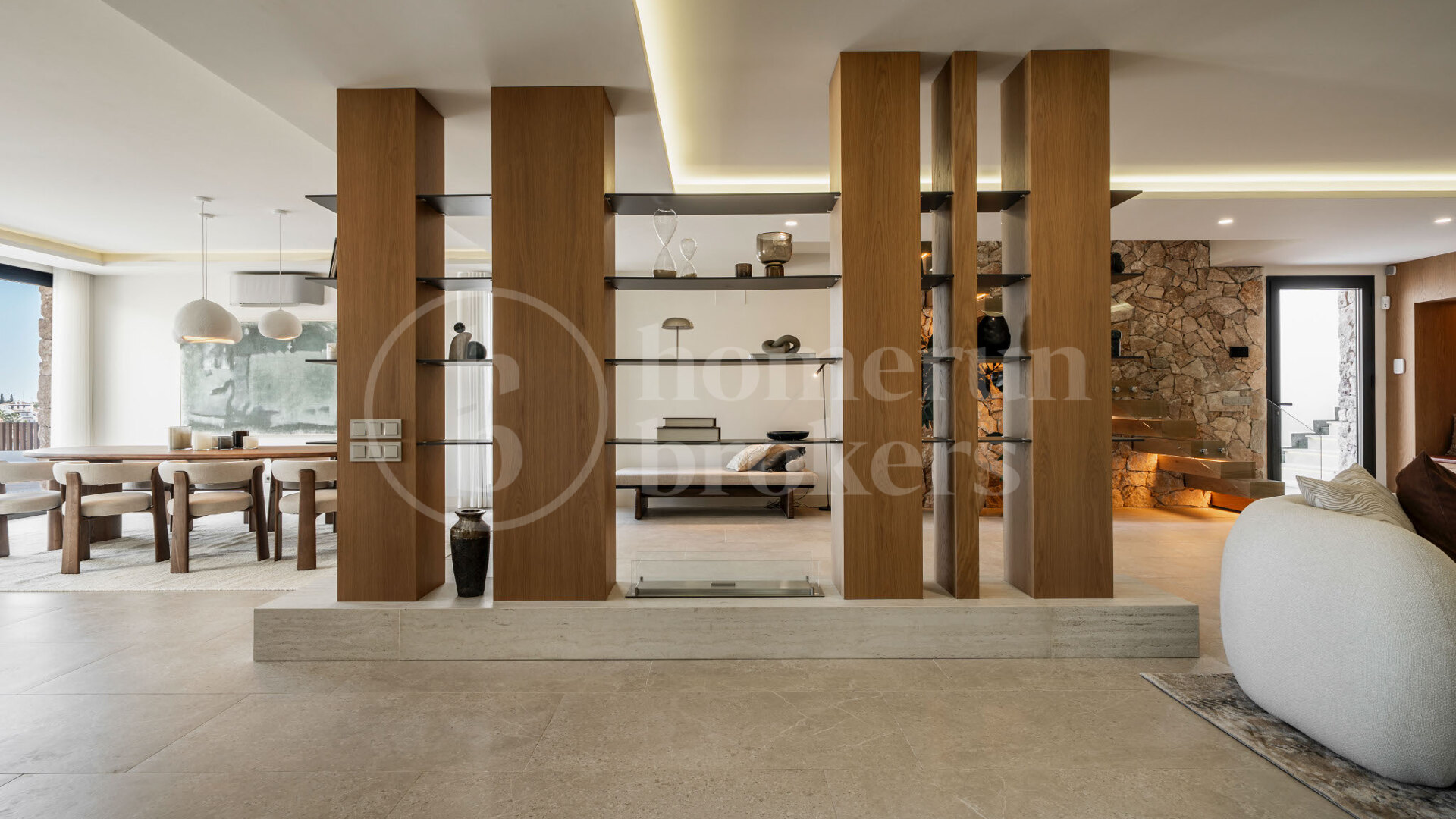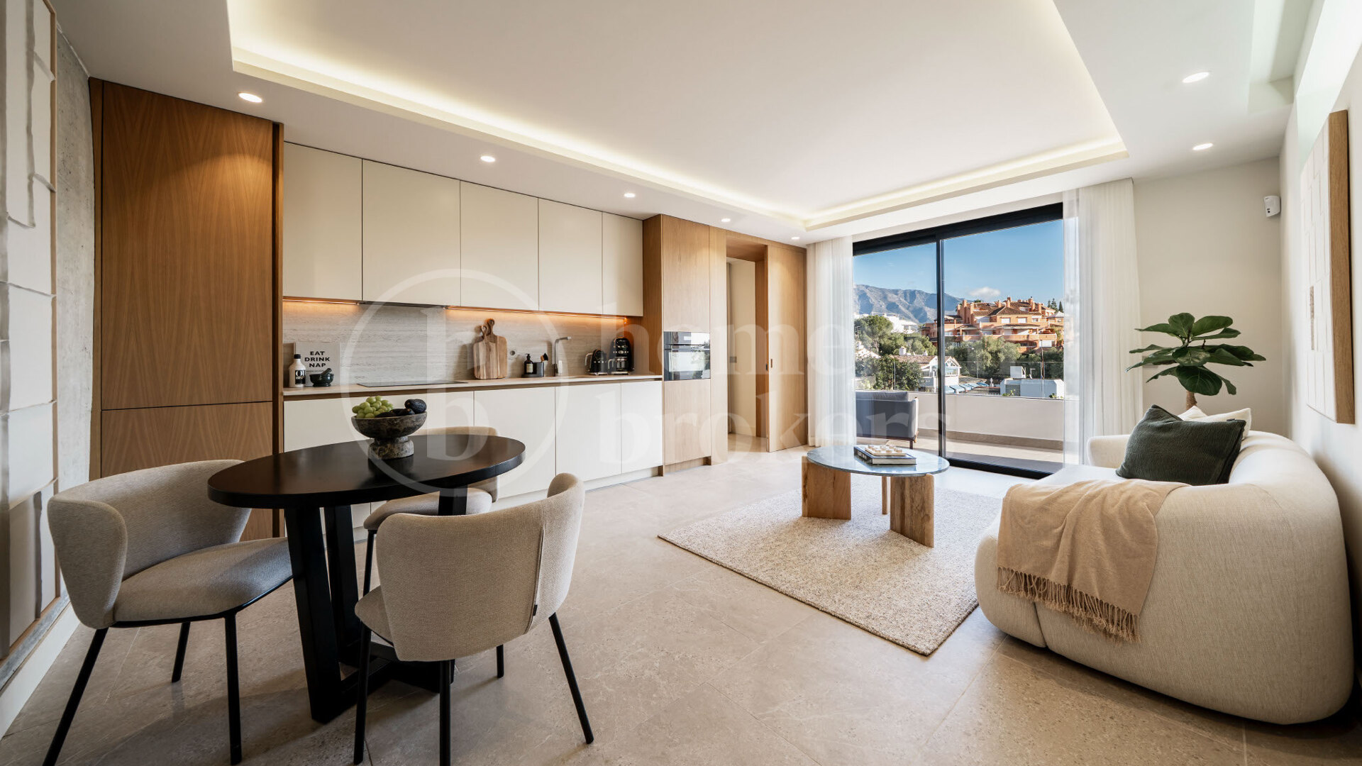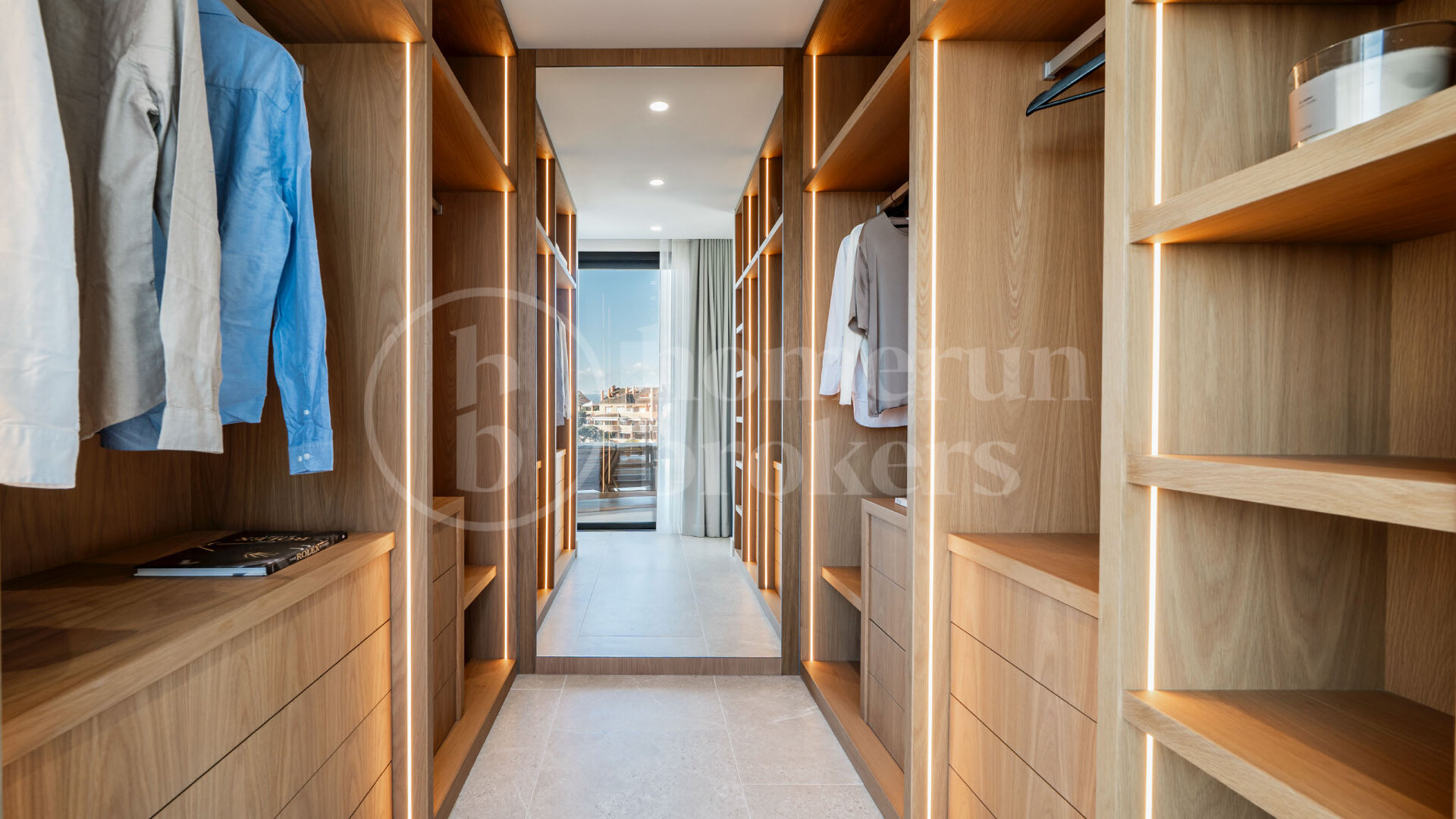 A rooftop terrace adds to the appeal, featuring a jacuzzi and panoramic 360° views. Whether used for sunrise yoga or sunset cocktails, this elevated space captures the very best of outdoor Mediterranean living. Interiors showcase high-quality finishes including porcelain flooring, custom wood cabinetry, and natural stone elements, providing a warm yet refined design language.