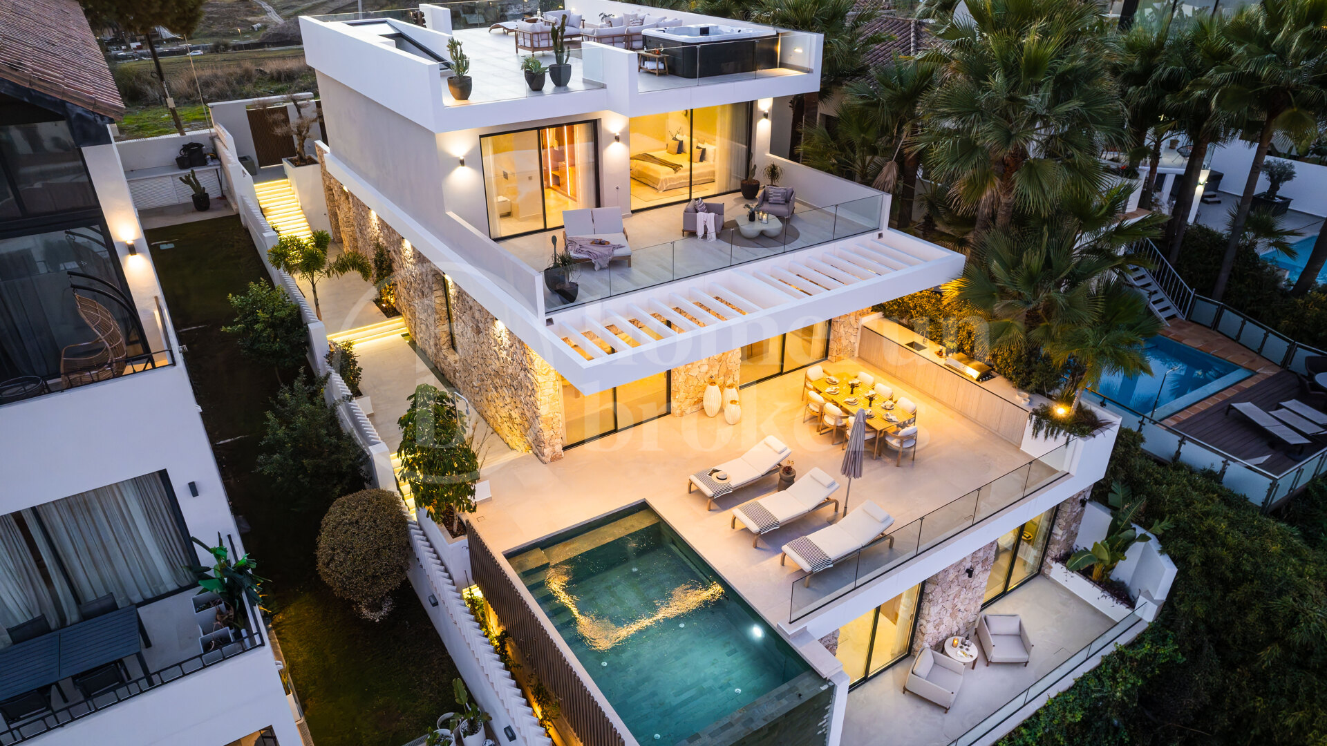 La Campana and Puerto Banús are both within walking distance, offering a vibrant mix of restaurants, shops, and services. Prestigious educational institutions such as Laude San Pedro International College and The International School Estepona are easily accessible, as are the nearby beaches and high-end shopping areas of Nueva Andalucía and San Pedro. For wellness and recreation, residents can access Real Club Padel Marbella, Los Naranjoa Golf & Country Club, and the landscaped trails of Parque de los Tres Jardines.