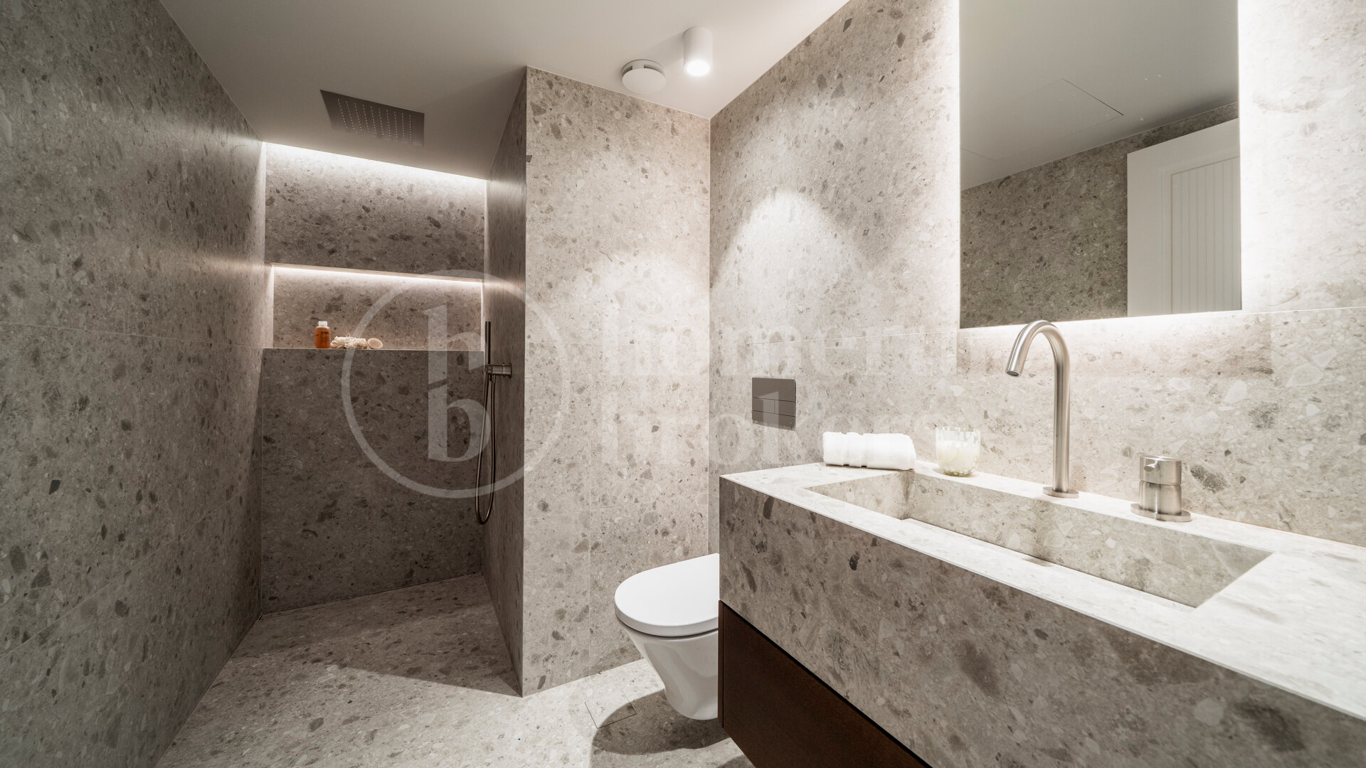Modern technology has been integrated throughout the villa to support an effortless lifestyle. A Lutron home automation system allows intuitive control of lighting and ambiance, while water-based underfloor heating ensures consistent comfort across all seasons. These features underline the home’s focus on quality, efficiency, and contemporary living standards.