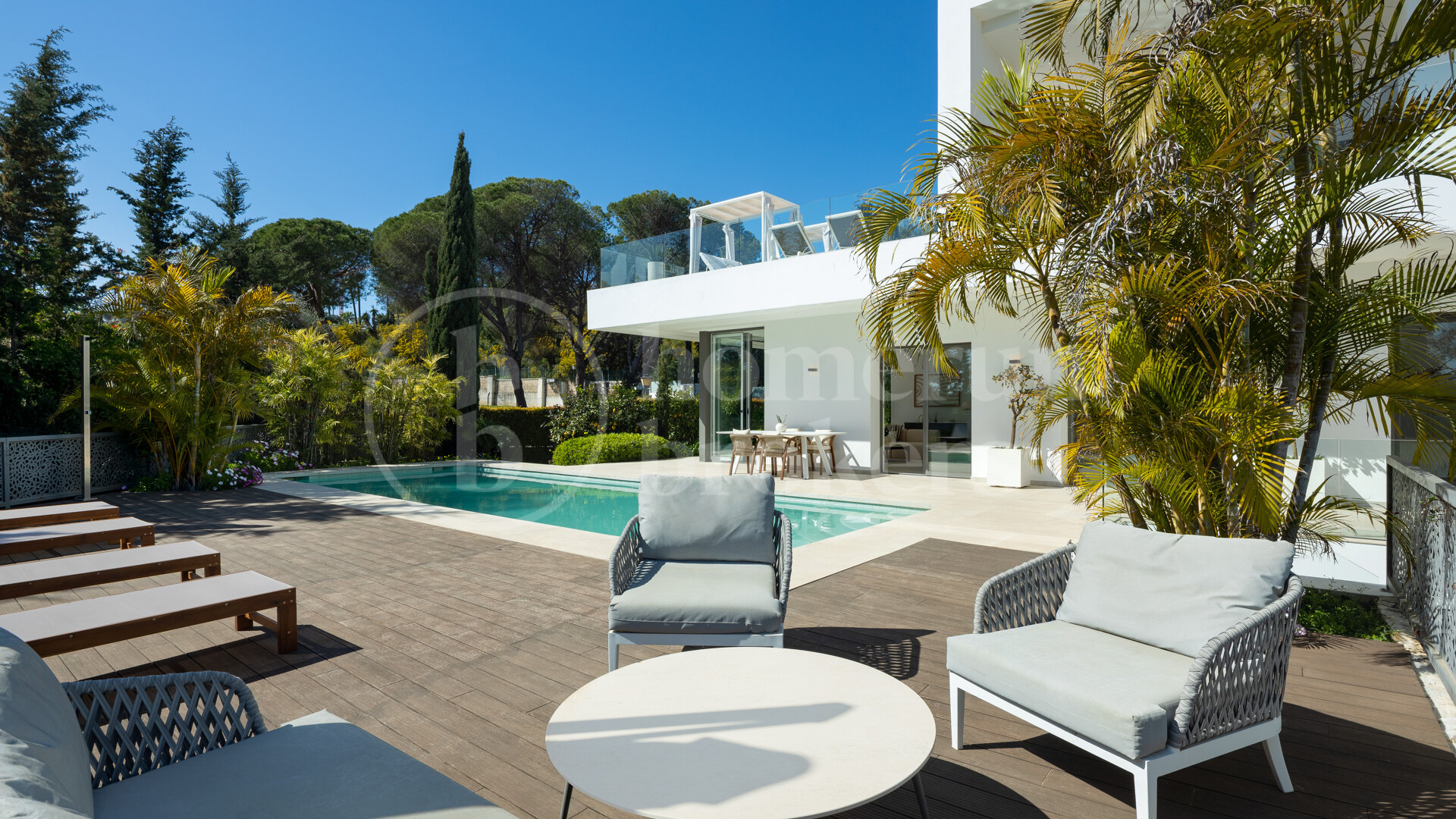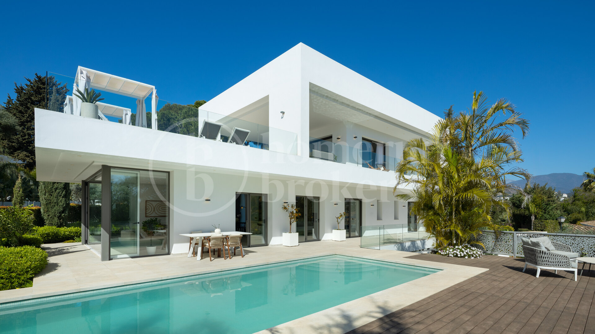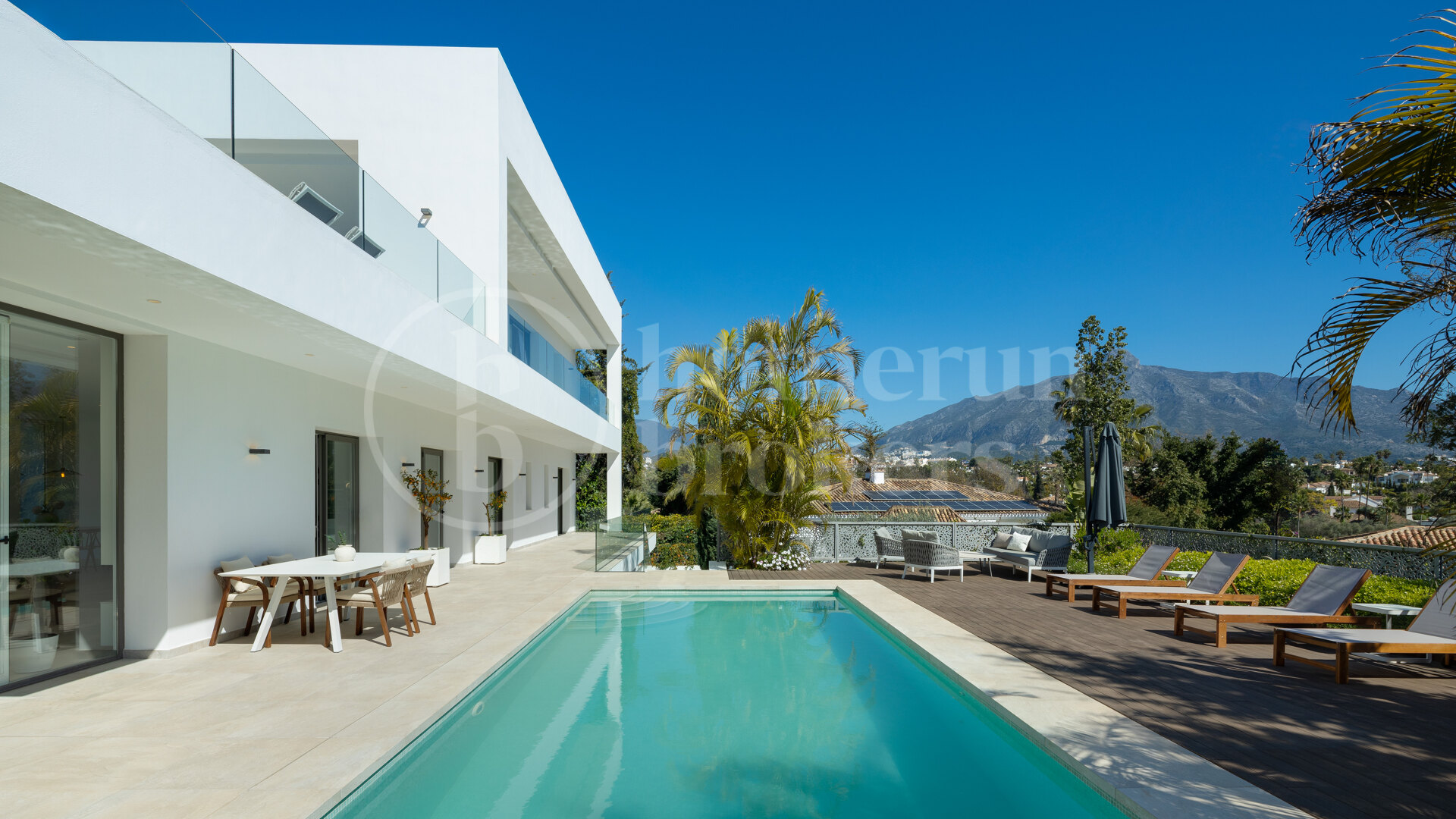 he villa enjoys a southwest orientation, providing excellent natural light throughout the day along with views of La Concha Mountain, the surrounding landscape and the swimming pool.